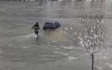 ארטיקעל: A Bosnian firefighter carried out a remarkable rescue operation in eastern Bosnia after securing a half-submerged car from the freezing waters of the Drina River, as severe weather conditions continue