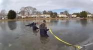 ארטיקעל: A potentially tragic Christmas Day incident in East Patchogue, New York ended safely thanks to the swift and decisive actions of local police officers, who rescued an 8-year-old boy after he fell thro
