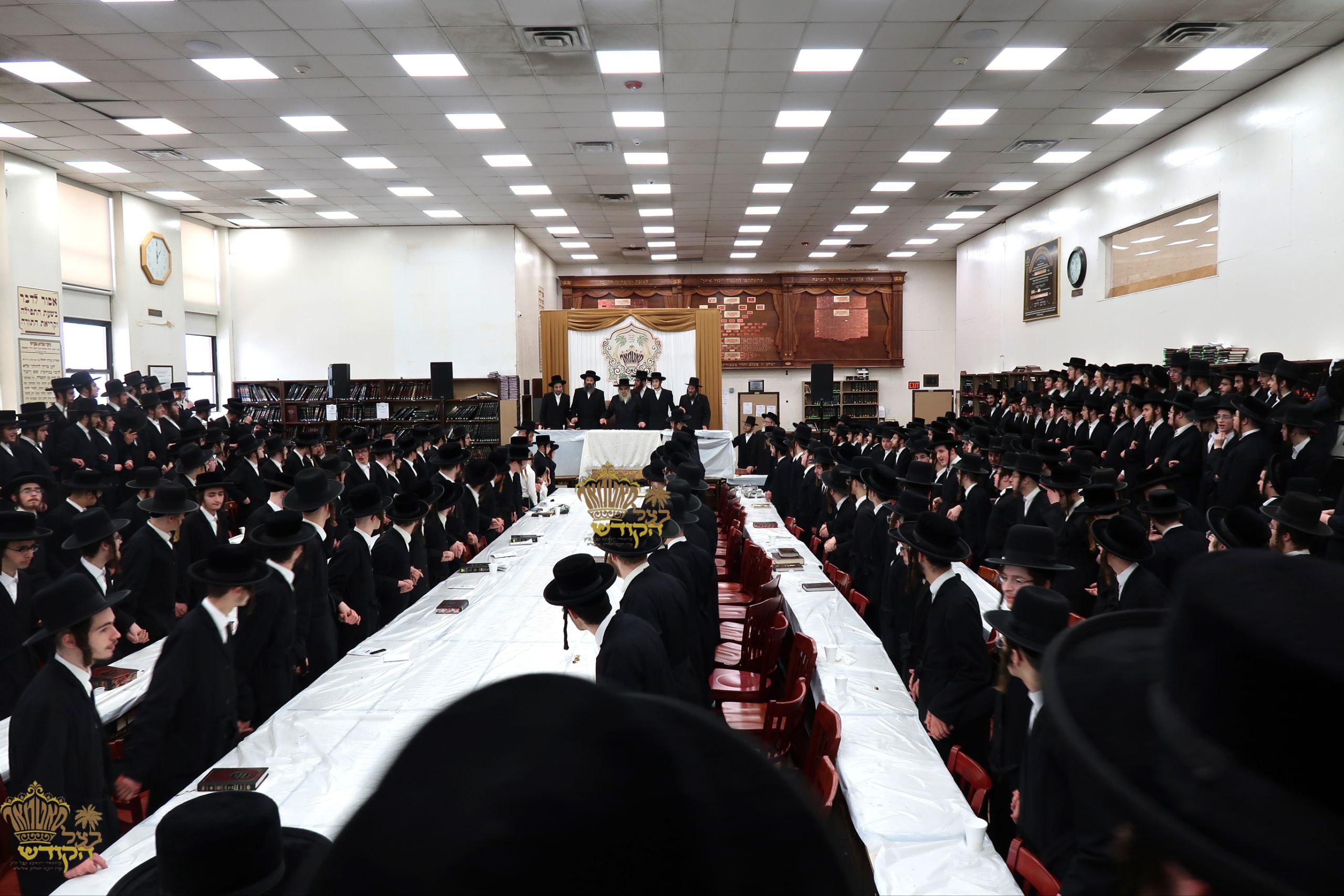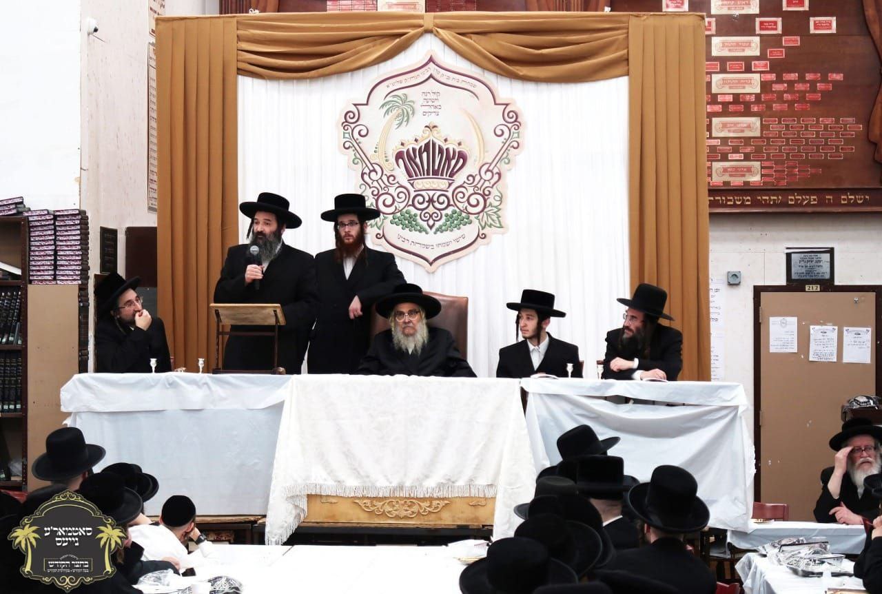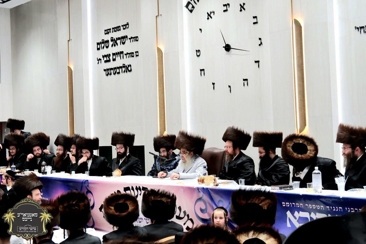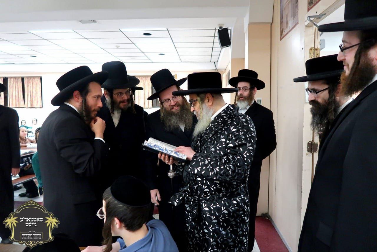 רבינו שליט"א ביים מסיבת לחיים היינט נאך תפילת שחרית בהיכל המתיבתא סניף דברי יואל לרגל די שמחת קישור החיתון פון נכדו החתן פרע"ח הרב יואל דושינסקיא שליט"א ממצויני תלמידי הישיבה בן חדב"ן הגה"צ רב דביהמ"ד אהל פיגא שליט"א ור"מ בישיבה. ~🌴~