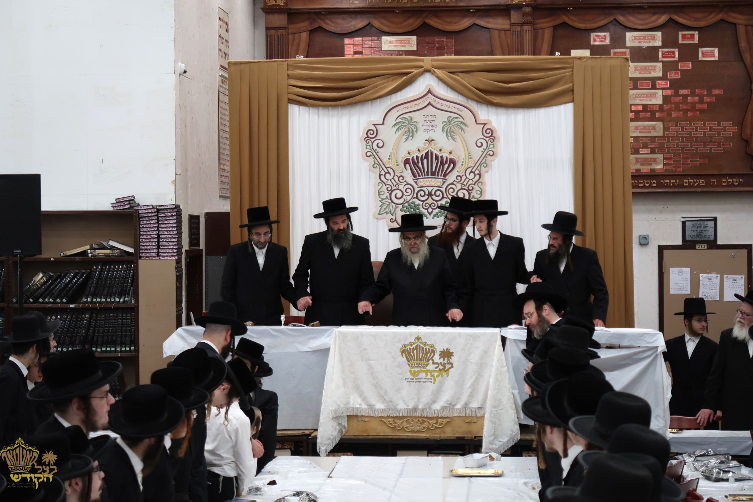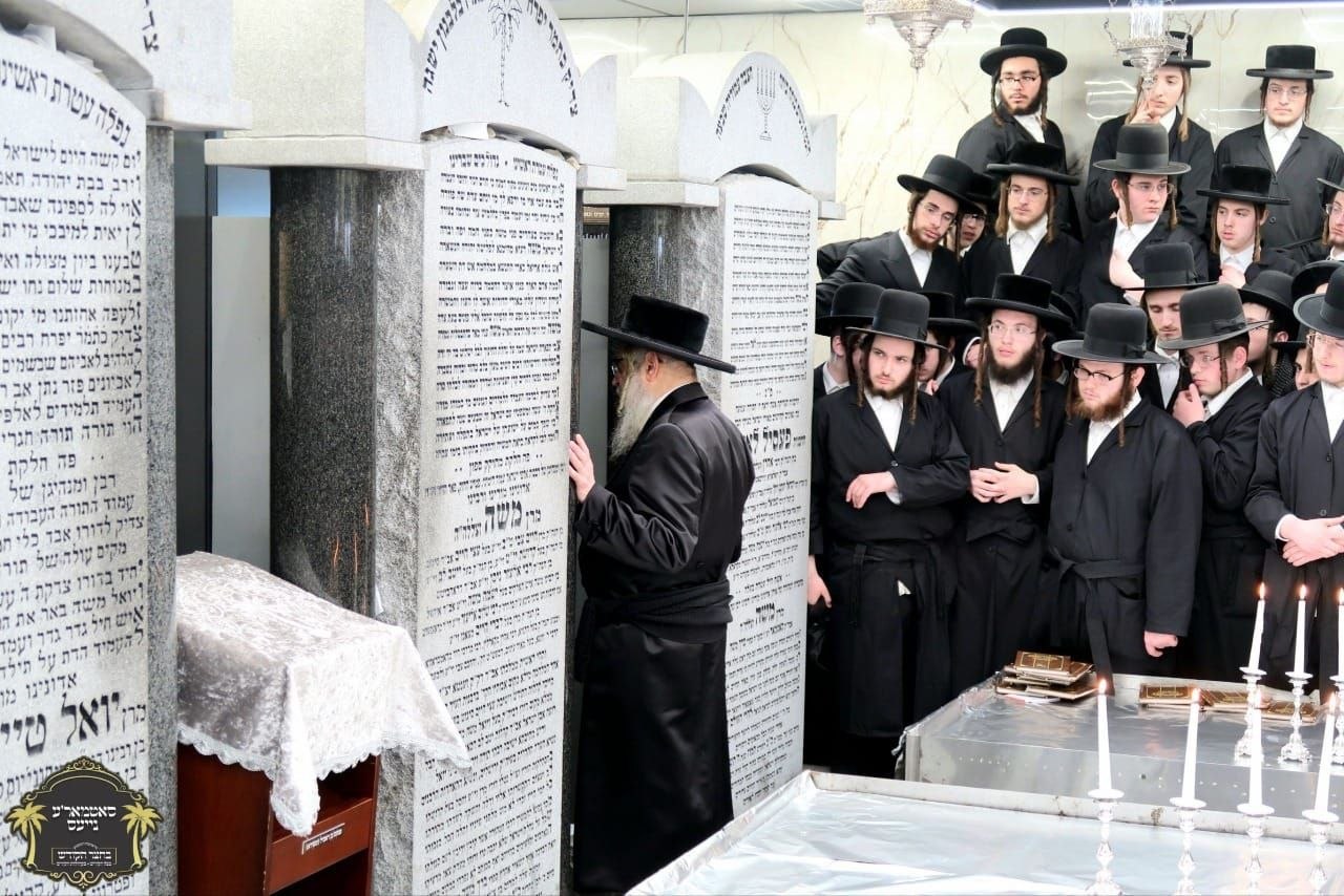 =זונטאג ויחי=פארן דאווענען איז פארגעקומען די ברית לבן הנולד אצל ר' משה יחזקאל וועלץ הי"ו - מאנסי, ווי דער רבי איז געווען סנדק ומוהל.דער רבי האט געדאווענט שחרית אין ישיבה גדולה סניף קדושת יואל.פארן דאווענען האט דער רבי געלייגט תפילין פאר די בר מצוה בחורים,בהר"ר ישראל העניך שעהר שליט''א.ב"ר ישראל מאיר פעלדמאן הי"ו.ב"ר יחזקאל שרגא פרענקל הי"ו.ב"ר חנני' שווארטץ הי"ו.ב"ר יהוסף מערץ הי"ו.נאכן דאווענען האט דער רבי פארגעלערנט א תהילים שיעור אויף קאפיטל כ"ח פסוק ד'.דערנאך איז פארגעקומען א לחיים מיט די בר מצוה בחורים בחדרו הפרטי.אין די פארמיטאג שעות איז דער רבי געווען אויף די וועכענטליכע באזוך אין בית השחיטה המהודרת.נאכמיטאג איז דער רבי ארויף אין ישיבה סניף ויואל משה ווי דער רבי האט געלערנט מיט א חברותא בחדרו הפרטי. ארום 5:00 אזייגער האט דער רבי געדאווענט מנחה אין ישיבה.פארנאכטס האט דער רבי מסדר קידושין געווען ביי די חופה פון די מחותנים הרה"ח ר' שלמה לייב וויינבערגער הי"ו און הרה"ח ר' שמעון ווייס הי"ו אין די זאלן פון גינת קליין. און ביי די חופה פון די מחותנים הרה"ח ר' חיים קארנבלי הי"ו און הרה"ג ר' אשר חיים ווייזער שליט"א - מו"ץ בקהלתינו הק' ב"פ, אין די זאלן פון בית רחל פאראדייס.צווישן די חופות איז דער רבי אריבער צום בנין הבית רחל 'בנין הירש ג"ב לאנדא' ווי עס קומט פאר די לימודים דורך מתמידים רץ למשנה יעדע נאכט, דער רבי האט זיך אומגעקוקט אויף די לימודים פאר א לענגערע צייט מיט א שטארקע קורת רוח און הנאה און אנגעוואונטשן ברכת קדשו פאר די מרביצי תורה.זמני כניסה איז געווען פון 8:00 אזייגער ביז 12:20 אויפדערנאכט בביתו נאוה קודש אויף איהעל קט.ארום 10:10 האט דער רבי געליינט די תנאים פון די מחותנים הרה"ח ר' יוסף זאב בר"א מויזקאפף הי"ו און הרה"ח ר' יוקל ברי"ב הירש הי"ו אין די תנאים זאלן בביתו נאוה קודש.בעת די זמני כניסה איז פארגעקומען א מסיבת לחיים לרגל די שידוך שליסן פון נכד הגה"צ אב"ד טאשנאד מאנסי שליט"א, החתן בן בנו הרה"ג ר' אהרן מרדכי בריסק שליט"א - דומ"ץ טאשנאד מאנסי, עב"ג הכלה בת הר"ר בנציון הורוויץ שליט"א, עס האט זיך פארצויגן א לענגערע שמועס בדברי תורה וחסידות, דער רבי האט געמאכט א לחיים און ווארעם אנגעוואונטשן פארן חתן, מחותנים, און פארן זיידן הגה"צ אב"ד טאשנאד מאנסי שליט"א.דער רבי האט געדאווענט מעריב ארום 11:45 און נאך מעריב ממשיך געווען אויפצונעמען דעם ציבור.א גוטע נאכט.~🌴~