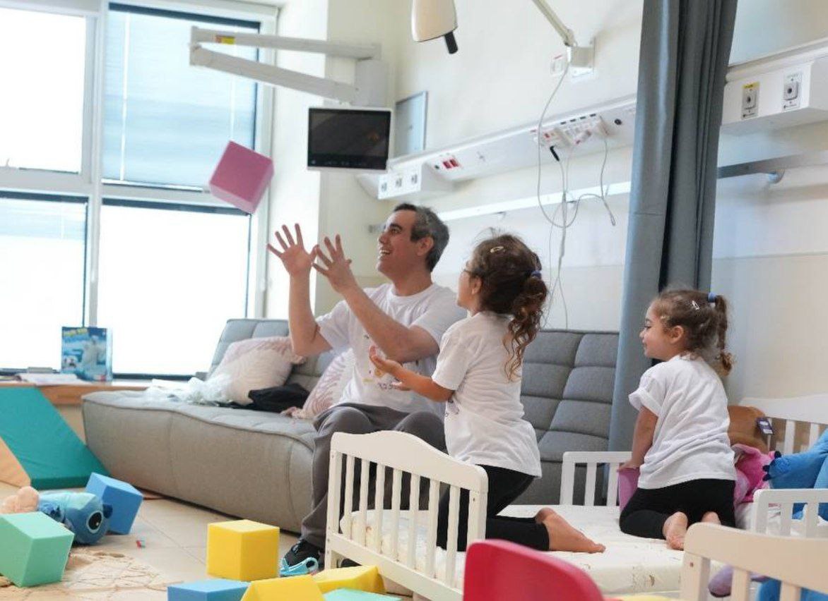עמאציאנאלער בילד ווי דער משכון אמרי מירון שפילט מיט זיינע קינדערלעך, נאכ'ן זיין אין כאמאס געפענגעניש פאר צוויי יאר. פילע פאמיליעס וועלן האבן א ריכטיגער שמחת יום טוב, גענוי צוויי יאר נאך וואס דורכאויס שמחת תורה האט פאסירט די ביטערע טעראר אטאקע.