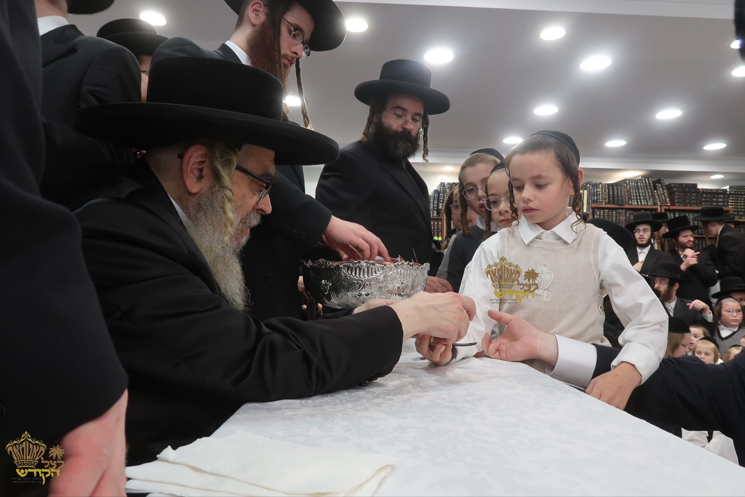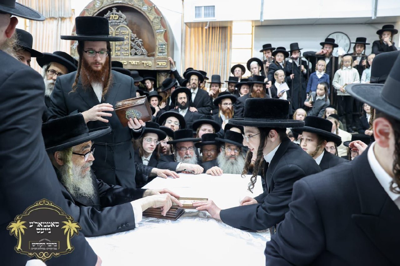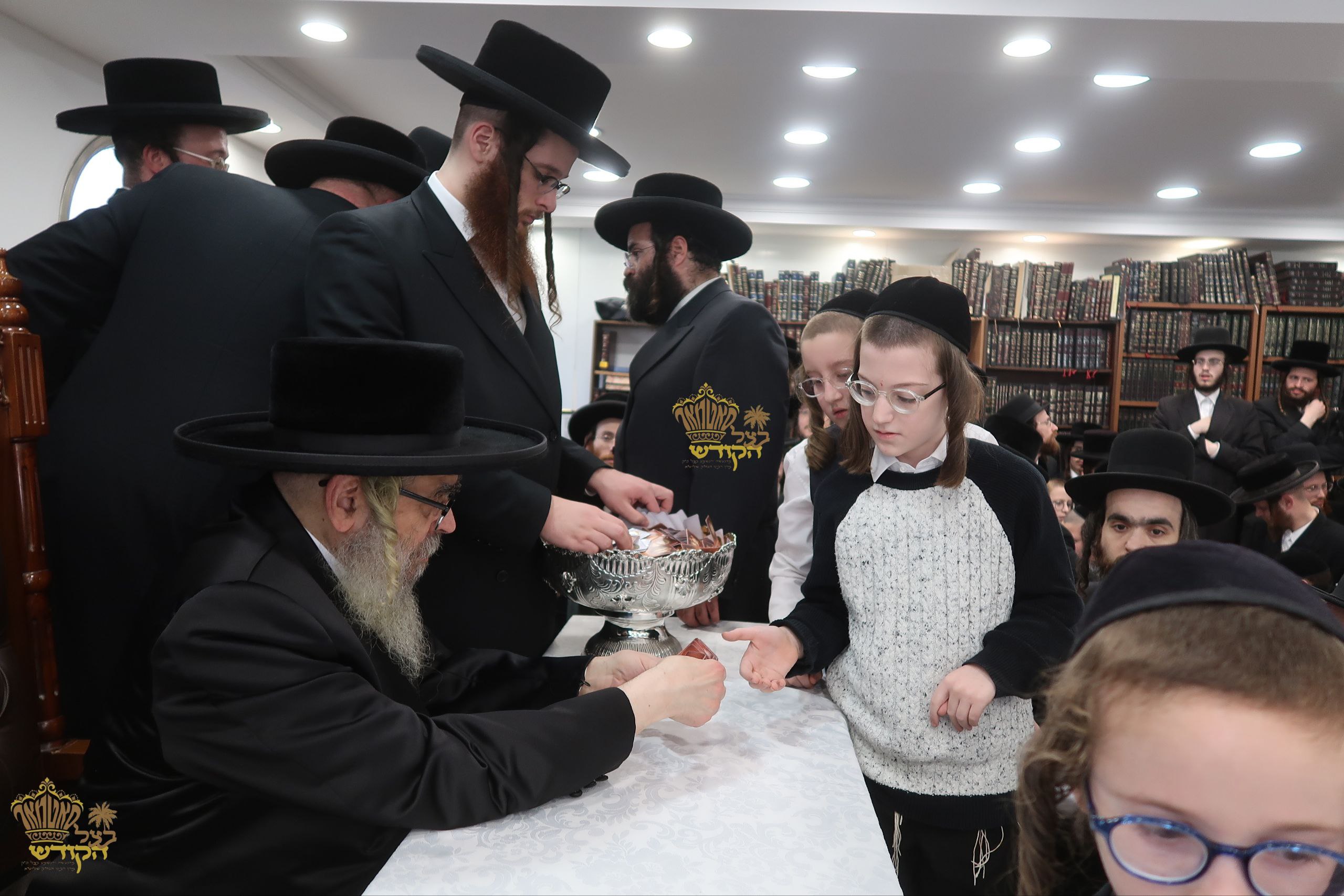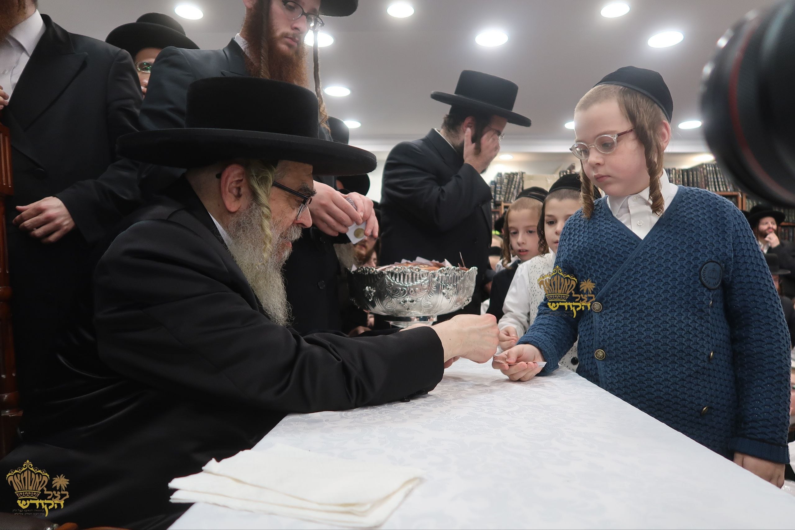 🌴בצל הקודש 🌴רבינו שליט"א ביים פארטיילן מטבעות פאר די קינדער ביים מסיבת לחיים נאך תפילת שחרית מיט די תלמידי מוסדותינו הק' בהיכל בית מדרשינו אין בית שמש.~🌴~