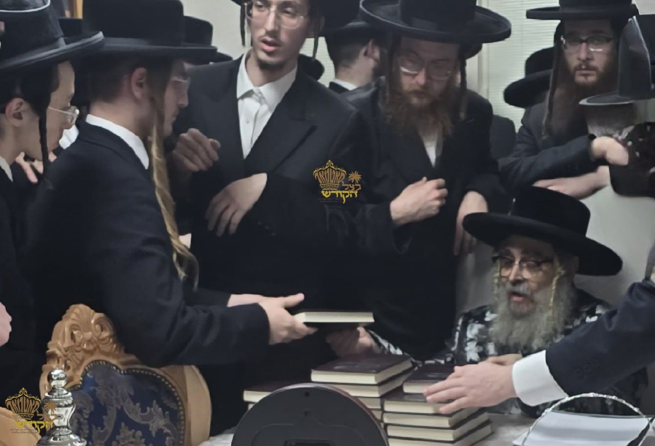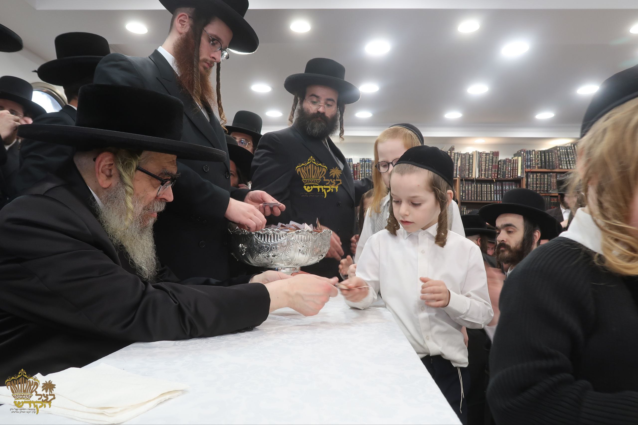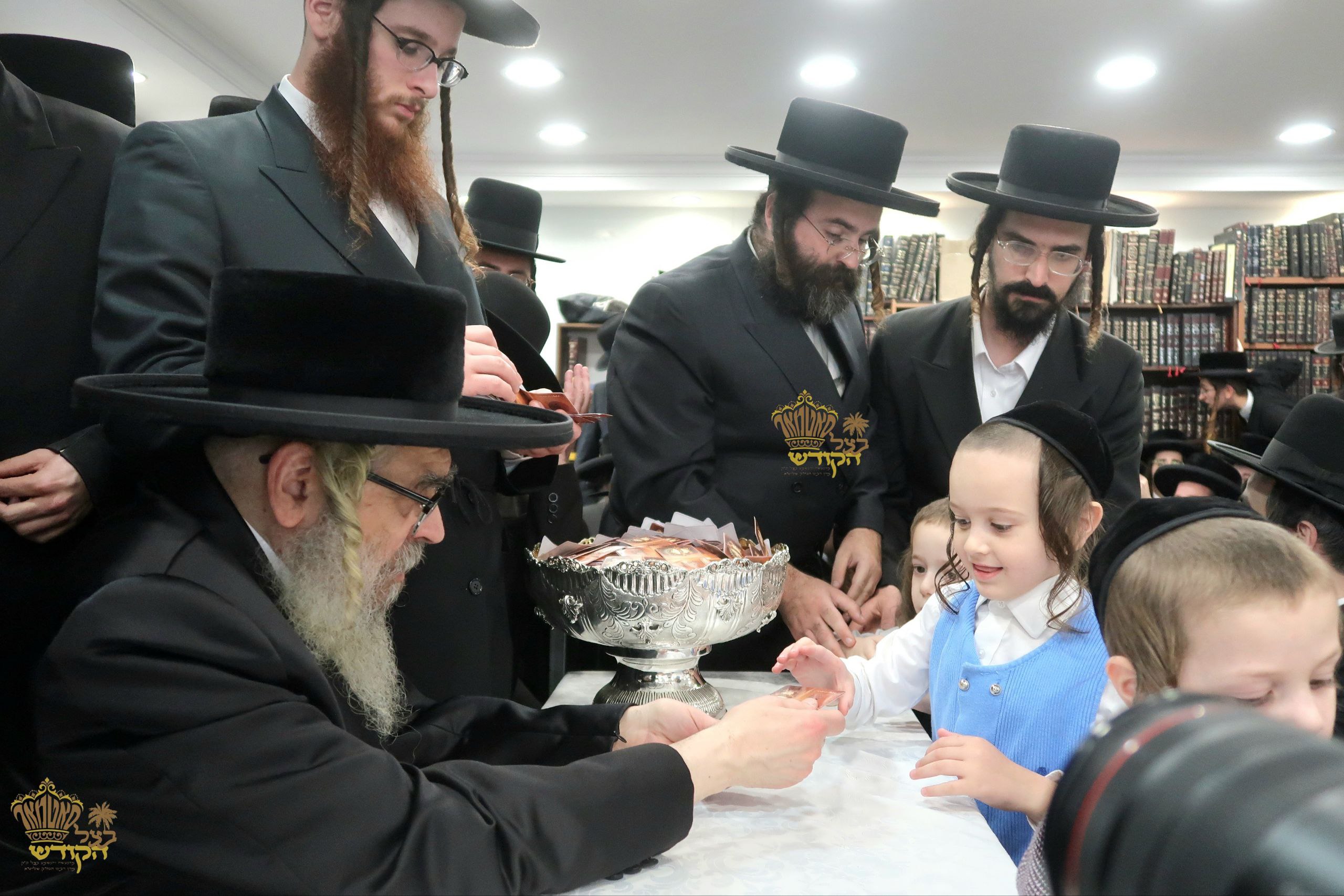 🌴בצל הקודש 🌴רבינו שליט"א ביים פארטיילן מטבעות פאר די קינדער ביים מסיבת לחיים נאך תפילת שחרית מיט די תלמידי מוסדותינו הק' בהיכל בית מדרשינו אין בית שמש.~🌴~