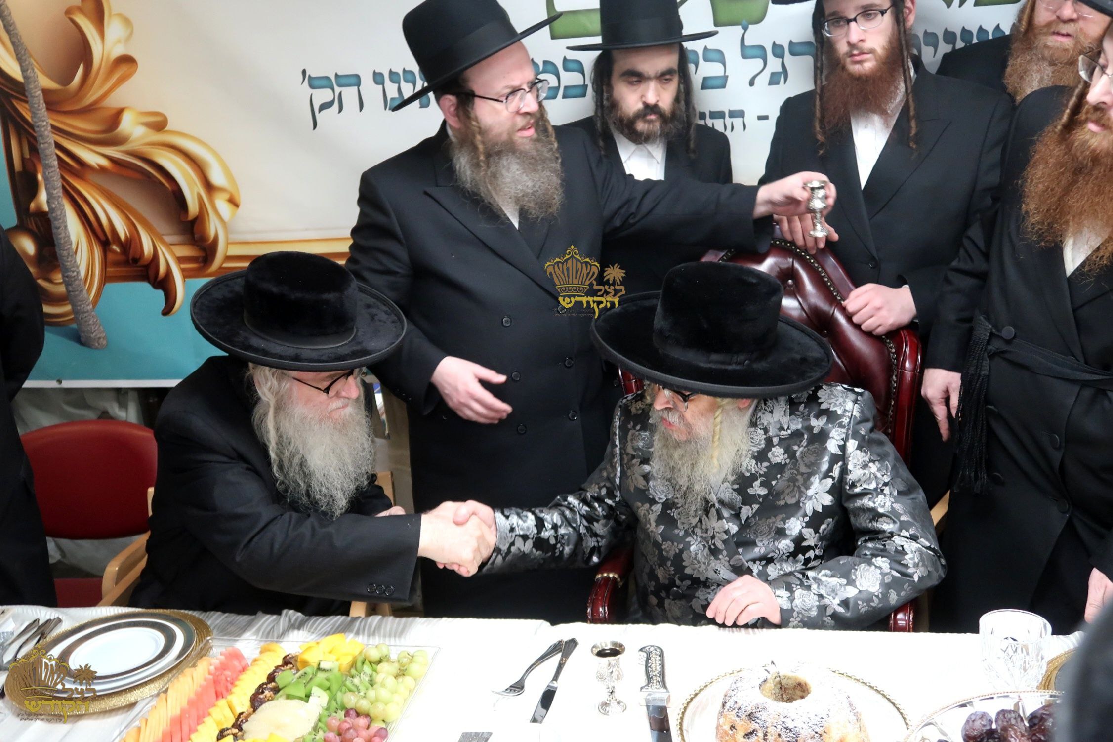 ארום 10:00 (3:00 ניו יארקער זייגער) איז רבינו שליט"א אריינגעקומען צום מסיבת לחיים לרגל הכנסת ספר תורה דורך קהלתינו הק' לע"נ רבותיה"ק זי"ע, צווישן אנדערע זעהט זיך אן כ"ק אדמו"ר מוויזניץ בי"ש שליט"א. ~🌴~