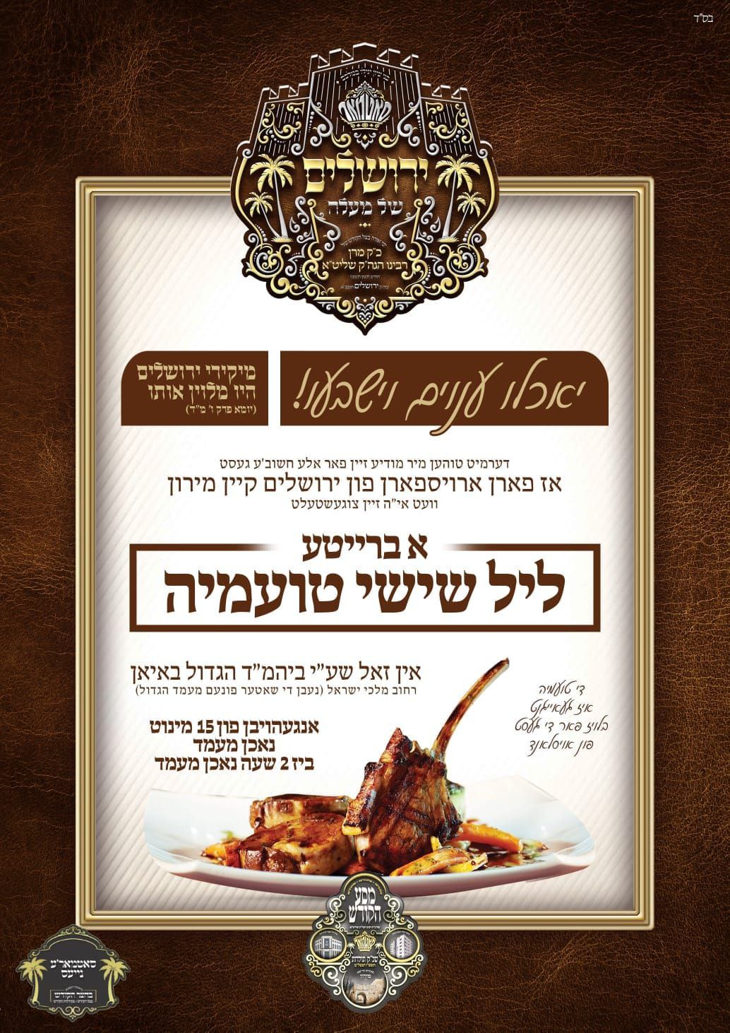 מיטוואך תולדות 1:45 נאכמיטאג (6:45 אינדערפרי ניו יארק'ער זייגער)רבינו שליט"א קומט יעצט אן אויף א באזוך בבנין הת"ת שע"י מוסדותינו הק' אין בית שמש.~🌴~