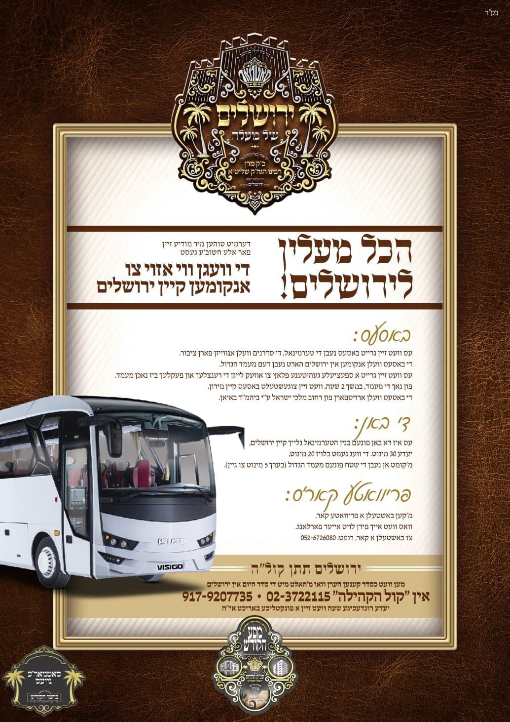מיטוואך תולדות 8:50 אינדערפרי (1:50 אויפדערנאכט ניו יארק'ער זייגער)רבינו שליט"א פארלאזט יעצט די אכסניא אויפן וועג צו הר הצופים מול מקום המקדש.~🌴~