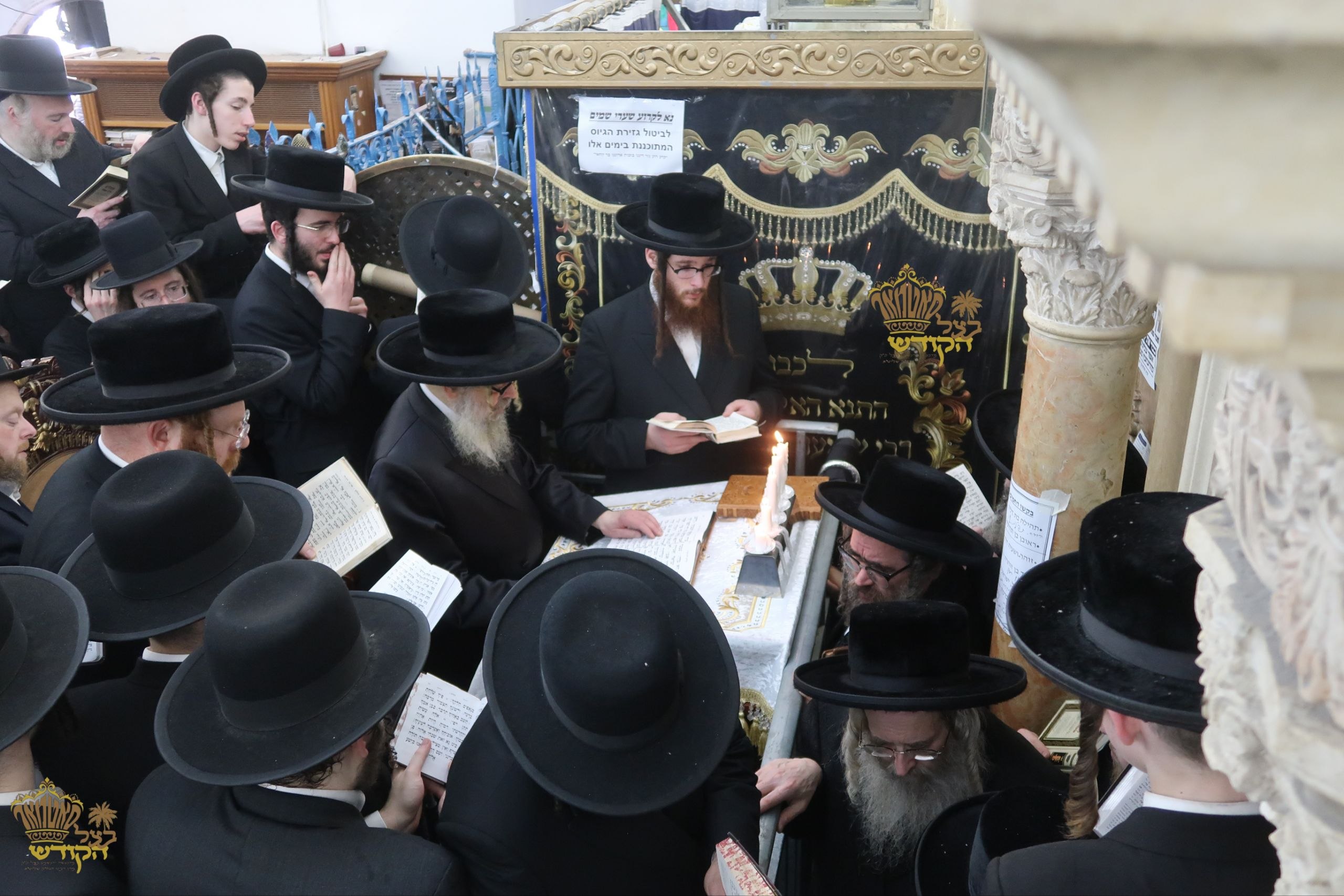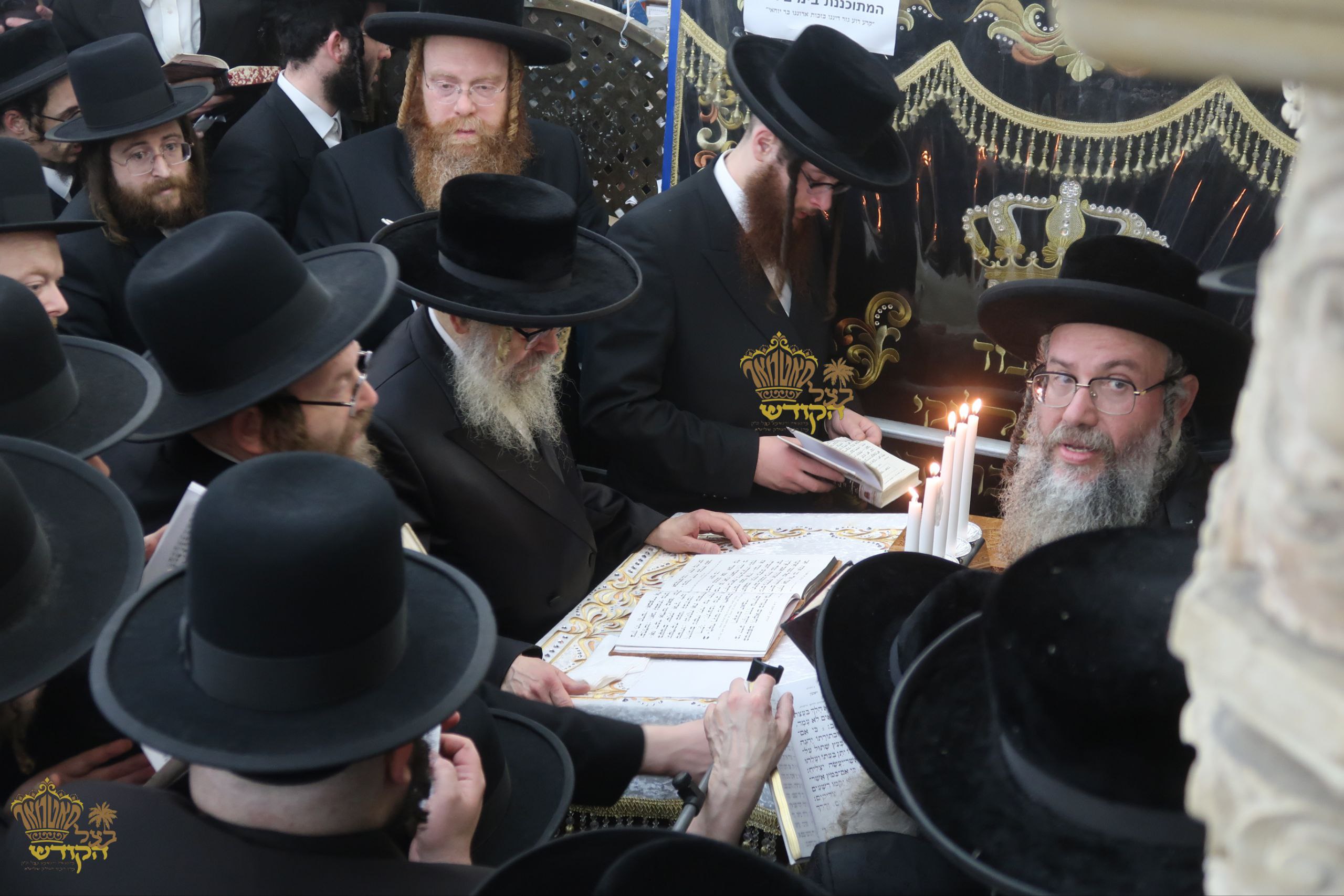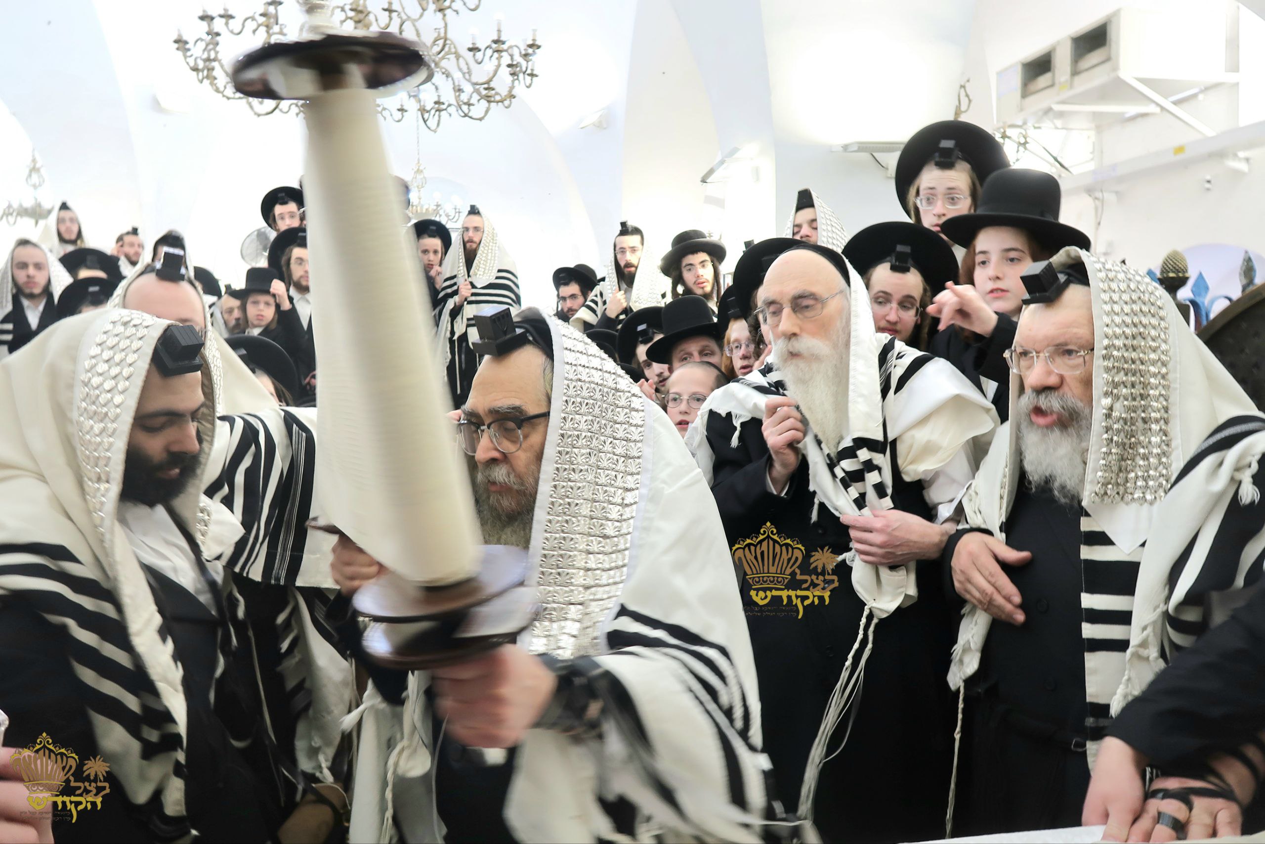 רבינו שליט"א ביי תפילת שחרית ואמירת הלל אין די מערה פון התנא אלוקי רבי שמעון בר יוחאי, ווי דערביי האט דער רבי געלייגט תפילין פארן אור אייניקל הב' יוסף רוקח ני"ו בן הרה"ג ר' חיים יעקב שליט''א - רב דביהמ''ד קול אליהו חתן חדב"ן הגה"צ רב דביהמ''ד ישמח משה שליט''א.~🌴~