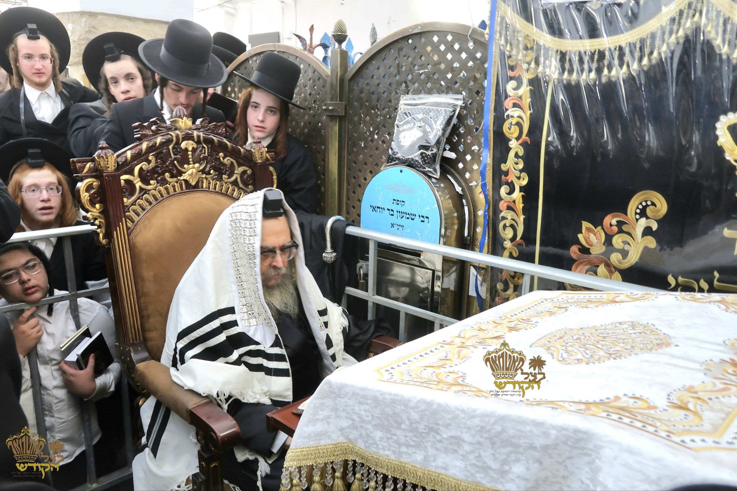 האדמו"ר מסאטמאר ביים זאגן דברי התעוררות מיט בכיות, און ביים אמירת תהילים ביים ציון הרשב"י אין מירון.