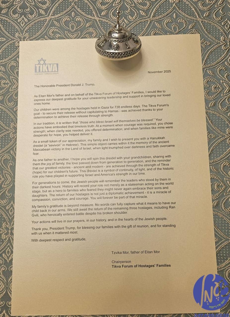וואשינגטאן - איתן מור, איינע פון די 20 לעבעדיגע מדינת ישראל משכונות וועלכע זענען באפרייט געווארן אונטערן טראמפ אפמאך וועט זיך מארגן טרעפן מיטן פרעזידענט, און דערביי איבערגעבן א זילבערנע דריידל אלס א געשאנק.