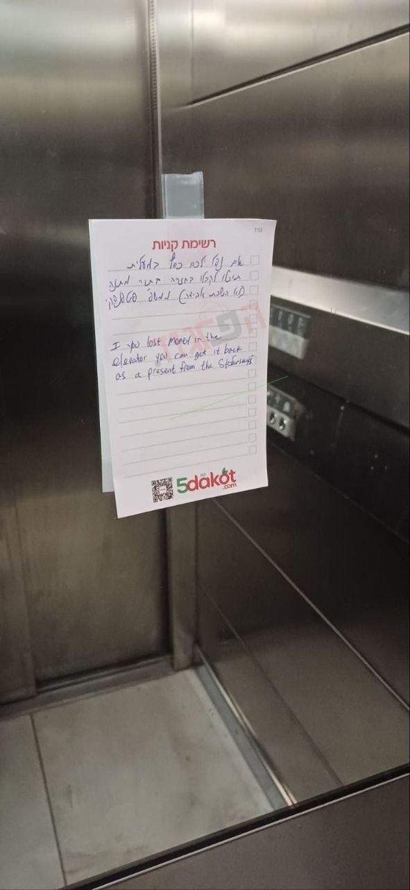 בית שמש - דער באקאנטער דף היומי מגיד שיעור הרב אלי סטעפאנסקי וועלכע האט געפונען געלט אינעם עלעוועיטאר אין די געביידע וואו ער וואוינט, האט געהאנגען א צעטל אז ווער עס האט פארלוירן זאל זיך מעלדן און וועט עס צוריקבאקומען אלס מתנה וויבאלד עס איז נישט דא קיין דין פון השבת אבידה ביי געלט.