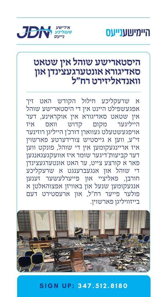 א שאקירנדע אינצידענט האט פאסירט אין אוקראינע ווען די קלויז אין די שטאט סאדיגורא איז געווארן אונטערגעצינדן דורך א גייסטיש אומסטאבילער פארשוין. די פאליציי זאגט אז דער זעלבער פארשוין האט שוין פרובירט אנצינדן א קירכע עטליכע וואכן צוריק, די אינצידענט ווערט אויסגעפארשט דורך די פאליציי. אידישער ווינקל: https://wa.me/13473456278?text=Join