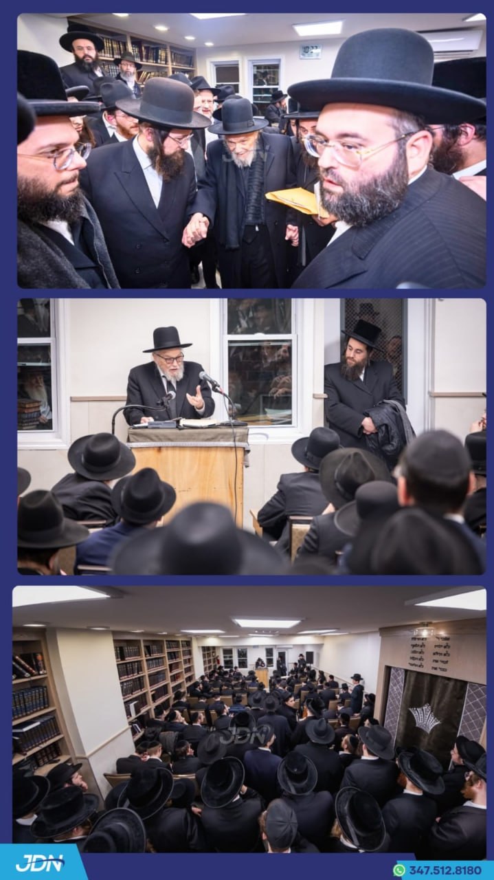 הגאון רבי משה הלל הירש ראש ישיבת סלאבאדקע טרעט אויף מיט א דרשה אין כולל ד'בארא פארק.