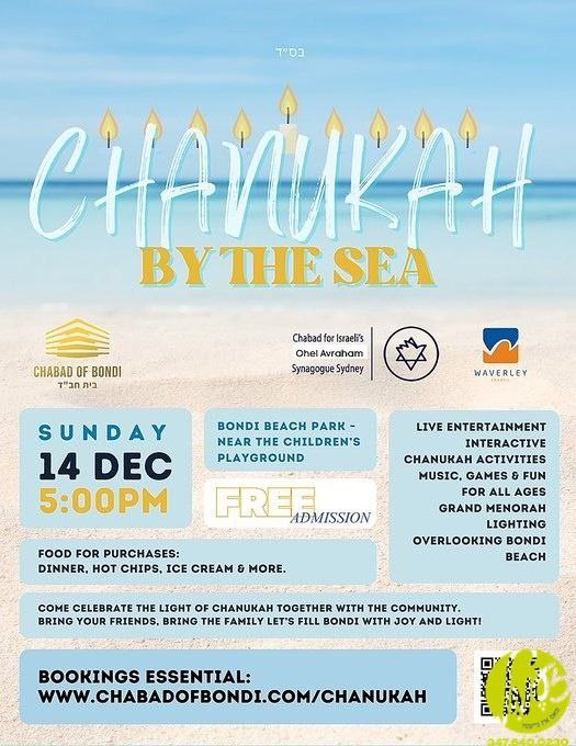 סידני - די פרייליכע איינלאדונג צו די חנוכה צוזאמקום ביי די באנדי וואסער ברעג, וועלכער האט זיך ליידער געענדיגט גאר טראגיש.