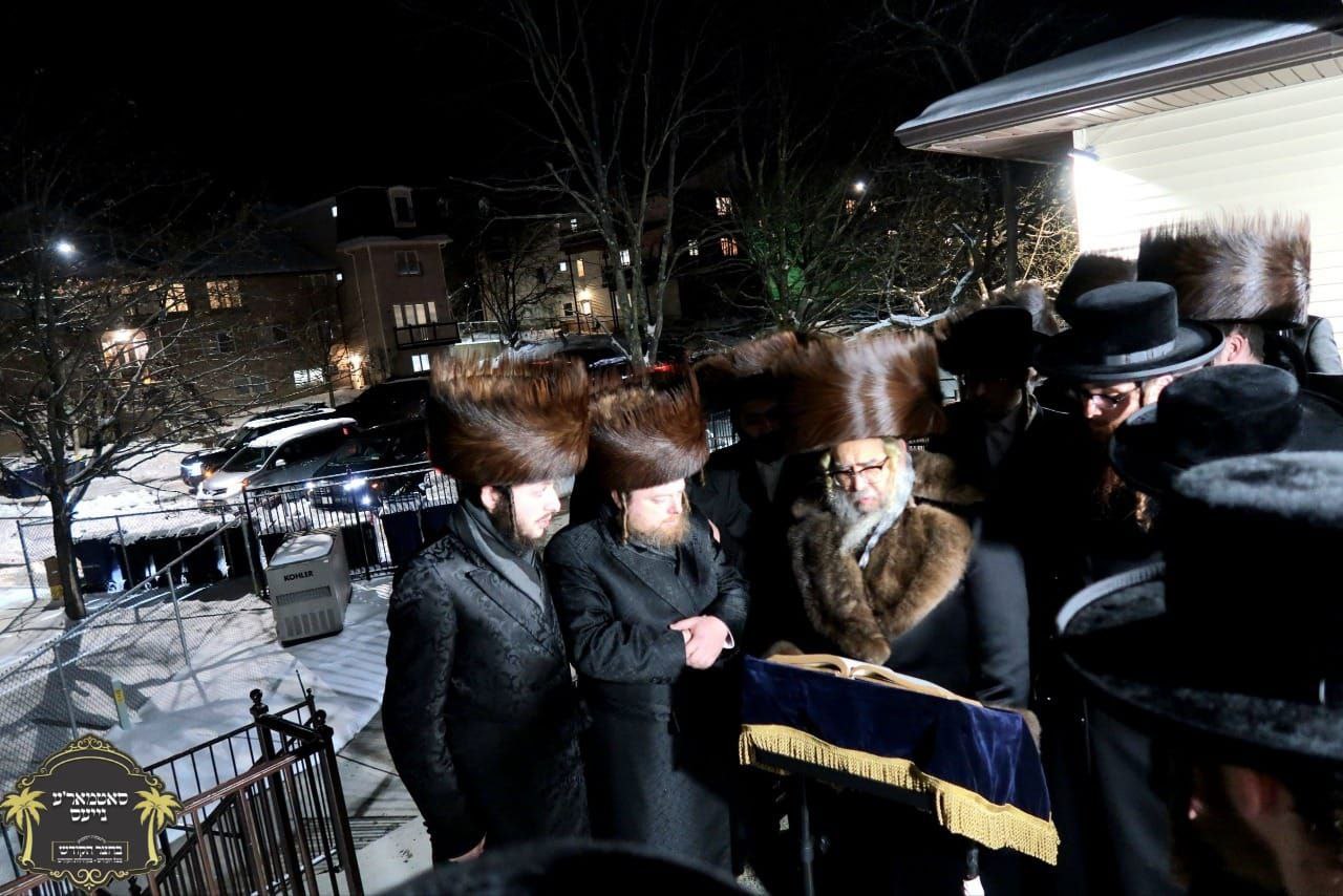 ארום 9:40 איז פארגעקומען בביתו נאוה קודש א מסיבת לחיים לרגל די גמר המקח פאר א שטח אדיר צו בויען א נייע ביהמ"ד גדול ומפואר דקהלתינו הק' בשכונת זרע קודש אין קרית יואל המורחבת מיט די באטייליגונג פון די רבני ותושבי השכונה, הנהלת קהלתינו הק', און די חברי וועד הרחבת גבולי העיר,עס האט אויפגעטרעטן הרה"ח ר' דוד עקשטיין הי"ו מראה"ק, און הרה"ח ר' טובי' ליפא גראס הי"ו - מחשובי תושבי השכונה ומהנלת קרן הבנין, מען האט געזינגען עטליכע ניגונים לכבוד המאורע, דערנאך האט דער רבי משמיע געווען ברכת הקודש און ארויסגעברענגט די שמחה פון די תושבי השכונה און אנגעוואונטשן מען זאל בקרוב אנהייבן און ענדיגן צו בויען די ביהמ"ד להגדיל תורה ולהאדירה און מסיים געווען בברכת קדשו פאר די רבני ותושבי השכונה.דערנאך איז פארגעקומען א התחלת כתיבת ספר תורה דורך הרה"ח ר' ברוך ליפא לעווי הי"ו, דער רבי האט אריינגעשריבן די ערשטע אותיות און דערנאך געמאכט א לחיים, עס האט זיך פארצויגן א שיינע שמועס מיט די אנוועזענדע חברי הנהלת הקהילה איבער די פעולות לטובה פון הרה"ח ר' ברוך ליפא הי"ו לרומם קרן קהלתינו הק' און אלע מסיבות און טישן בצל הקודש, און דער רבי האט ווארעם אנגעוואונטשן ברכת קדשו פאר הרה"ח ר' ברוך ליפא הי"ו ובני משפחתו.ארום 10:40 איז דער רבי אנגעקומען צום מעמד קביעות מזוזה וחנוכת הבית בבית מדרשינו החדש והמפואר 'ביהמ"ד ישראל שלום' אין שכונת ויואל משה נדבת הרבני הנגיד בונה ומקים השכונה ר' עקיבא הערש קליין הי"ו, דער רבי האט זיך צום ערשט אומגעקוקט אינעם נייעם פראכטפולע מקוה אין באגלייטונג פון בנו הגה"צ רב הביהמ''ד שליט''א און דערנאך קובע געווען א מזוזה אויפן שער הביהמ"ד, דערנאך האט זיך דער רבי אומגעקוקט אויף די 4 חדרי התפילה און די עזרת נשים און דערביי מכבד געווען בנו הגה"צ רב הביהמ"ד שליט"א און דער נדבן ר' עקיבא הערש הי"ו צו קובע זיין מזוזות, דערנאך איז דער רבי אריין בהיכל הביהמ"ד צום מסיבת לחיים, ביים אריינקומען האט דער רבי געטאנצן אויפן פלאץ פאר א שטיק צייט, עס האט אויפגעטרעטן הגה"צ רב הביהמ"ד שליט"א, מען האט געזינגען ניגוני שמחה און דער רבי האט געמאכט א לחיים און ווארעם אנגעוואונטשן פאר בנו הגה"צ רב הביהמ"ד שליט"א, פאר הרה"ג ר' דוד גרינפעלד שליט"א - מו"ץ הביהמ"ד, פארן חשובן נדבן הרה"ח ר' עקיבא הערש הי"ו, און פארן גאנצן ציבור,דערנאך האט דער רבי משמיע געווען דב"ק און ארויסגעברענגט די שמחה מיטן באנייען א ביהמ"ד וועלכע וועט זיך אויסצייכענען בתורה עבודה וגמילות חסדים, און ארומגערעדט בשבח פון די תושבי השכונה, און אנגעוואונטשן בנו הגה"צ רב הביהמ"ד שליט"א און פאר הרה"ג ר' דוד גרינפעלד שליט"א - מו"ץ הביהמ"ד ברכות לרוב צו קענען מרים זיין כבוד התורה והביהמ"ד, און מאריך געווען בשבח פונעם חשובן נדבן הרבני הנגיד ר' עקיבא הערש הי"ו וועלכע האט אויפגעבויעט די גאנצע שכונה און עטליכע בתי מדרשים אין די שכונה, ועוד ידו הנטויה צו בויען נאך בתי מדרשים, און דאס איז חוץ זיינע פילע נדבות פאר קהלתינו ומוסדותינו הק', און אזוי אויך זיינע חשובע פעולות ארויסצוהעלפן האלטן די דירות פרייזן ביליג, און דער רבי האט אים אנגעוואונטשן ברכת לרוב בכל ענינים, און מסיים געווען בברכת קדשו פארן גאנצן ציבור, דערנאך האט הרה"ח ר' משה יודא ברמ"ז הירש הי"ו אויפגעטרעטן מיט דברי זכרון פון זקינו הרה"ח ר' ישראל שלום גאלדבערגער ע"ה וואס די ביהמ"ד איז נקראת על שמו,מען האט געענדיגט ארום 11:45.ביים אנקומען אהיים האט דער רבי געמאכט קידוש לבנה פארנט פון ביתו נאוה קודש.א גוטע וואך.~🌴~