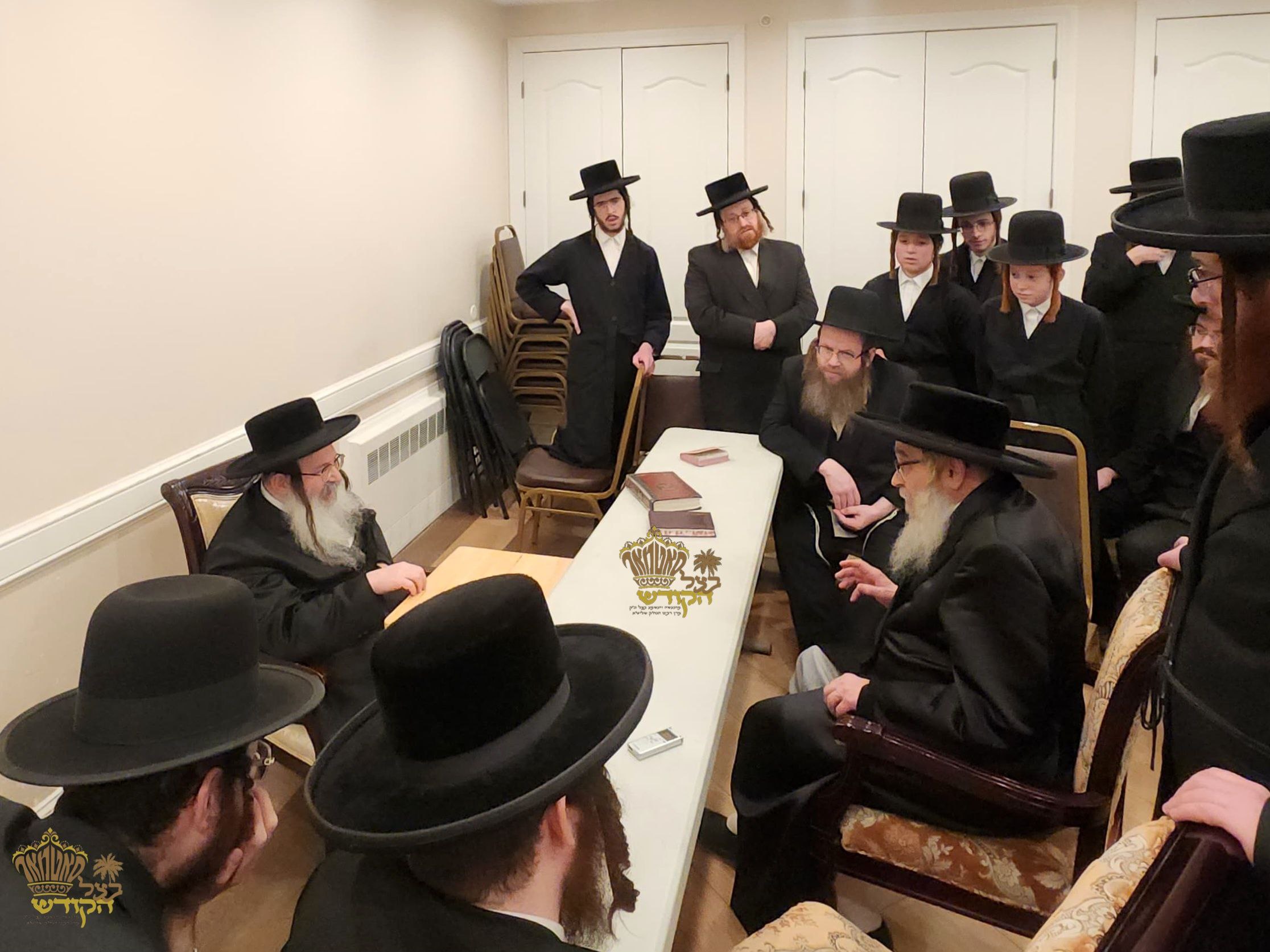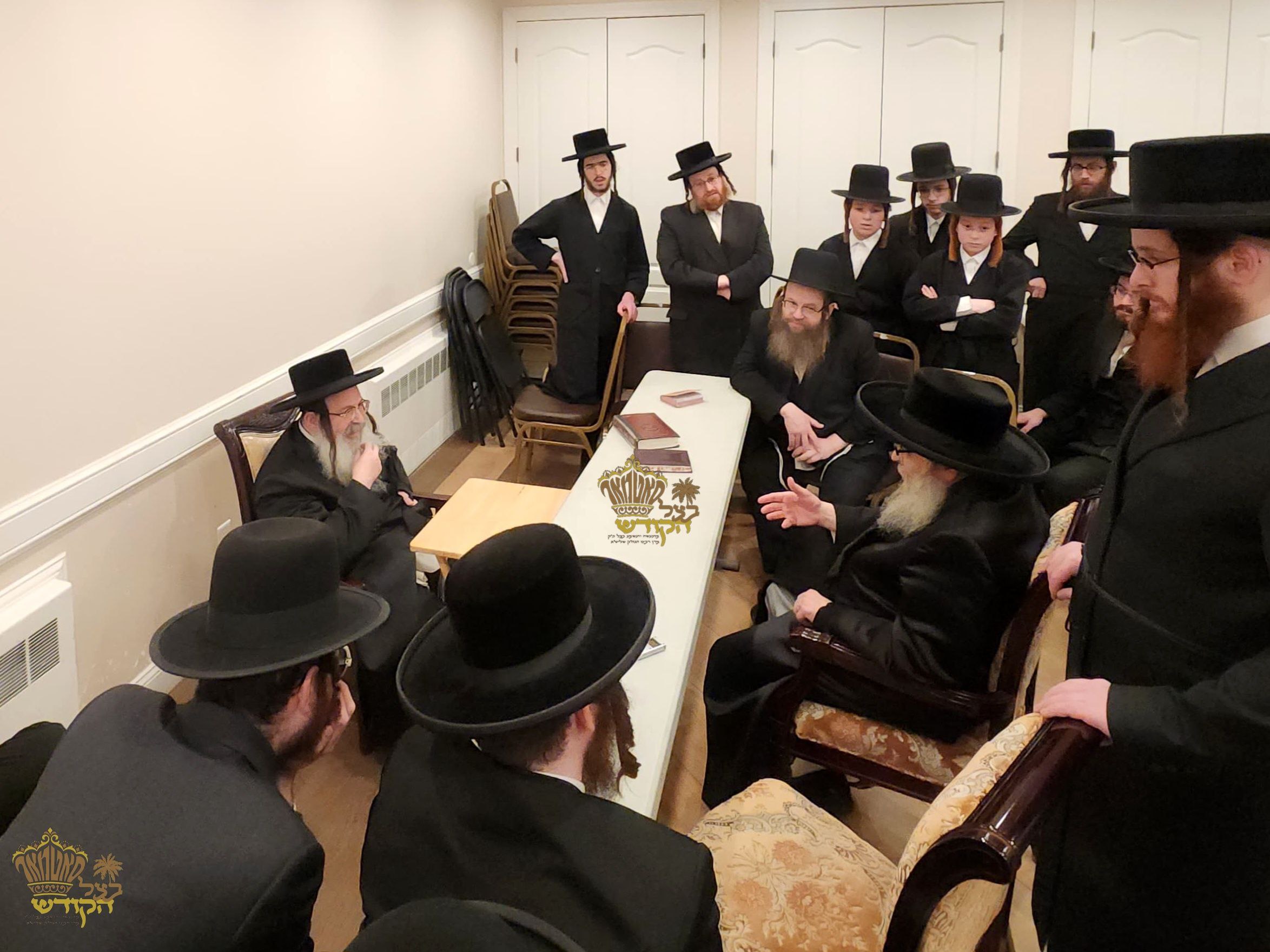 דב''ק בײם מסיבת לחיים לרגל קביעות מזוזה וחנוכת הבית בביהמ"ד החדש 'לב אהרן' דקהלתינו הק' מאנסי, אינאיינעם מיט א סיום כתיבת ספר תורה דורך הרבני הנגיד ר' הערשל ווערטהיימער הי"ו - פטרון הביהמ''ד.~🌴~
