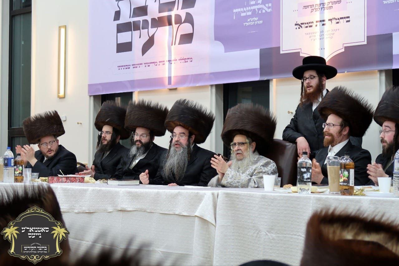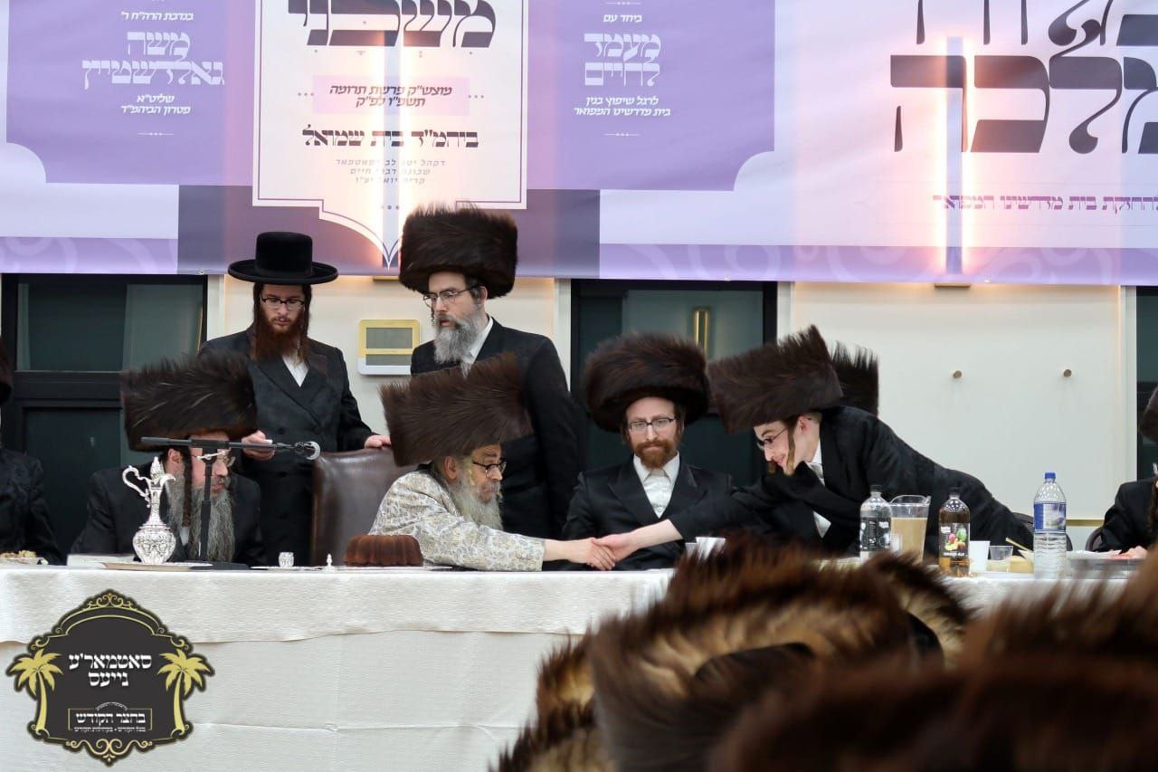 דערנאך האט דער רב שליט"א איבער געגעבן א מתנה פאר הרה"ח ר' שלמה זלמן רייזמאן הי"ו מנכ"ל המוסדות,און פארן נדיב פון די נייע מייסטערהאפטיגע זאל עטרת גנענדיל הרה"ח ר' מאיר משה יאקאבאוויטש הי"ו,דערנאך האט מען ארויפגערופן די עסקנים ונדיבי המוסדות איבערצונעמען א לעדערנע זמירות דברי יואל פונעם רב שליט"א, דערנאך האט אויפגעטרעטן מיטן דבר המוסדות הרה'ח ר' שלמה זלמן רייזמאן הי"ו - מנהל המוסדות,דערנאך האט דער רב שליט"א משמיע געווען דברות קודש וחובת השעה, דער רב האט אנגעהויבן מיט דברי אגדה אויף די וואכענדיגע סדרה, און ממשיך געווען בשבח פונעם מוסדות, און אויפגעפאדערט יעדעם איינעם צו שטיצן די מוסדות ובפרט האט דער רב שטארק אויפגעפאדערט די ענין פון באצאלן די חודש'לעכע שכר לימוד,דער רב האט צוגעענדיגט מיט שטארקע דברי ברכה פאר די הנהלת המוסדות און פארן גאנצן ציבור,מיט ברכת המזון האט דער רב מכבד געווען הרה"ח ר' אברהם שמואל עקשטיין הי"ו,דער רב האט פארלאזט די זאל ארום 12:00.