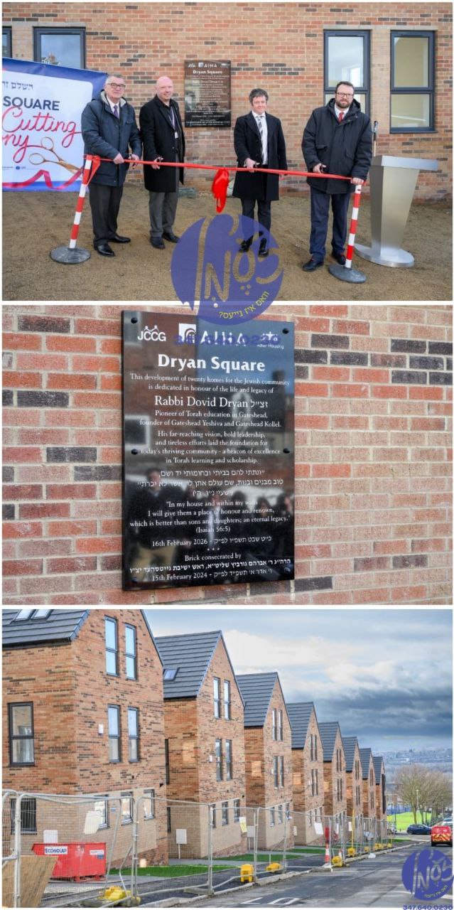 געיטסהעד - שטייענדיג בלויז צוויי יאר נאך וואס דער ראש ישיבה הגאון רבי אברהם גארעוויטש שליט"א האט געלייגט דעם אבן הפינה פאר די נייע ׳דרייען סקווער׳ הייזער פראיעקט אין שטאט, איז די וואך פארגעקומען די אפיציעלע מעמד חנוכת הבית פאר די פראיעקט מיט די באטיילגונג פון עסקנים און לאקאלע פאליטיקאנטן. די פראיעקט פארמאגט 20 נייע גרויסע שיינע הייזער געאייגנט צו פארדינגען פאר היימישע אידן פאר א צוגענגליכע פרייז. די הייזער זענען געבויט געווארן דורך די ׳אגודת ישראל האוזינג אסאציאציע׳ וואס פארמאגט נאנט צו טויזנט הייזער איבער ענגלאנד און פארדינגט עס פאר ביליג פאר היימישע פאמיליעס, אין צוזאמענארבעט מיט די דזשעי.סי.סי. פון געיטסהעד און די אדלער האוזינג אסאציאציע. די פראיעקט האט באקומען דעם נאמען ׳דרייען סקווער׳ לע"נ הגאון רבי דוד דרייען זצ"ל פון די גרינדער פון די באקאנטע געיטסהעד ישיבה און די כולל אברכים, וועלכער איז געווען באקאנט אלס דער ׳געיטסהעדער שוחט׳.