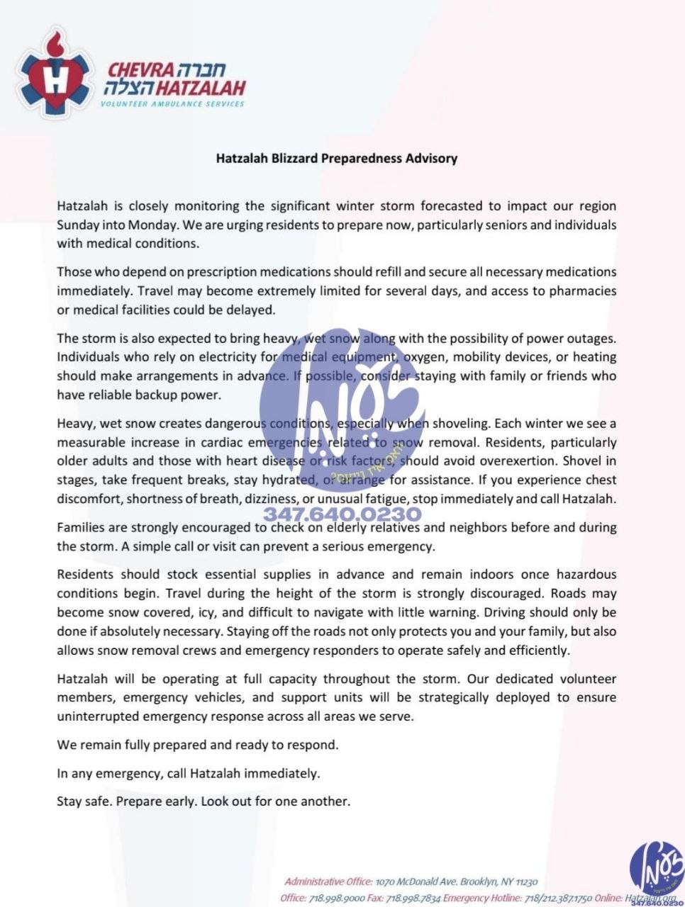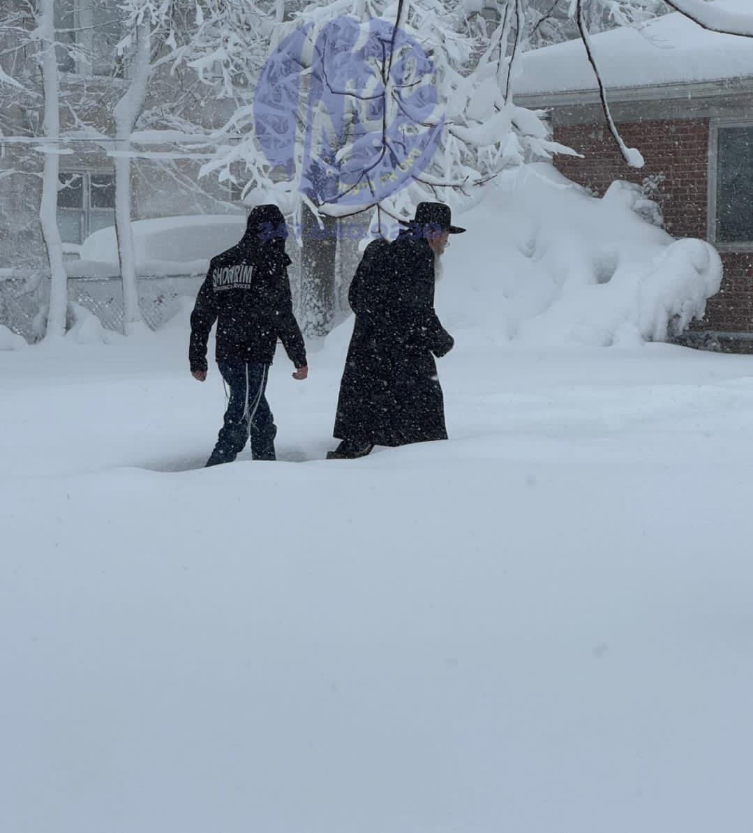 היסטארישע שניי בליזערד: לעיקוואוד - הגאון רבי מלכיאל קאטלער שליט"א ראש ישיבת בית מדרש גבוה ביים זיך מוסר נפש זיין צו גיין אין ישיבה געבן די שיעור טראץ די איבער צוויי פיס שניי וואס איז שוין געפאלן אין שטאט.