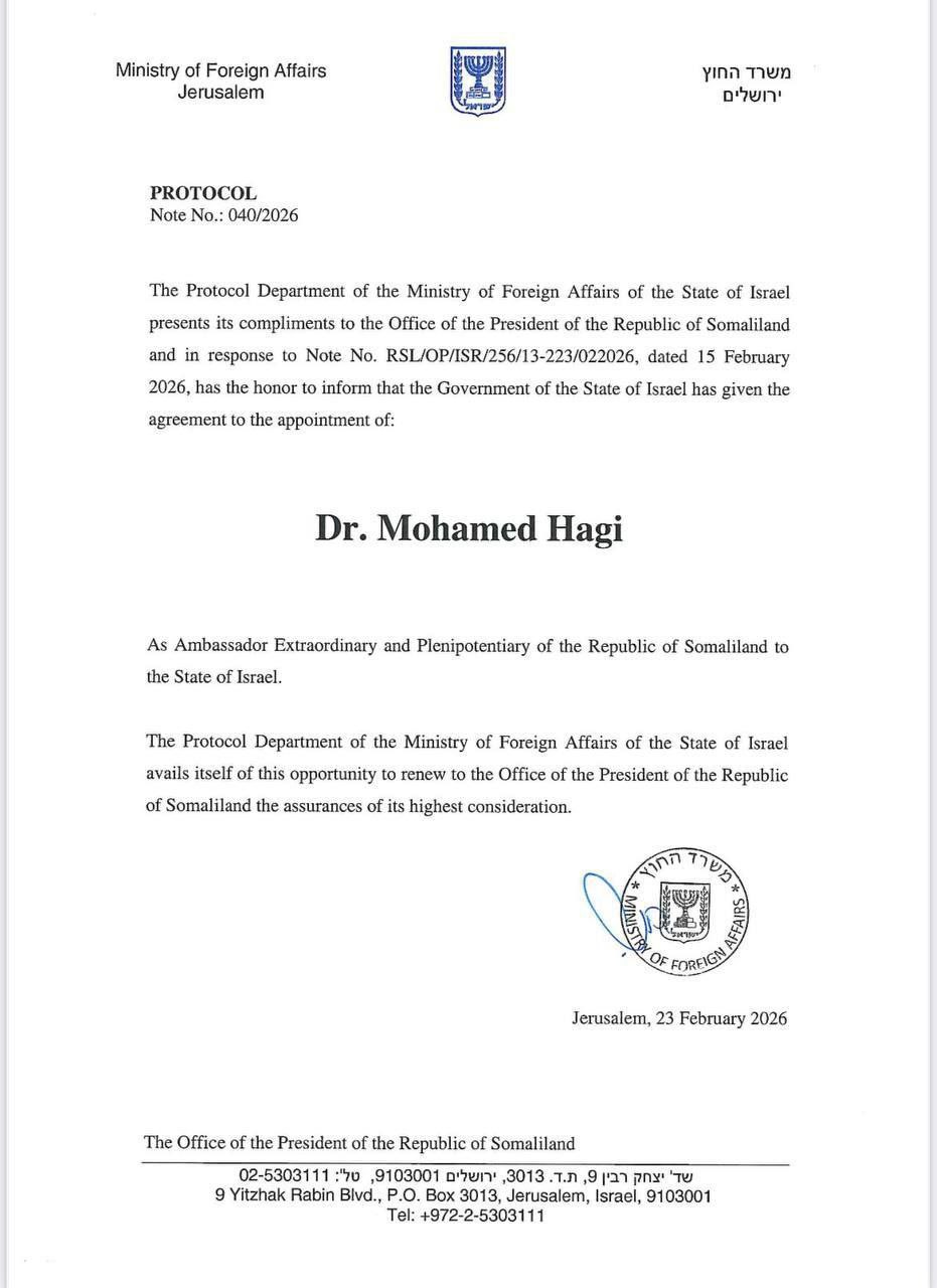 דער אפיציעלער דאקומענט און באשטעטיגונג פון דער ערשטער סאמאלילאנד אמבעסאדאר קיין מדינת ישראל, דר. מאכמוד האזשי. אידישער ווינקל *סטאטוס*:https://wa.me/13473456278?text=Joinאידישער ווינקל *גרופע*:https://chat.whatsapp.com/BN4IyLfXAN92HpIy00tQ1Q