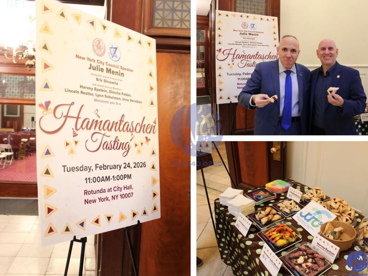 ניו יארק - אין די קארידארן פון די ניו יארק סיטי קאונסיל געביידע האט זיך נעכטן געשפירט א פורים׳דיגע שטימונג, דערנאך וואס די אידישע סיטי קאונסיל ספיקער פרוי מענין האט ארגאניזירט א ׳המן-טאשן פארזוכונג׳ אווענט, אינאיינעם מיט די אידישע קאוקאס וואס נעמט אריין קאונסיל מיטגלידער עריק דינאווטש, הארווי עפשטיין, ר׳ שמחה פעלדער, לינקלאן רעסטלער, פרוי שולמאן און פרוי ווערניקאוו. וואלונטירן האבן אויפגעשטעלט א טישל ביים אריינגאנג צום טשעימבער מיט אלע סארט המן-טאשן און דערציילט פאר די סיטי קאונסיל מיטגלידער איבער דעם בעפארשטייענדע יום טוב פורים און די מנהג פון עסן המן-טאשן, מערערע קאונסיל מיטגלידער און זייערע געהילפן האבן זיך אפגעשטעלט צו פארזוכן די אידישע דעליקאטעס.