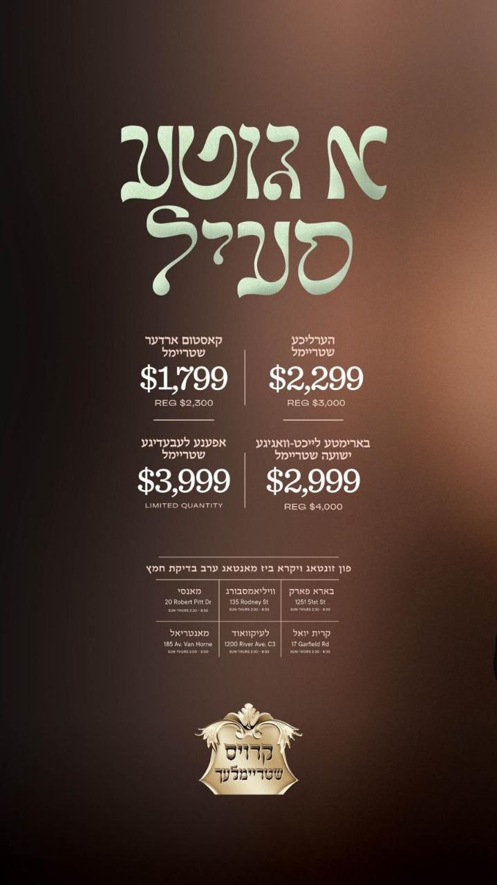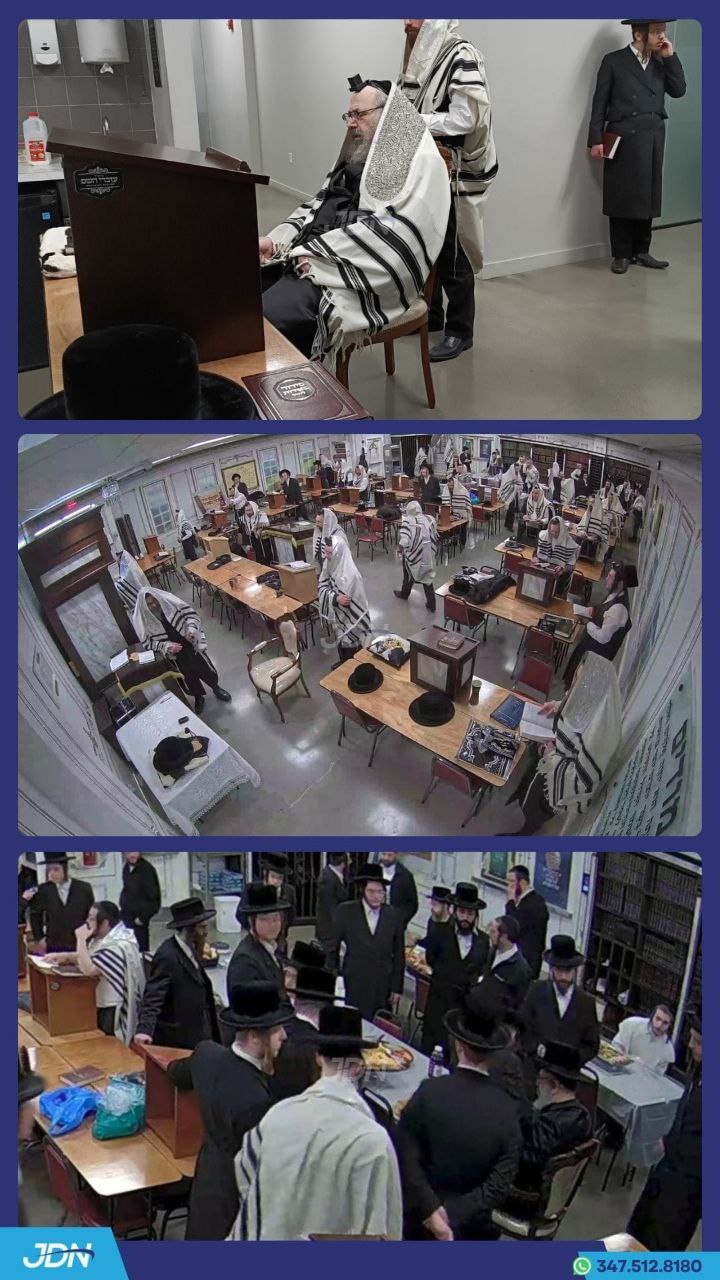 =מיטוואך ויקרא=פארן דאווענען איז פארגעקומען די ברית לבן הנולד אצל הרה"ח ר' יואל קויפמאן הי"ו - משמש, ווי דער רבי איז געווען סנדק ומוהל.און די ברית לבן הנולד אצל ר' שמחה ליכטענשטיין הי"ו ווי דער רבי איז געווען סנדק ומוהל.דער רבי האט געדאווענט שחרית אין ישיבה גדולה סניף ויואל משה.פארן דאווענען האט דער רבי געלייגט תפילין פאר די בר מצוה בחור ב"ר אפרים העכט הי"ו.נאכן דאווענען האט דער רבי פארגעלערנט א תהילים שיעור אויף קאפיטל כ"ט פסוק ג'.דערנאך איז פארגעקומען א לחיים מיט די בר מצוה בחור בחדרו הפרטי.ארום 1:45 איז דער רבי אנגעקומען בהיכל המתיבתא סניף דברי יואל ווי דער רבי האט פארגעלערנט די אכטע סוגיא שיעור אין די סוגיא פון מצות עשה שהזמן גרמא אלץ הכנה צום שבת הגדול דרשה, מען האט געענדיגט ארום 2:35.ארום 6:15 האט דער רבי געדאווענט מנחה בביתו נאוה קודש אויף צאנז קט.פארנאכטס האט דער רבי מסדר קידושין געווען ביי די חופה פון די מחותנים הרה"ח ר' דניאל יונתן עג'מי הי"ו און הרה"ח ר' יואל ברא"א מאסרי הי"ו אין די זאלן פון כינור דוד. און ביי די חופה פון די מחותנים הרה"ח ר' ישראל חיים ווייזער הי"ו און הרה"ח ר' שרגא שטראה הי"ו אין די זאלן פון בית רחל פאראדייס.און ביי די חופה פון די מחותנים הרה"ח ר' אברהם גרין הי"ו און הרה"ח ר' יואל ברא"ש מייזעלס הי"ו אין די זאלן פון גינת קליין.זמני כניסה איז געווען פון 8:15 ביז 12:15 אויפדערנאכט בביתו נאוה קודש אויף איהעל קט.בעת די זמני כניסה איז אריין בקודש פנימה הגאון הגדול הדומ"ץ שליט"א וועלכע האט איבערגעגעבן א גרוס פאר רבינו שליט"א פון קהלתינו הק' אין אנטווערפען נאכן וויילן דארט פארגאנגענע שבת, אזוי אויך האט דער דיין שליט"א איבערגעגעבן א פריסת שלום פון כ"ק אדמו"ר מפשעווארסק שליט"א.ארום 10:50 האט דער רבי געליינט די תנאים פון די מחותנים הרה"ח ר' אברהם משה לעבאוויטש הי"ו און הרה"ח ר' נפתלי מארקאוויטש הי"ו,און פון די מחותנים הרה"ח ר' יעקב יושע כהנא הי"ו און הרה"ח ר' משולם שמעי' פריעדמאן הי"ו,אין די תנאים זאלן בביתו נאוה קודש.דער רבי האט געדאווענט מעריב ארום 12:15.א גוטע נאכט.~🌴~