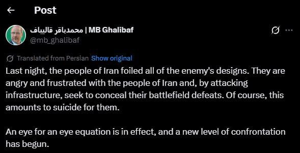 דער פארלאמענט ספיקער פון איראן זאגט אז איראן וועט אנהויבן ארבעטן מיט א נייע סיסטעם פון "אן אויג פאר אן אויג." אידישער ווינקל *סטאטוס*:https://wa.me/13473456278?text=Joinאידישער ווינקל *גרופע*:https://chat.whatsapp.com/BN4IyLfXAN92HpIy00tQ1Q