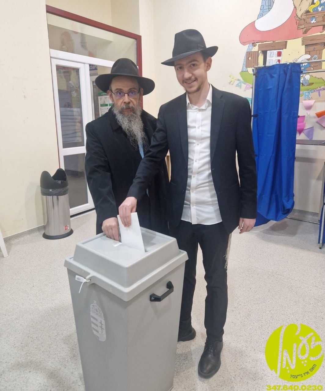 בודאפעסט - הגאון רבי ברוך אבערלענדער דער הויפט רב פון שטאט, ביים אפגעבן זיין שטיצע ביי די היינטיגע וואלן פאר דער פרעמיער מיניסטער אמט.