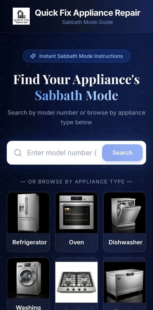 Find your appliances shabbos mode.A project by quick fix, appliance repair.https://sabbath-mode-ease.base44.app/