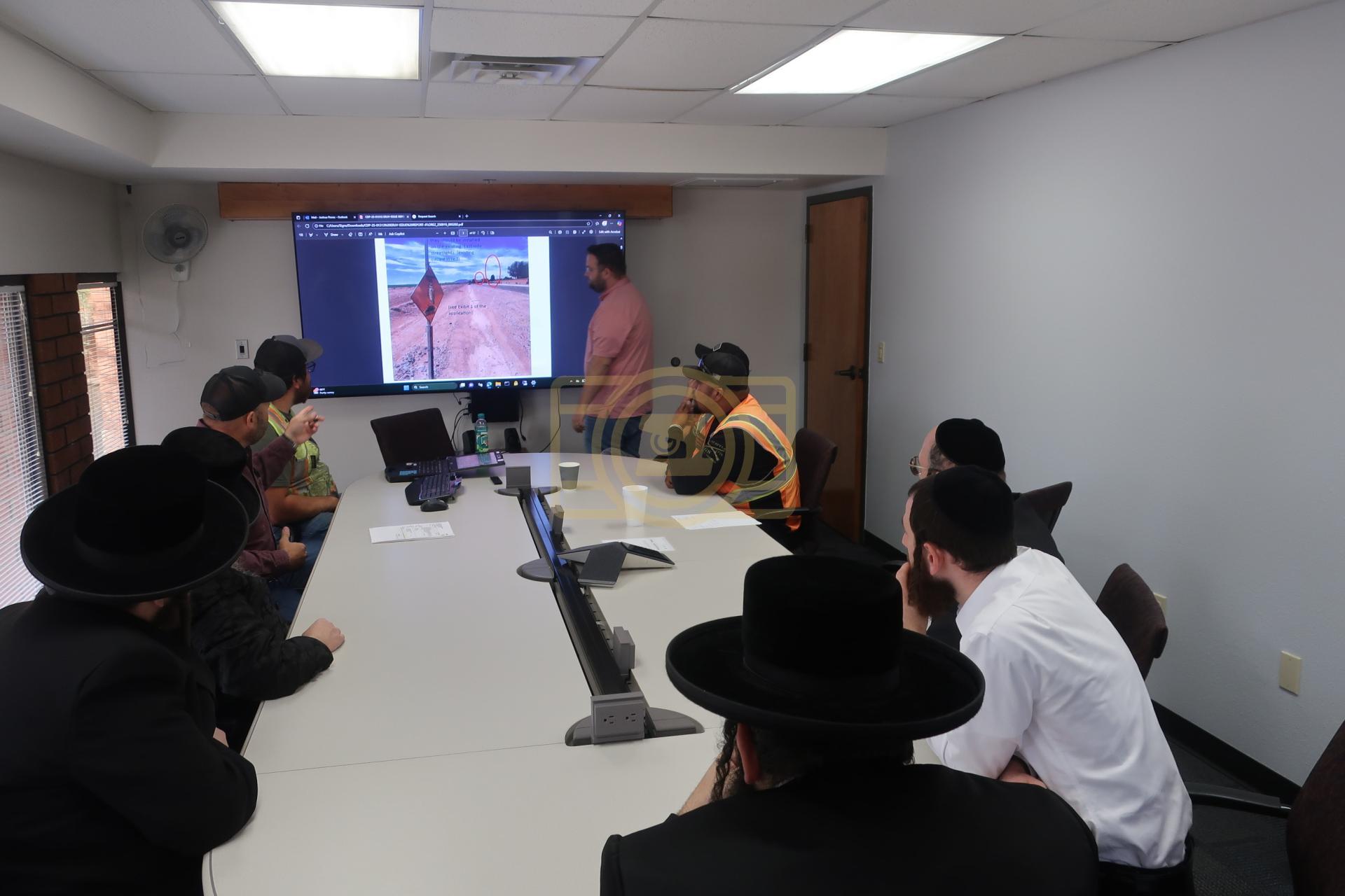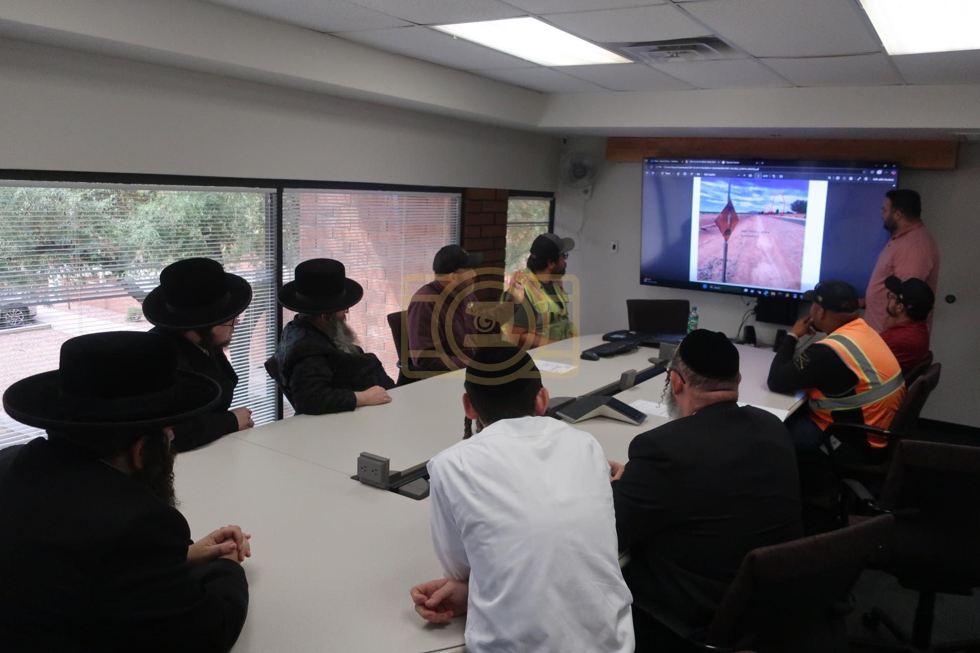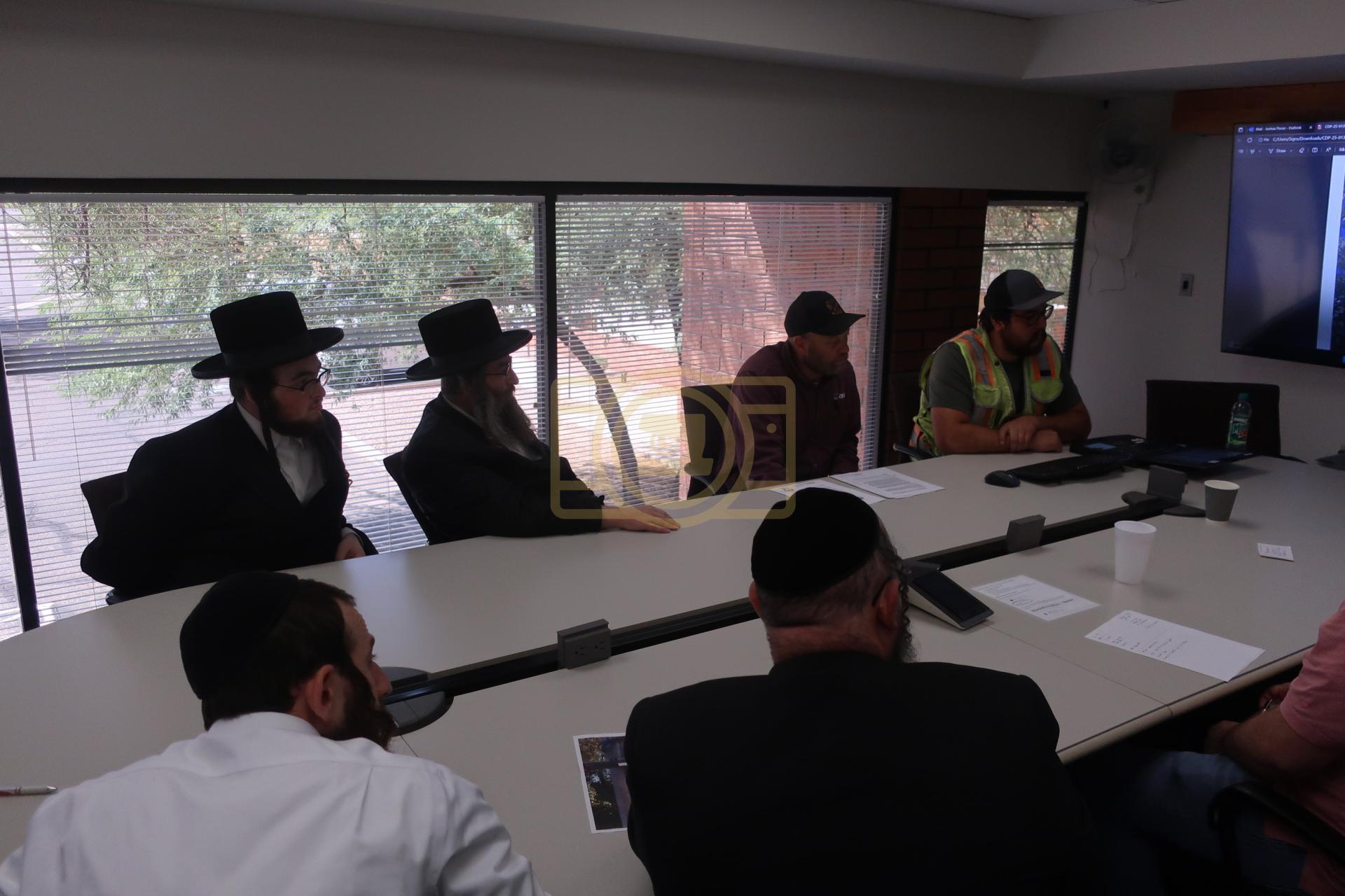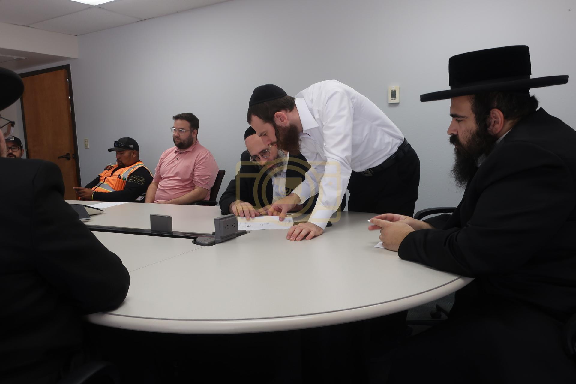 די מיטינג איז פארגעקומען בראשות דער רב הרב חיים שלמה בערגער שליט"א און דער מייסד היישוב הרב יהושע רובין און דער עסקן העירוב רבי יצחק גרין הי"ו און דער עסקן רבי משה סורקיס הי"ו