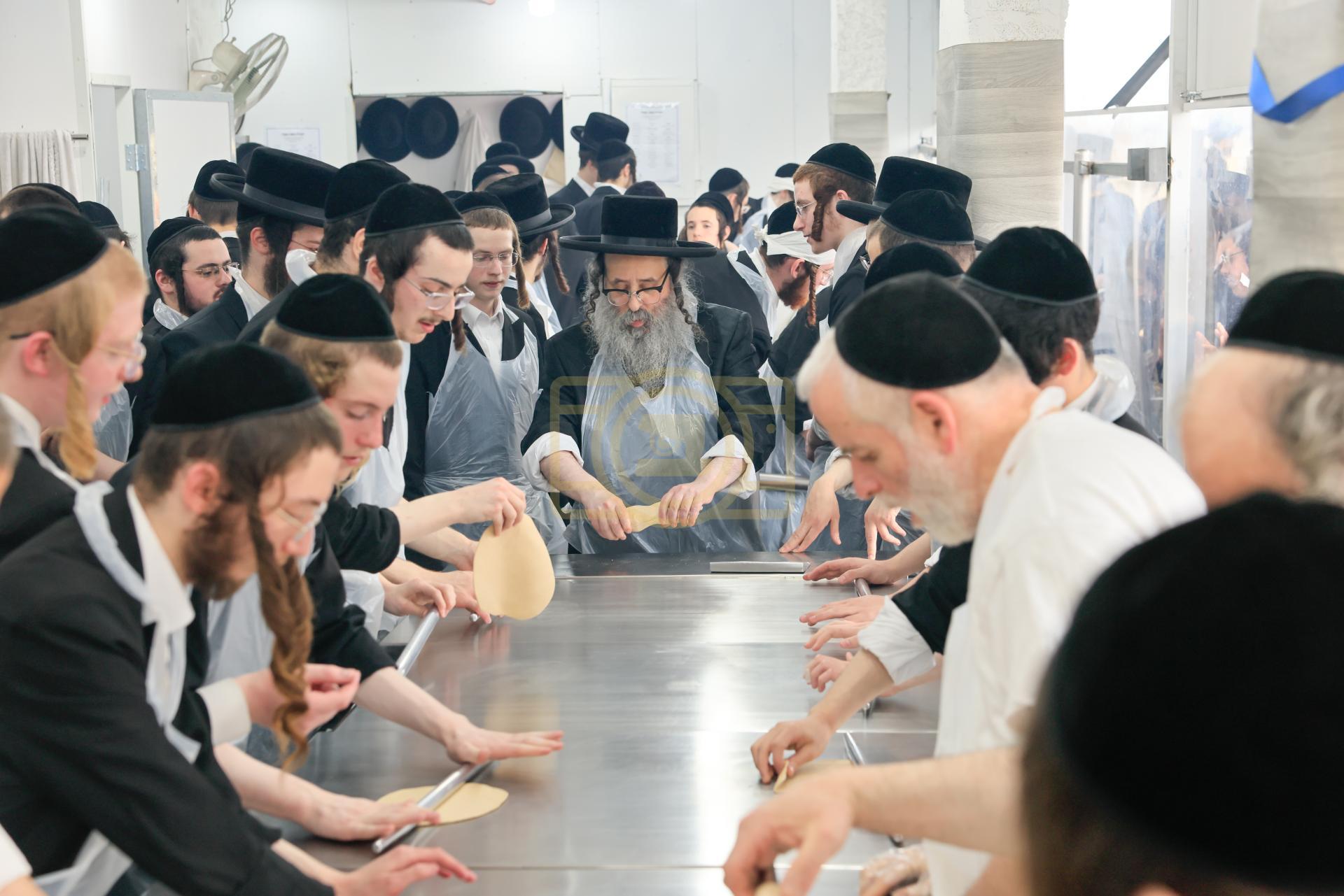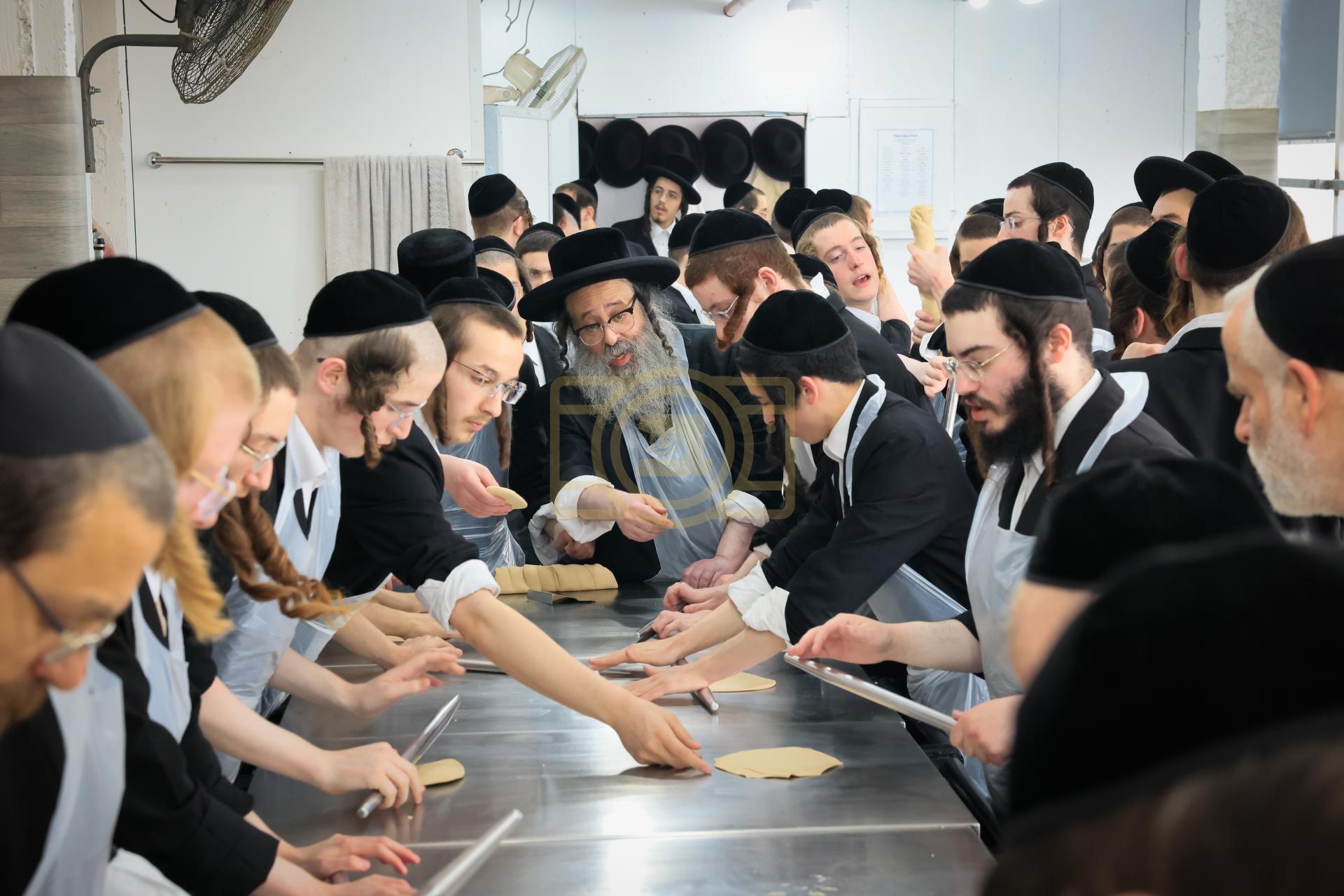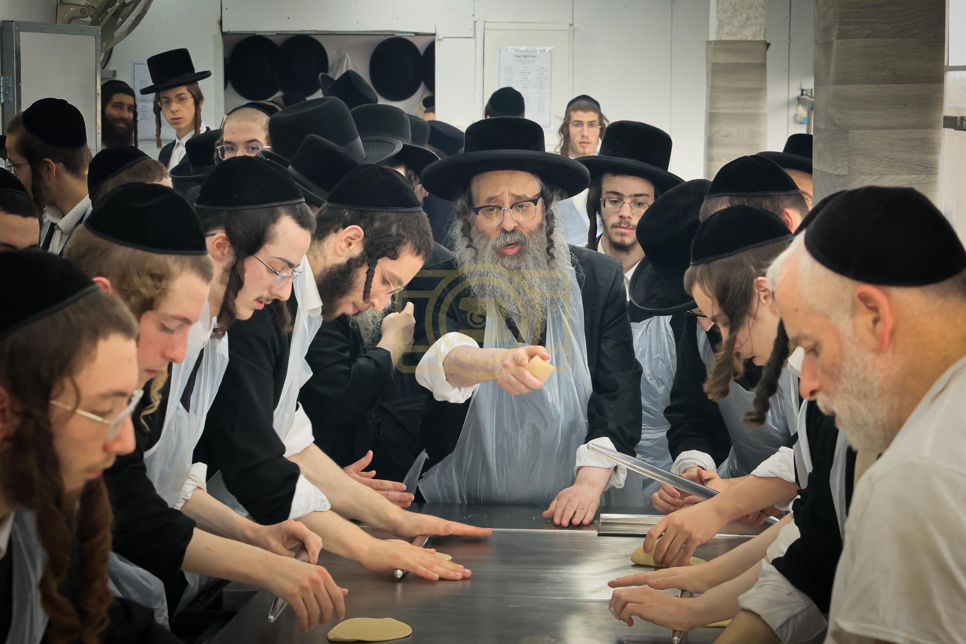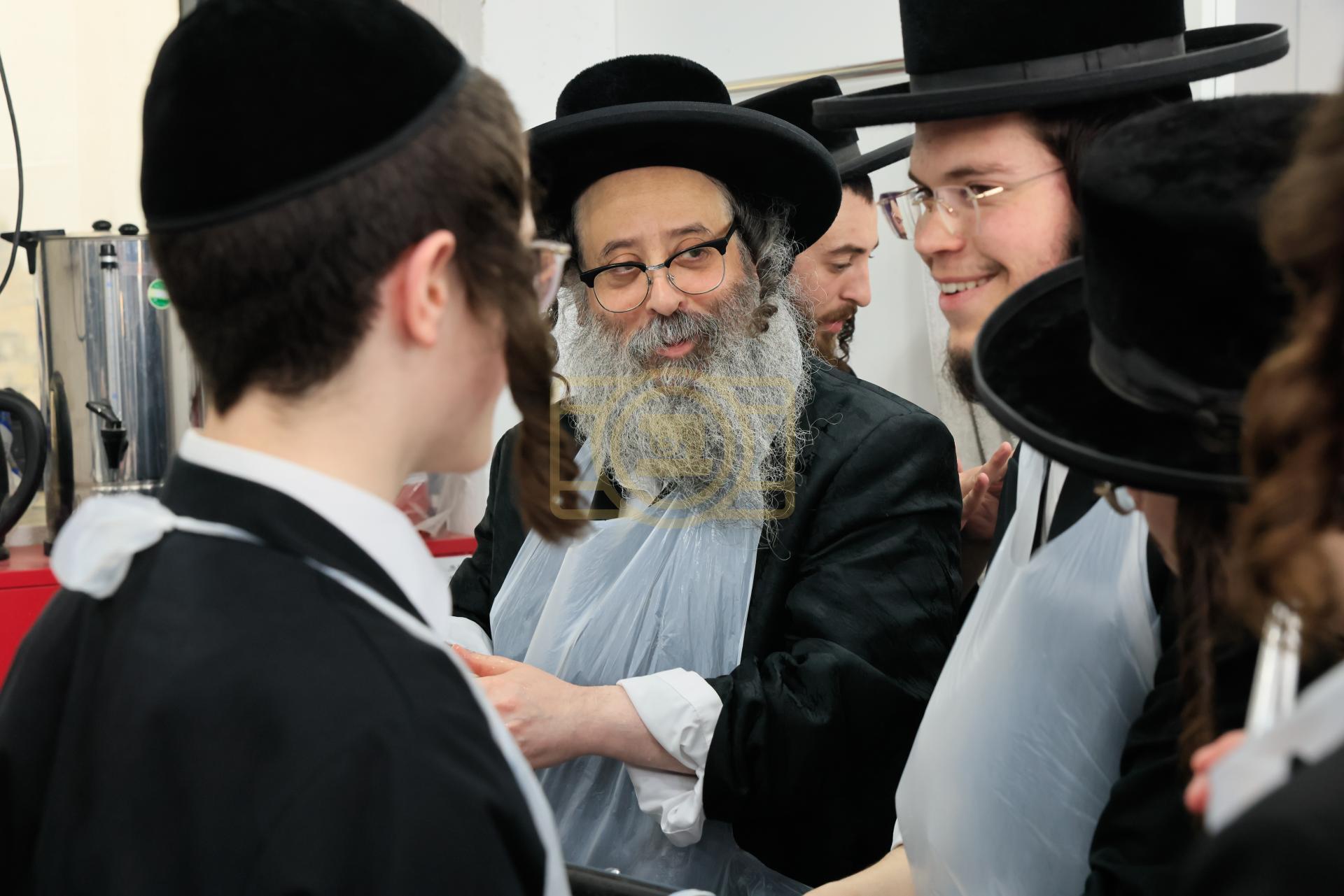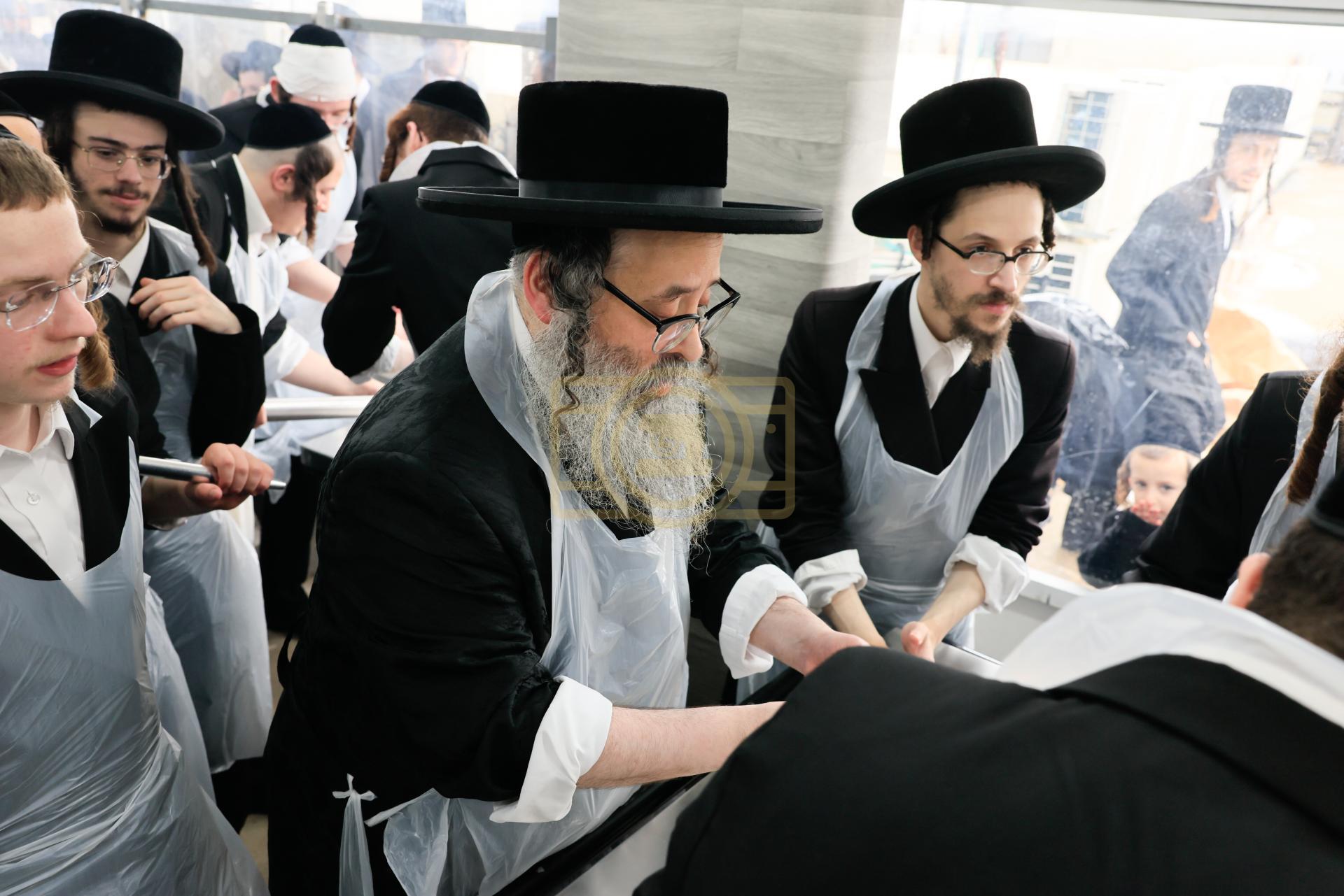 מעמד אפיית מצות בראשות הגה"צ ראש ישיבת סאטמאר בני ברק שליט"א אינאיינעם מיט די תלמידי הישיבה גדולה