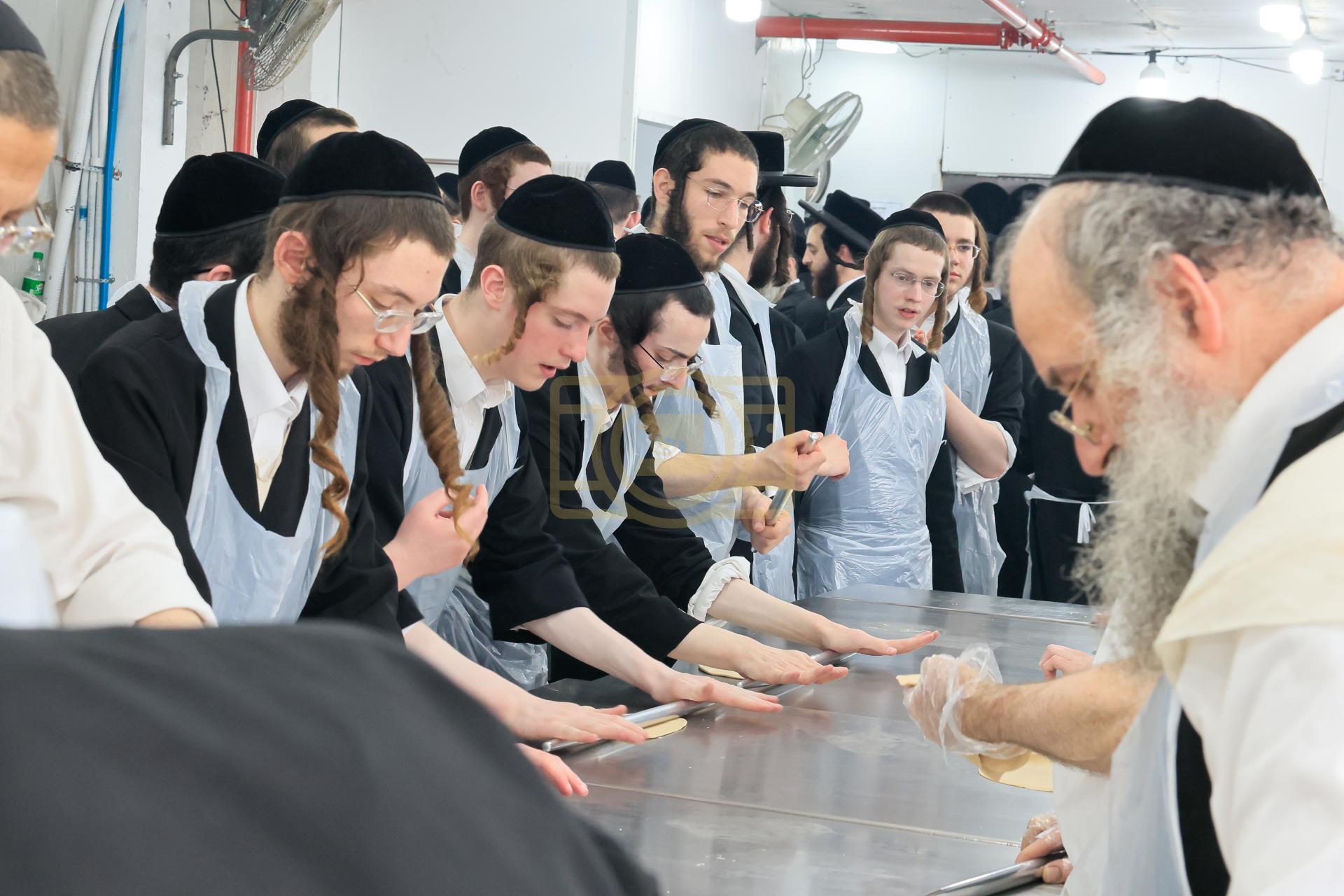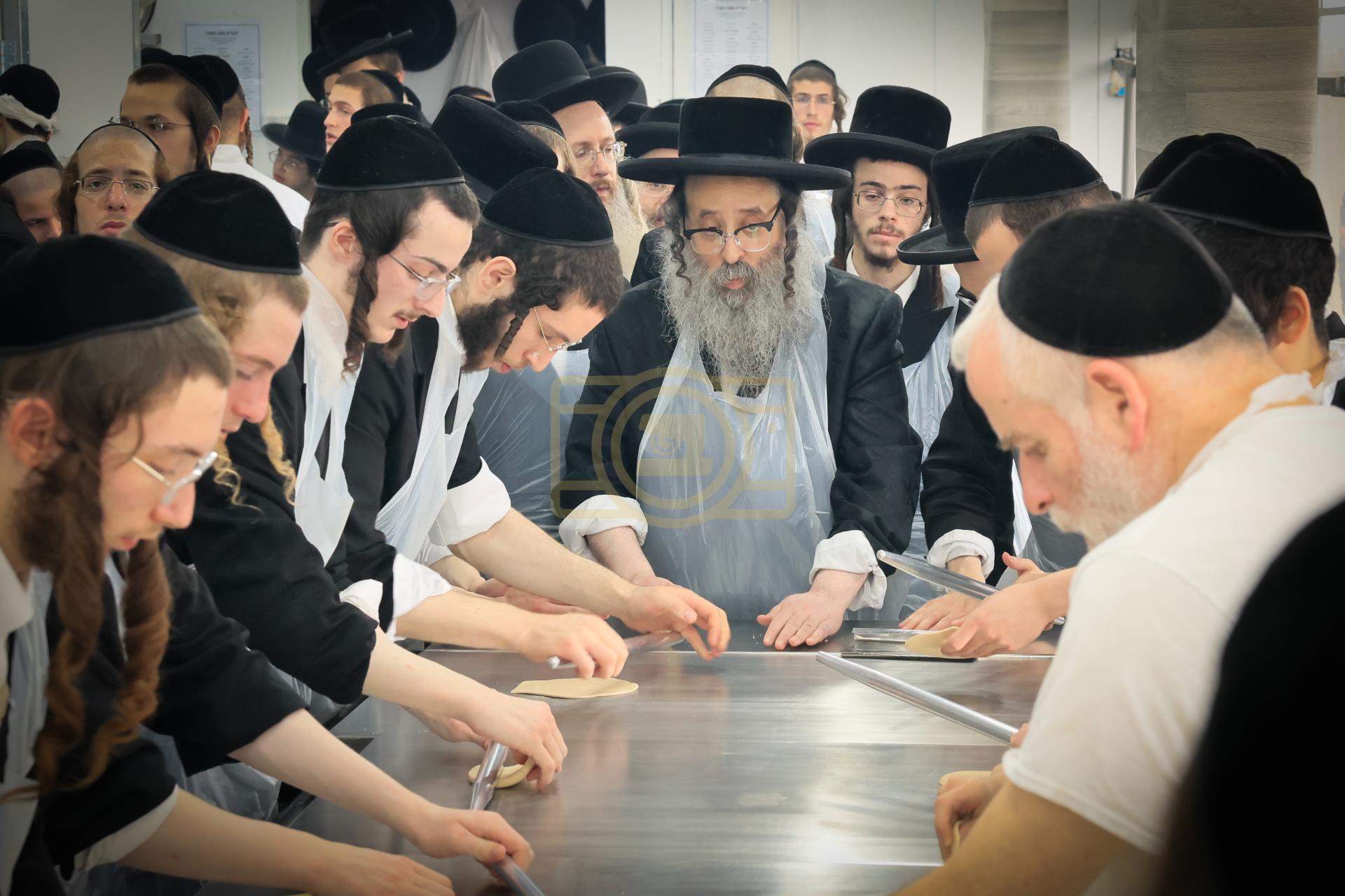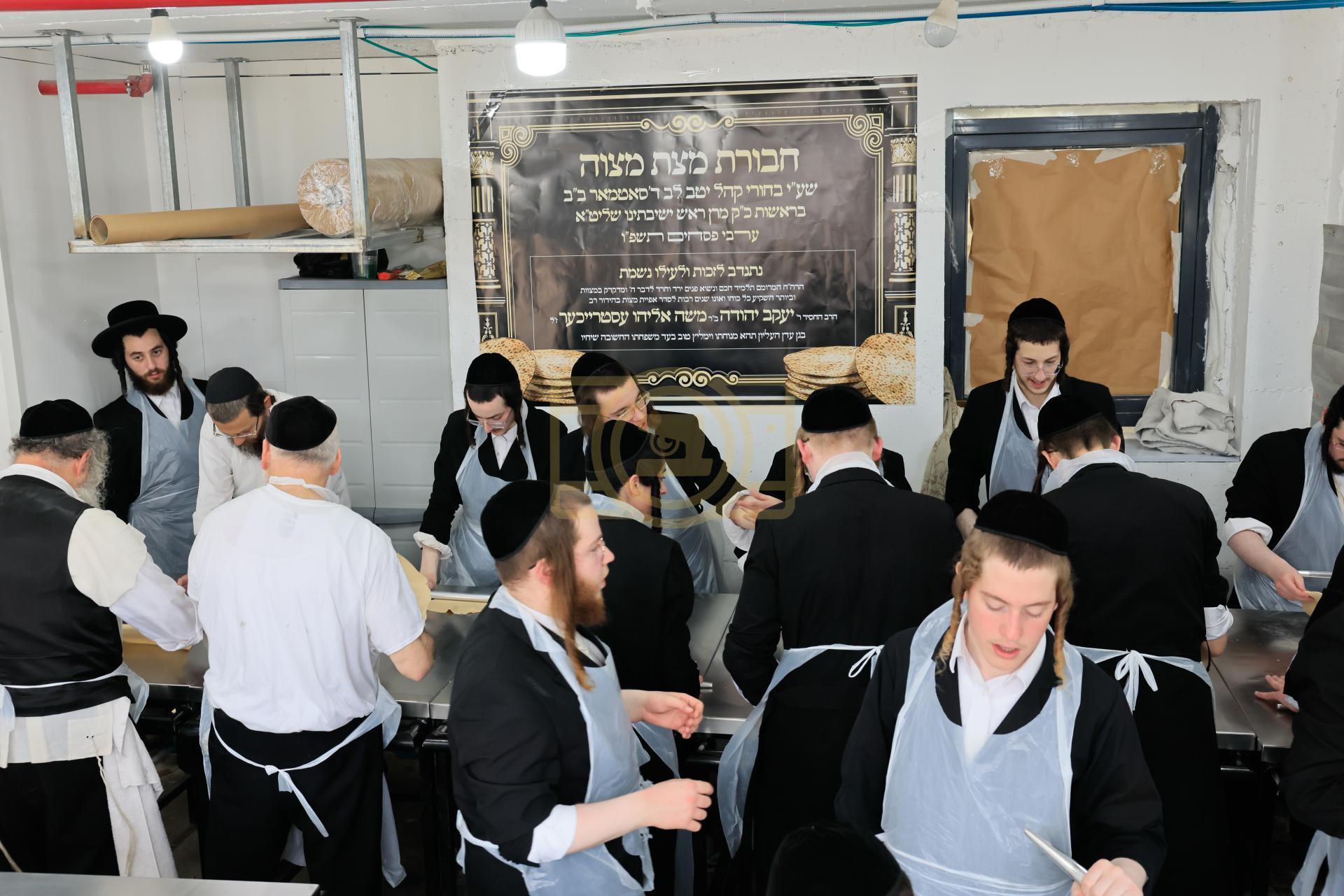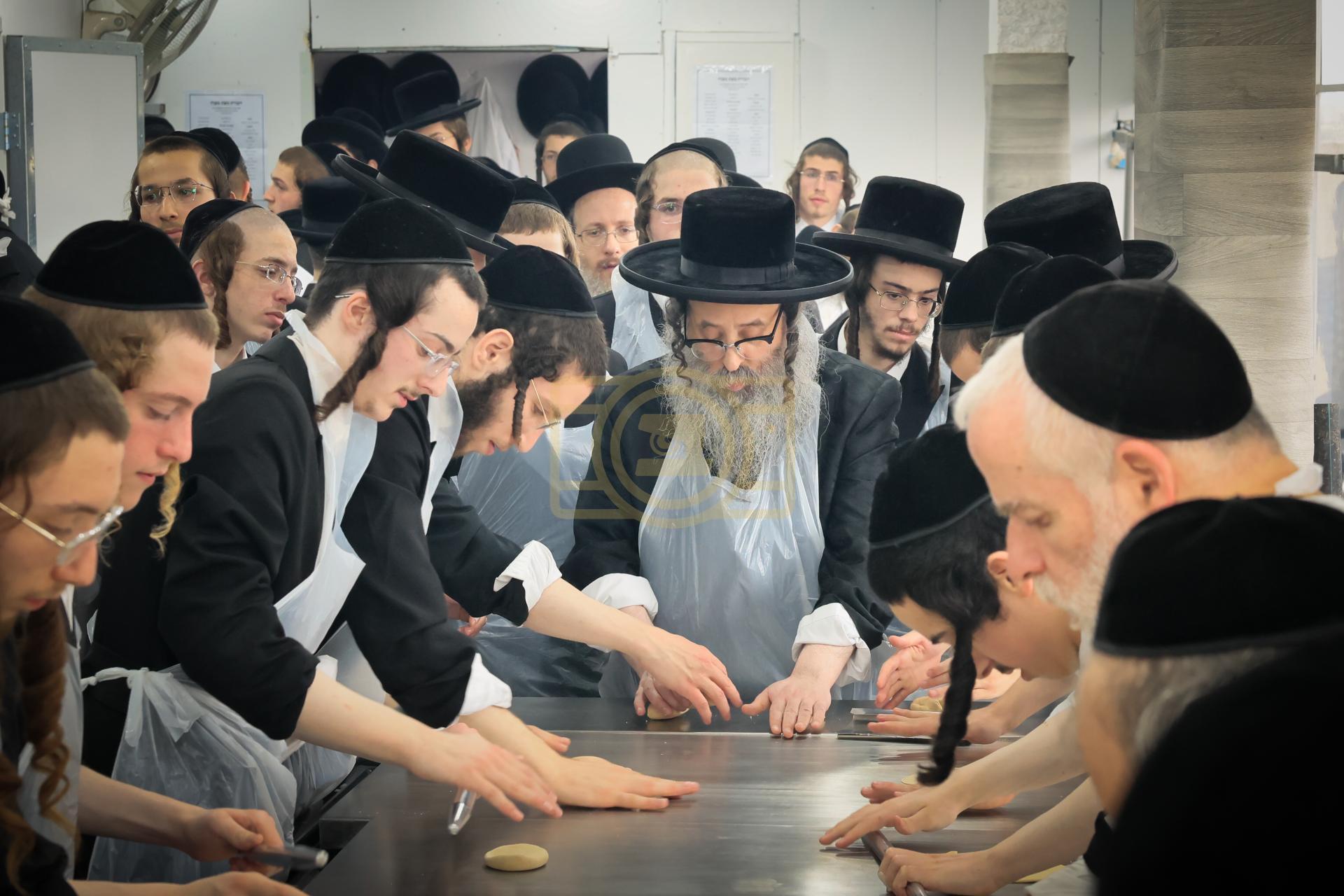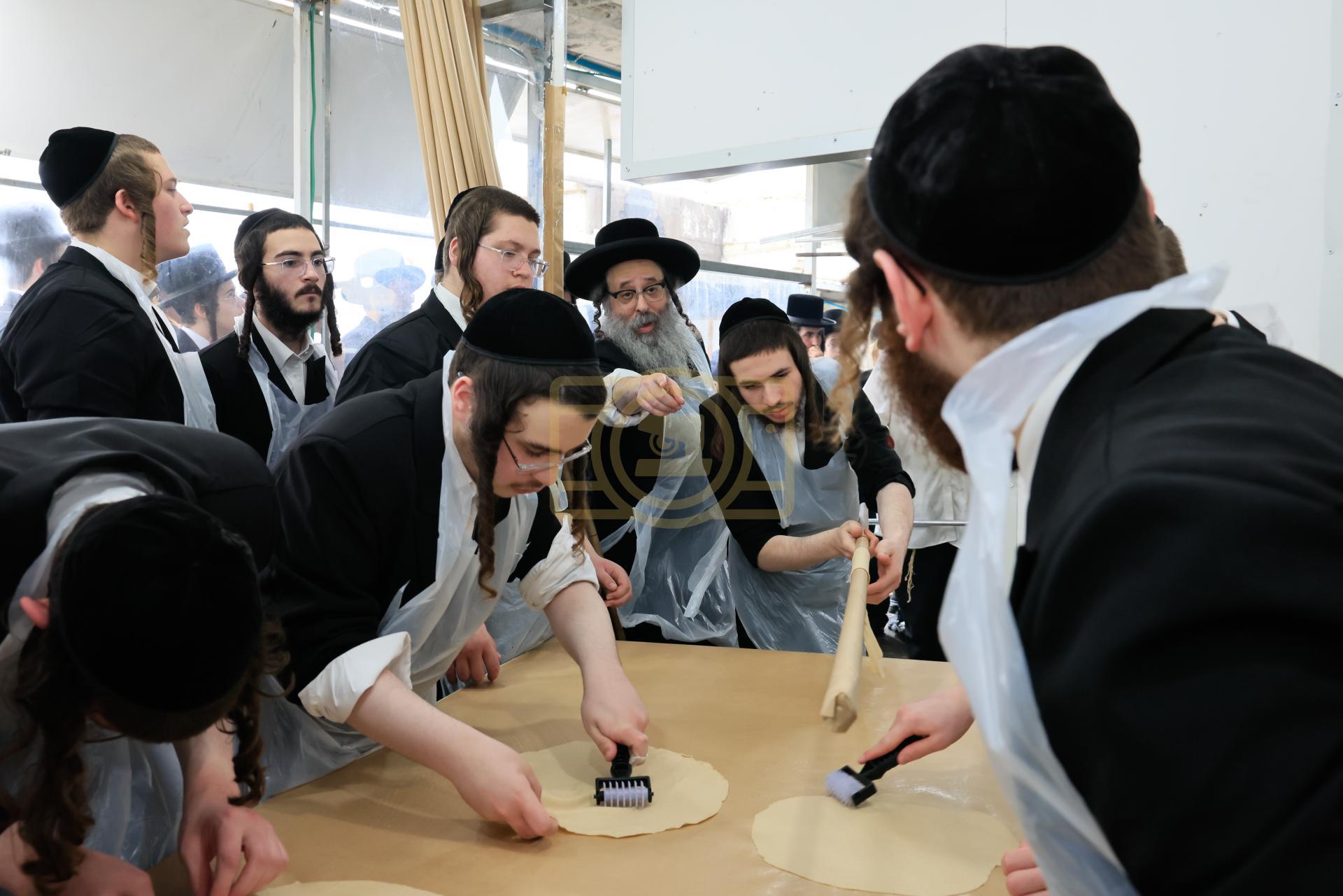 מעמד אפיית מצות בראשות הגה"צ ראש ישיבת סאטמאר בני ברק שליט"א אינאיינעם מיט די תלמידי הישיבה גדולה