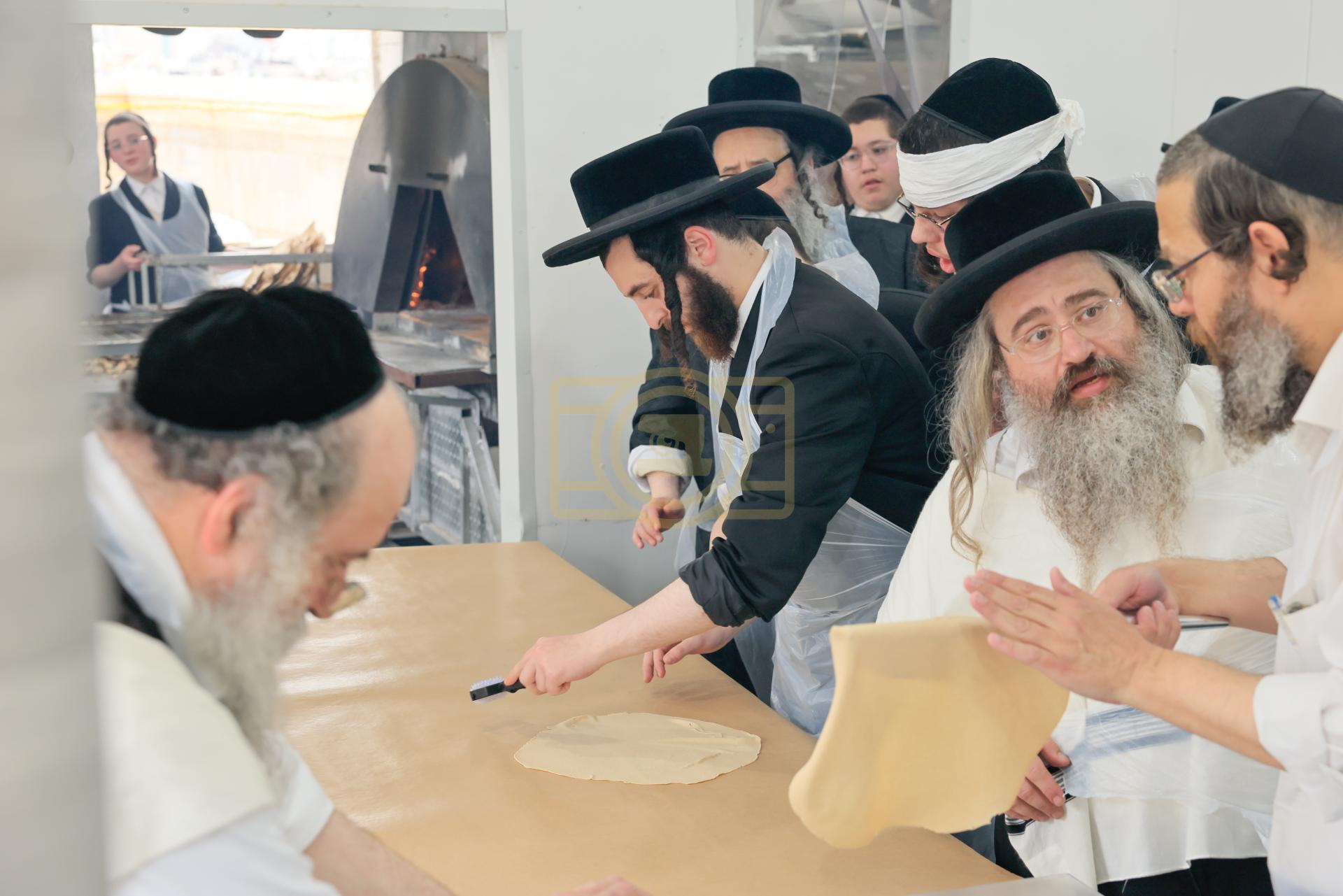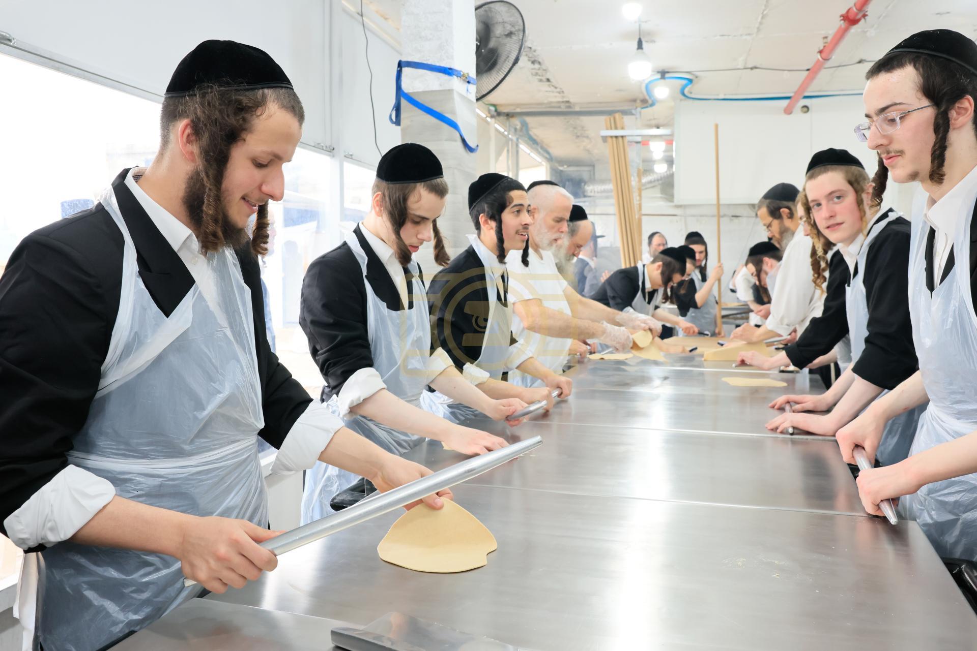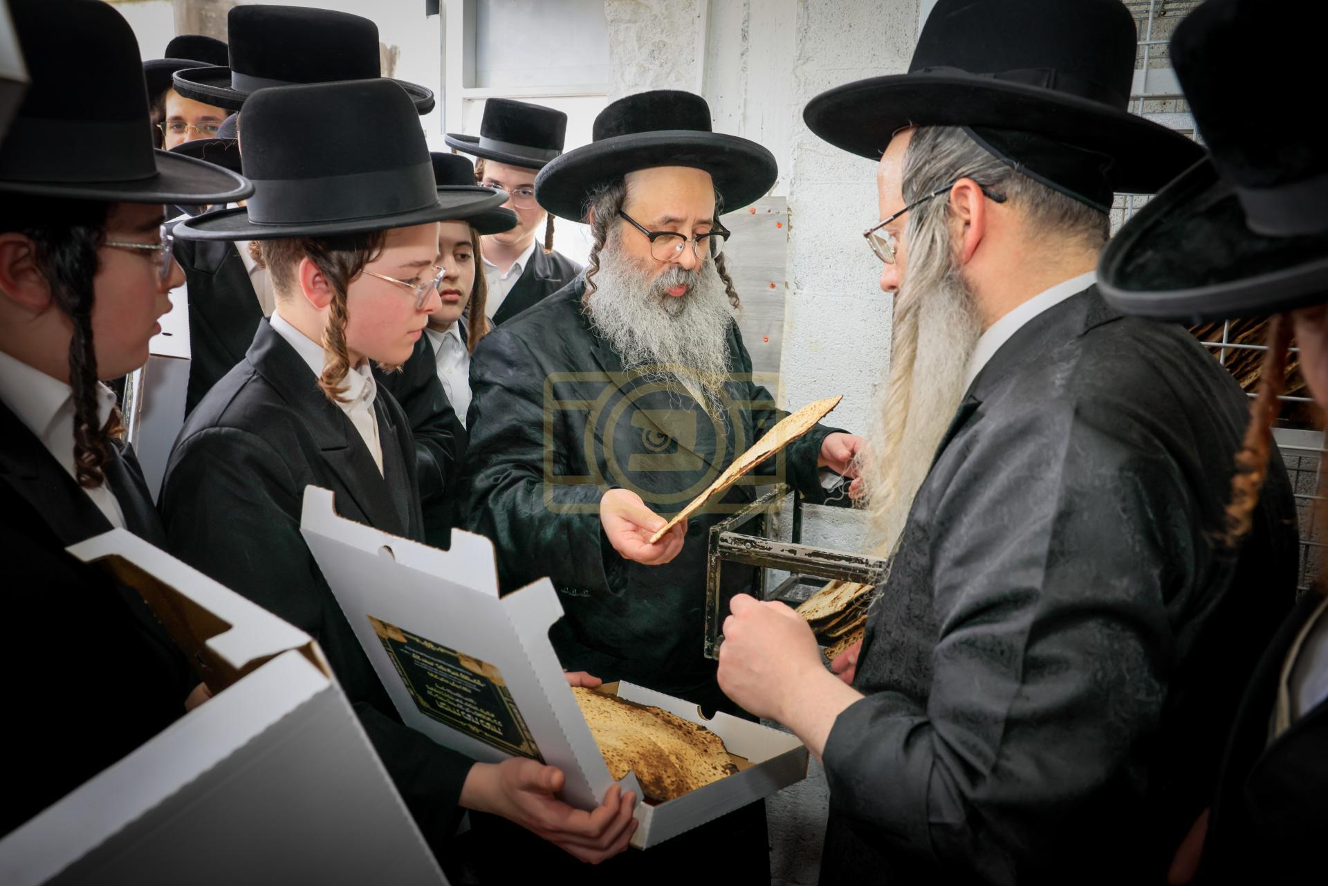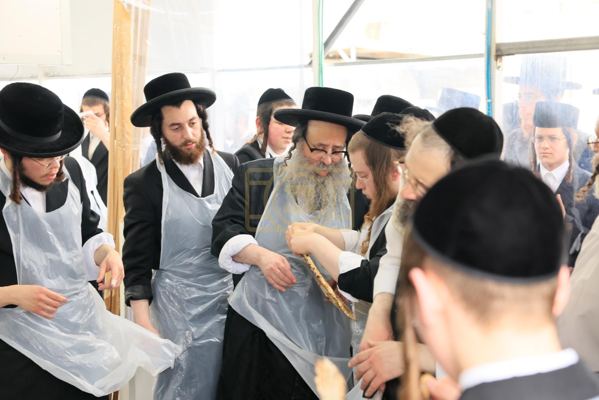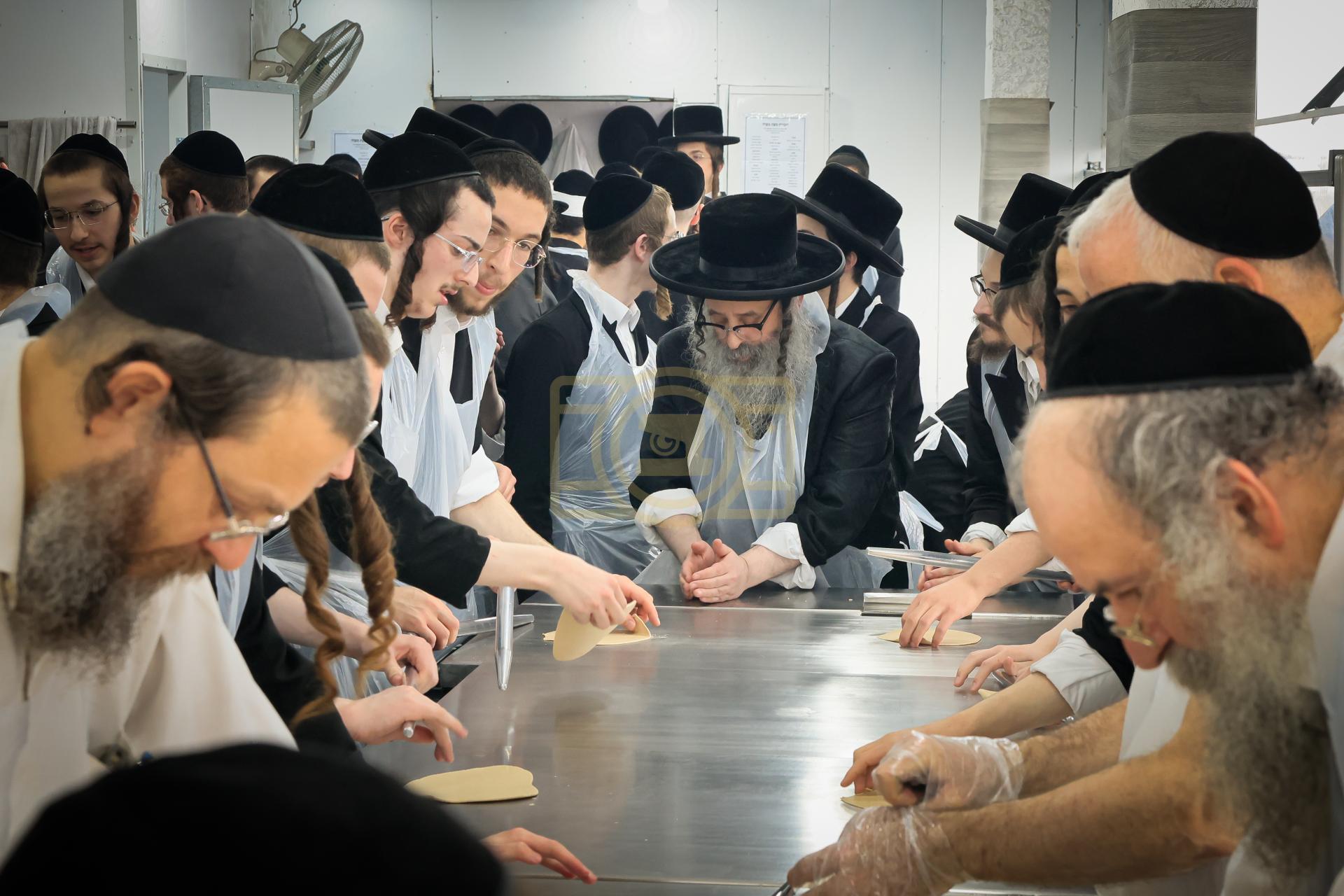 מעמד אפיית מצות בראשות הגה"צ ראש ישיבת סאטמאר בני ברק שליט"א אינאיינעם מיט די תלמידי הישיבה גדולה