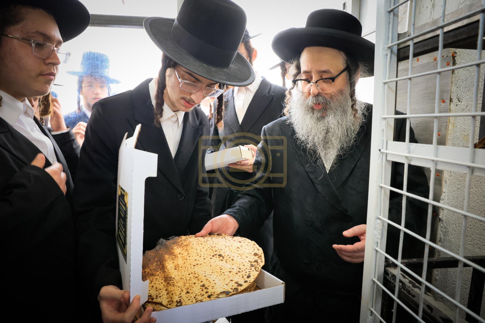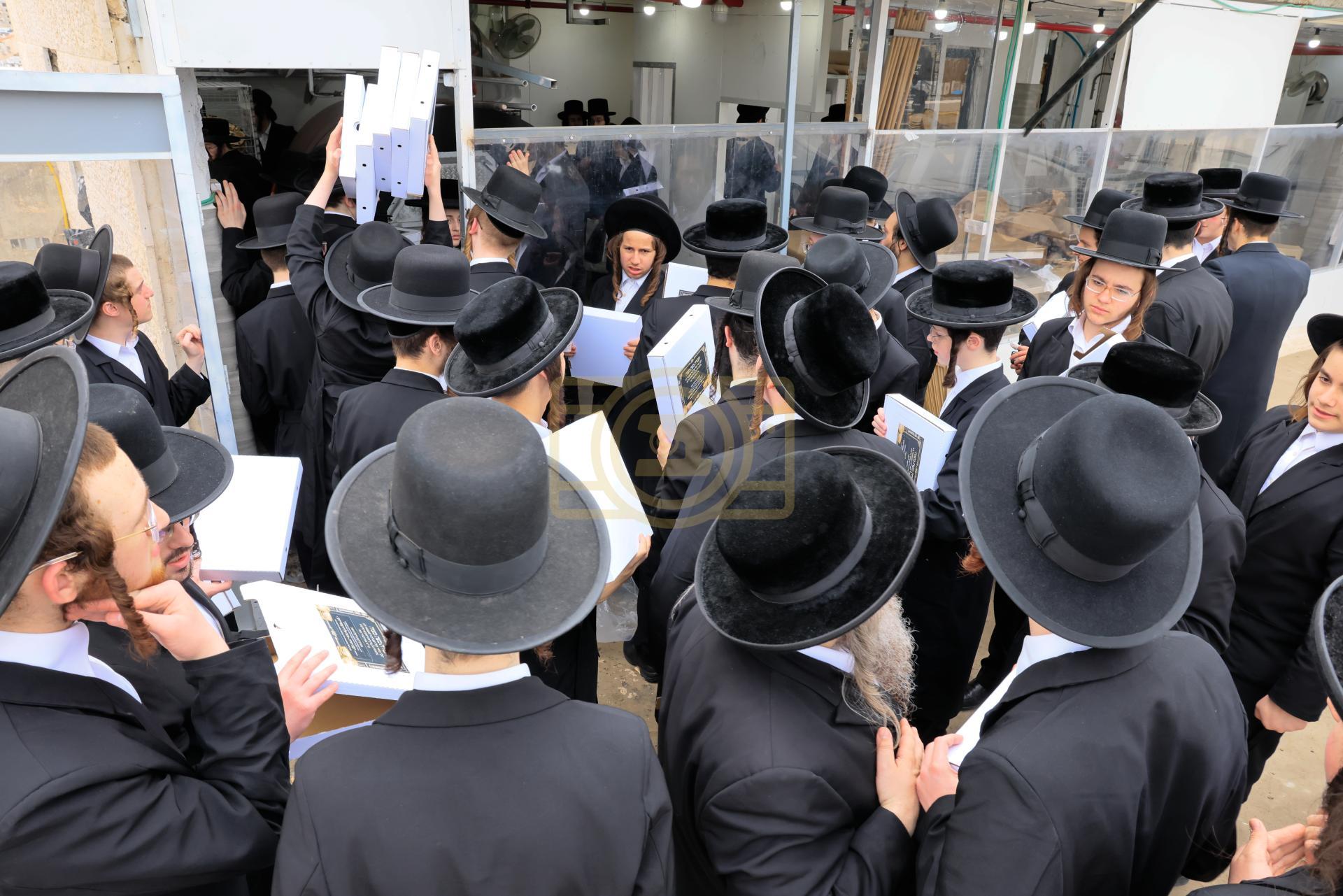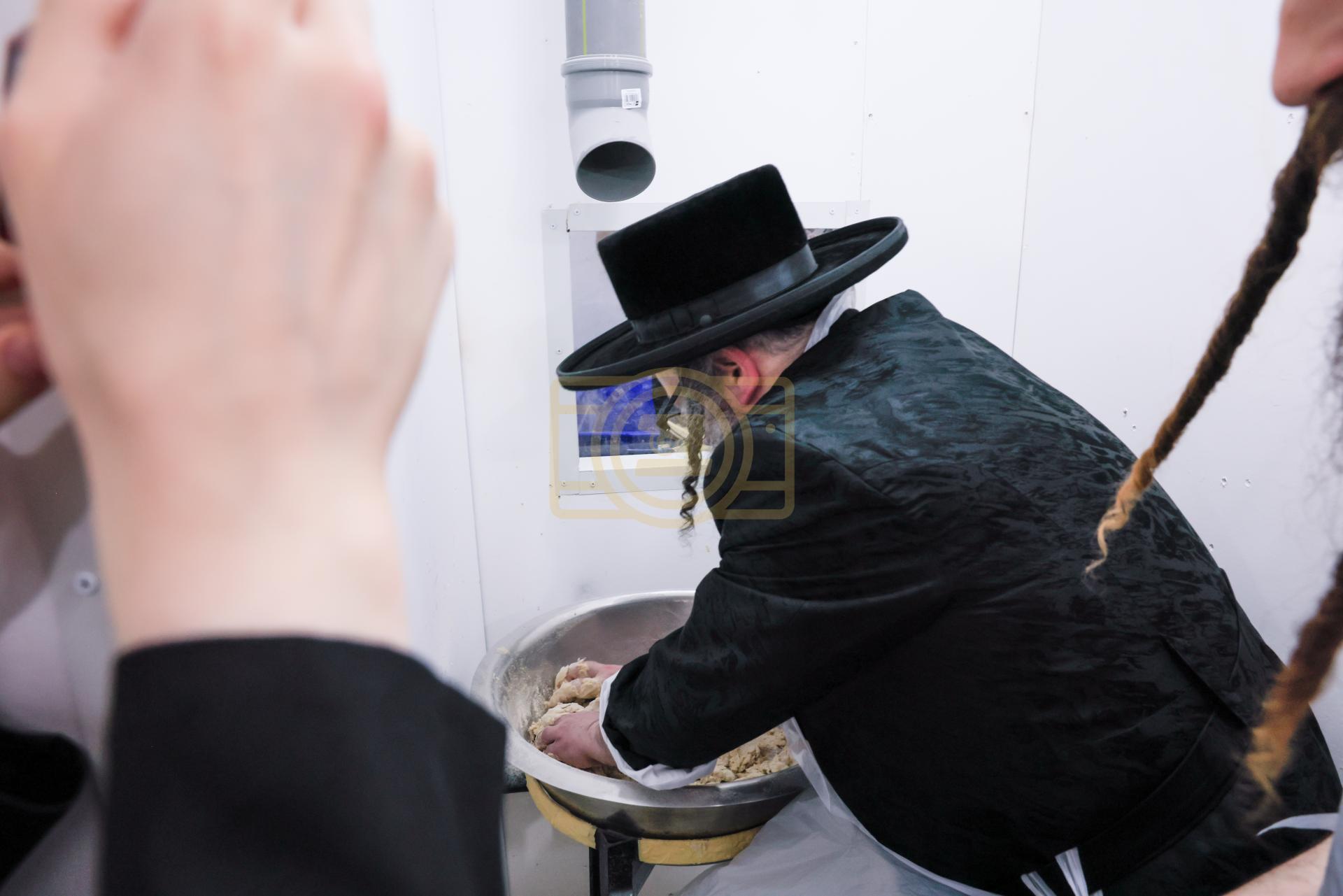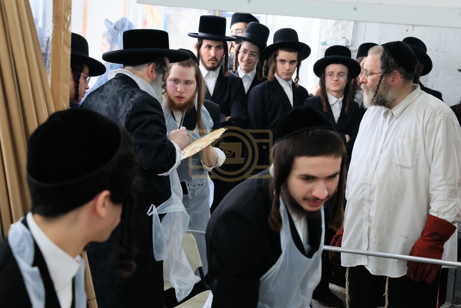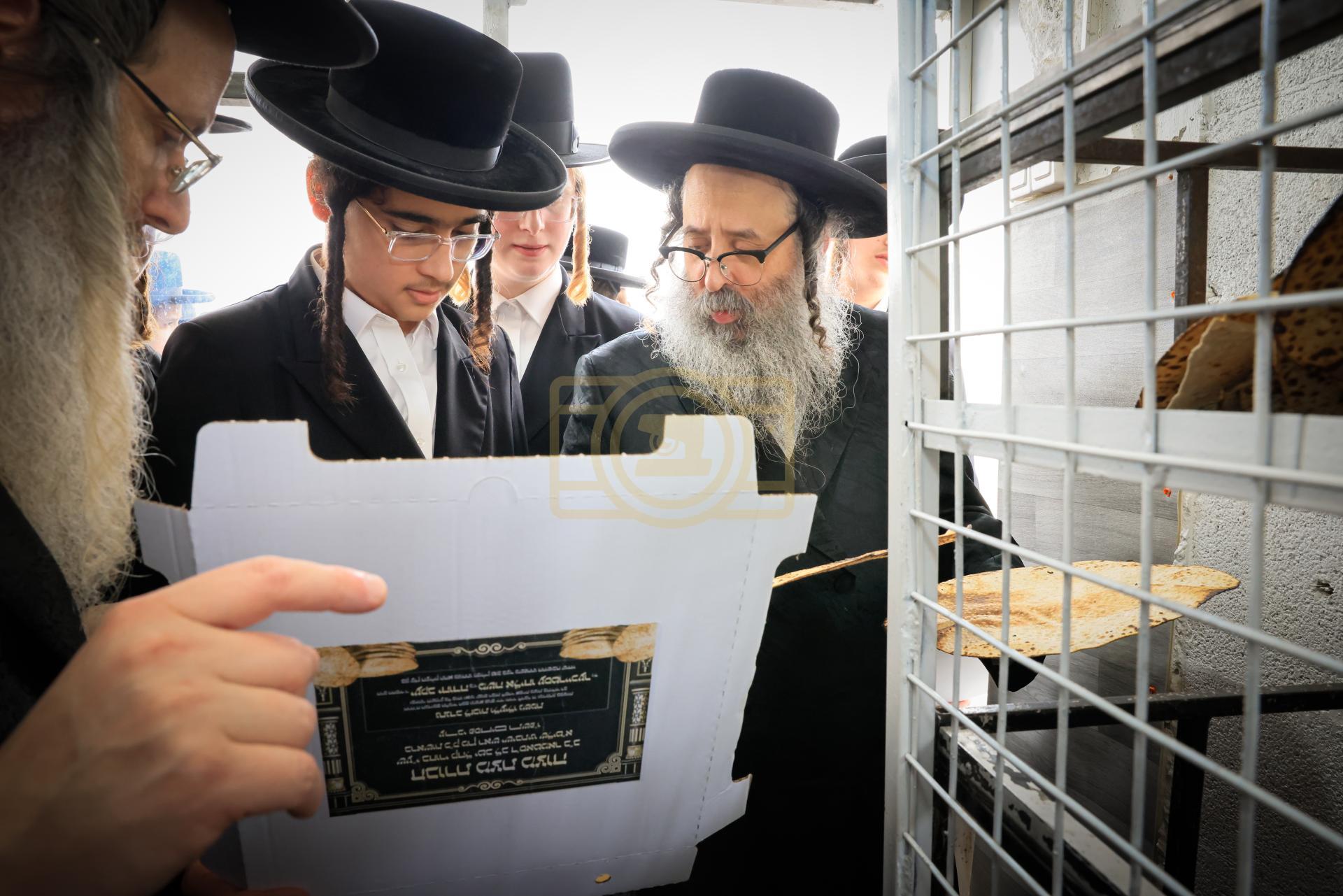 מעמד אפיית מצות בראשות הגה"צ ראש ישיבת סאטמאר בני ברק שליט"א אינאיינעם מיט די תלמידי הישיבה גדולה
