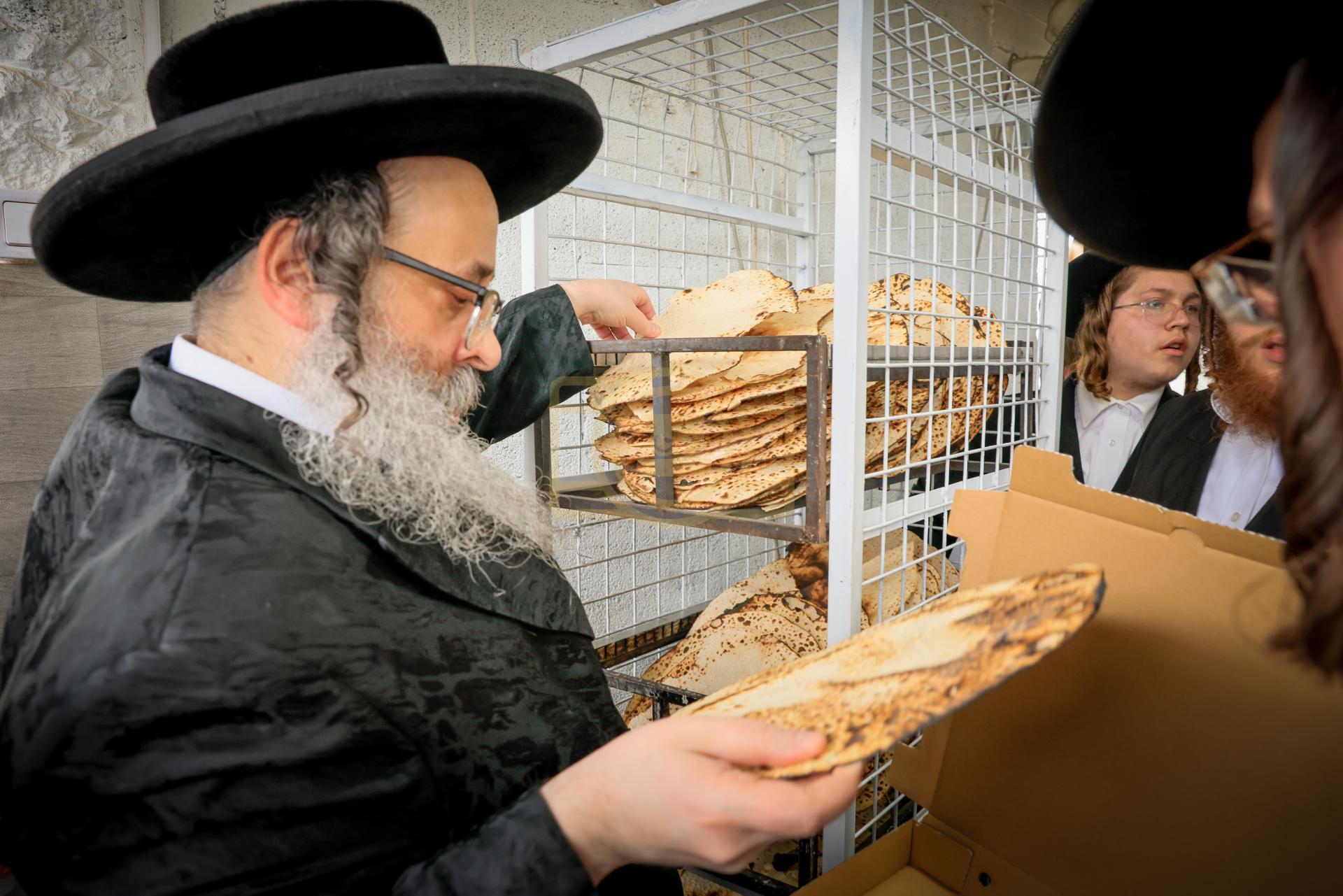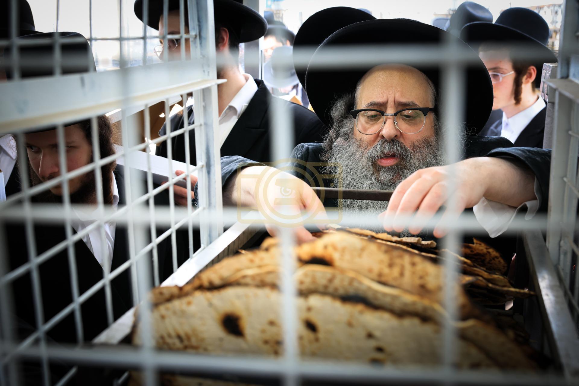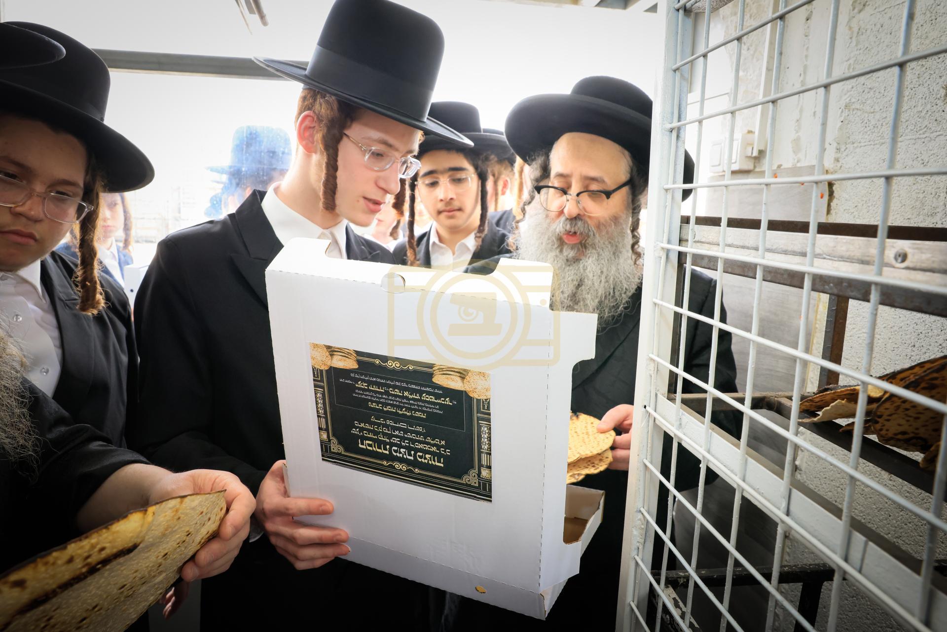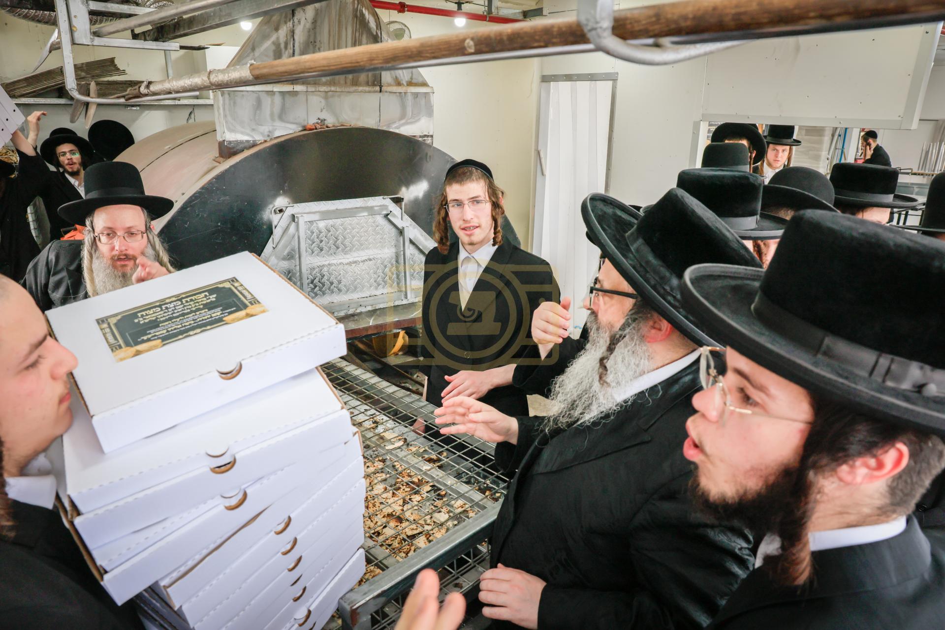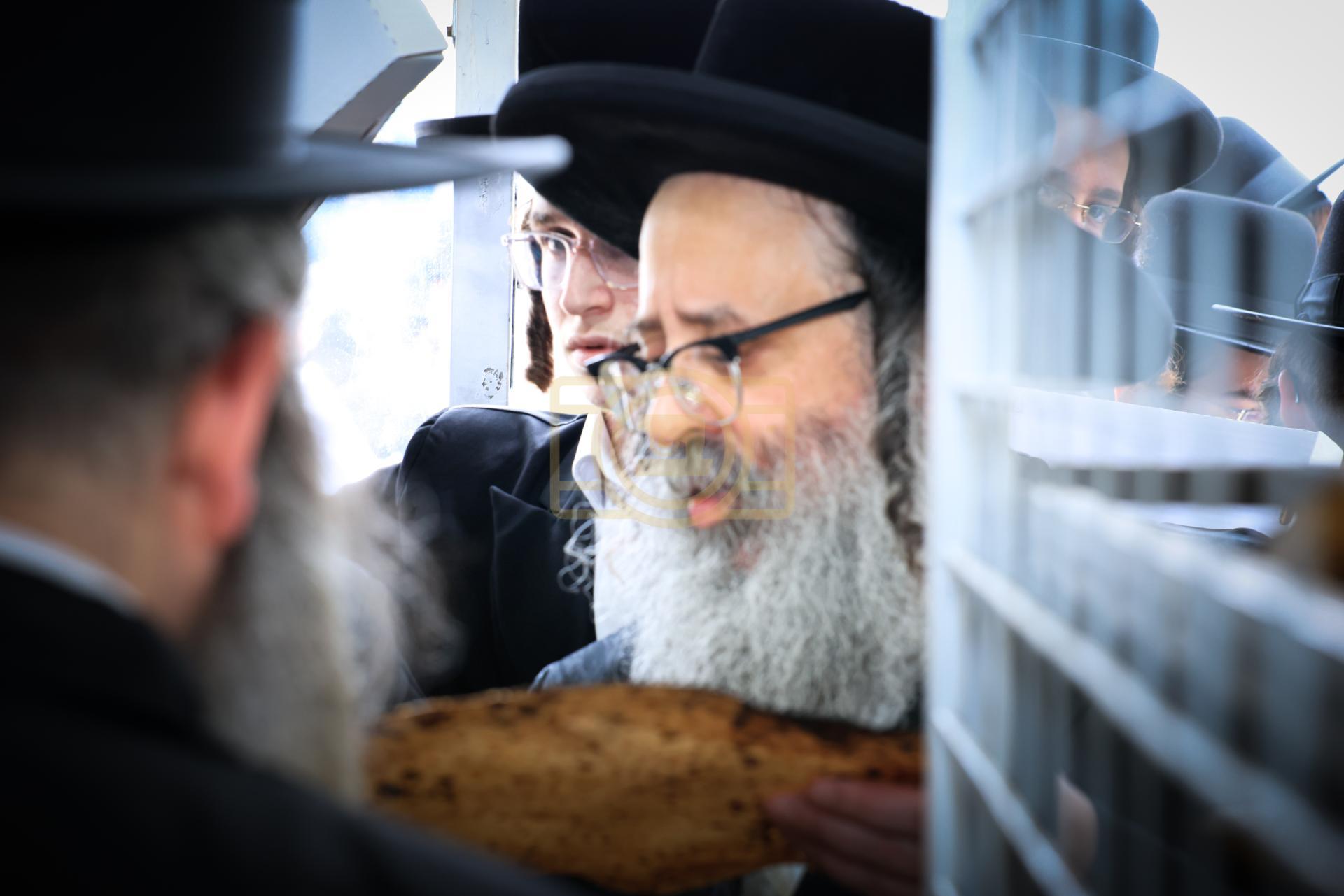מעמד אפיית מצות בראשות הגה"צ ראש ישיבת סאטמאר בני ברק שליט"א אינאיינעם מיט די תלמידי הישיבה גדולה