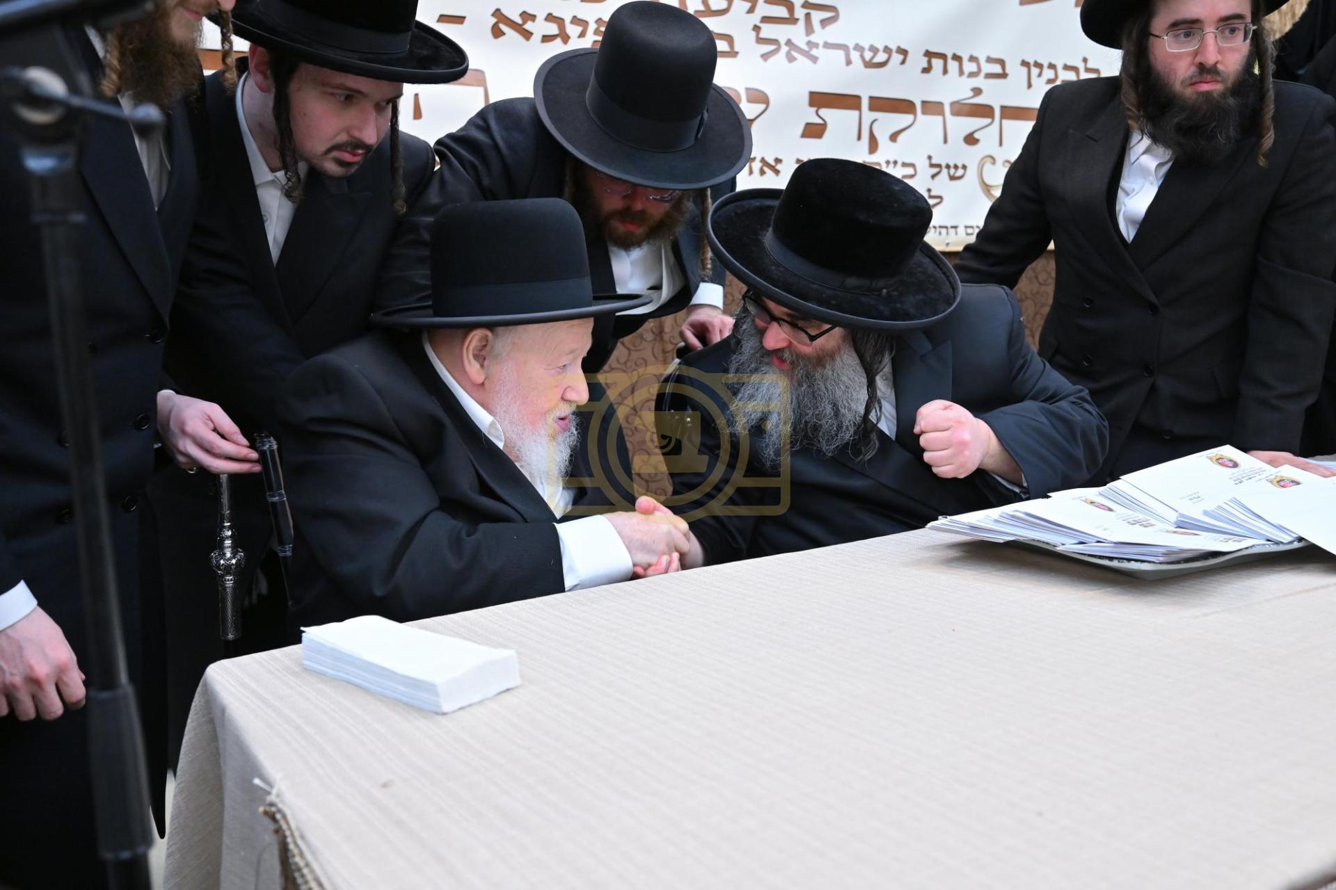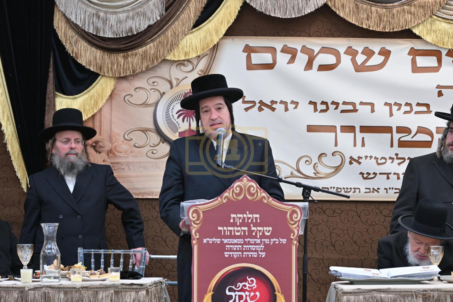 מעמד חלוקת שקל הטהור און קביעות מזוזה פאר נייעם בנין בית חינוך לבנות פון סאטמאר אין ירושלים
