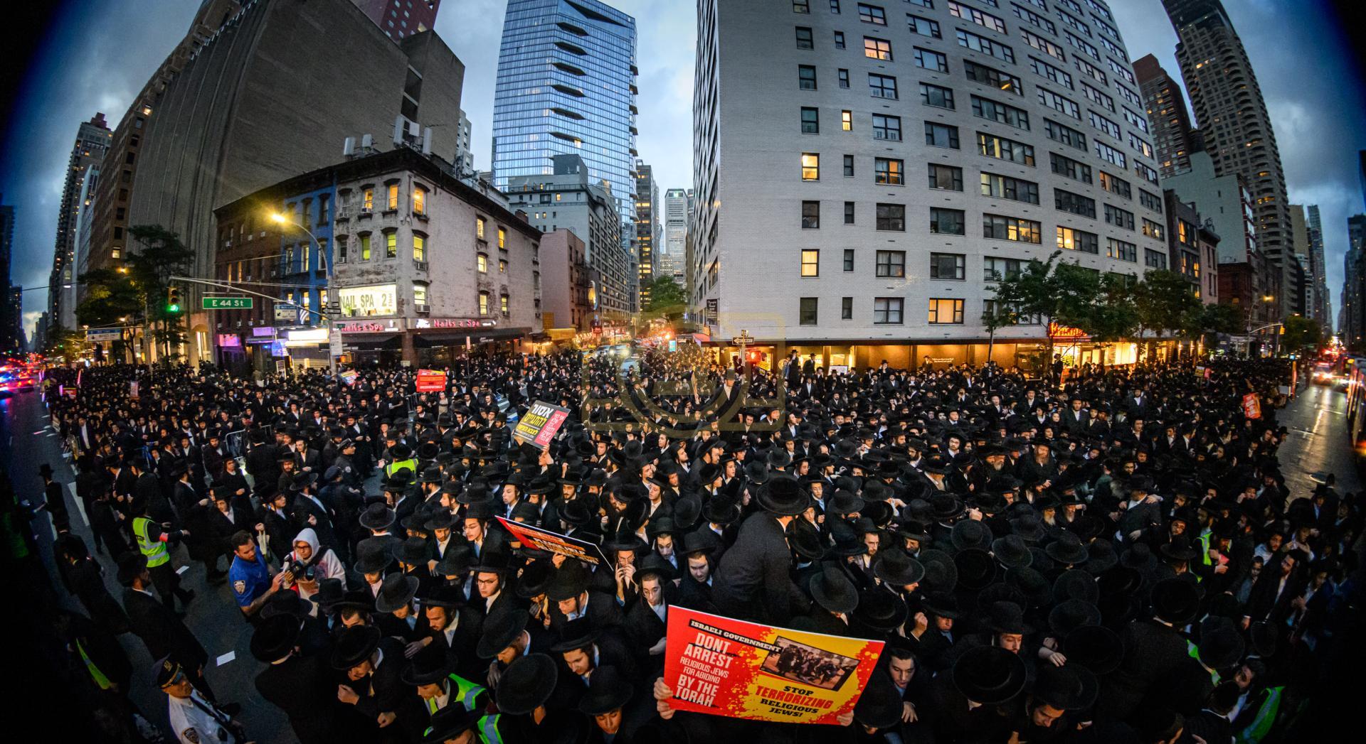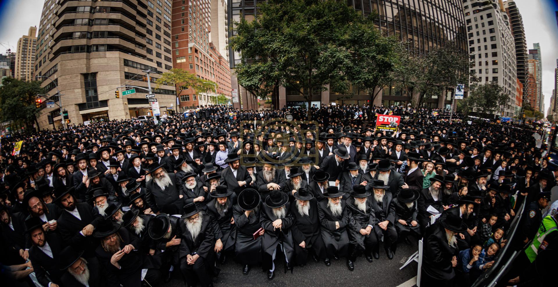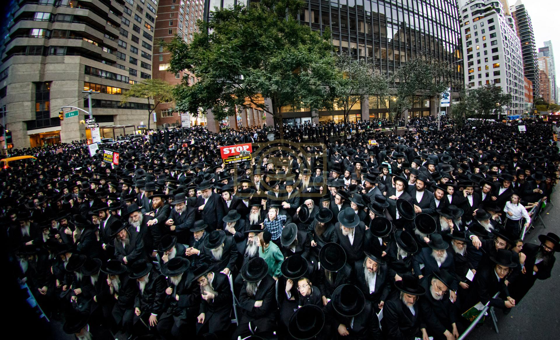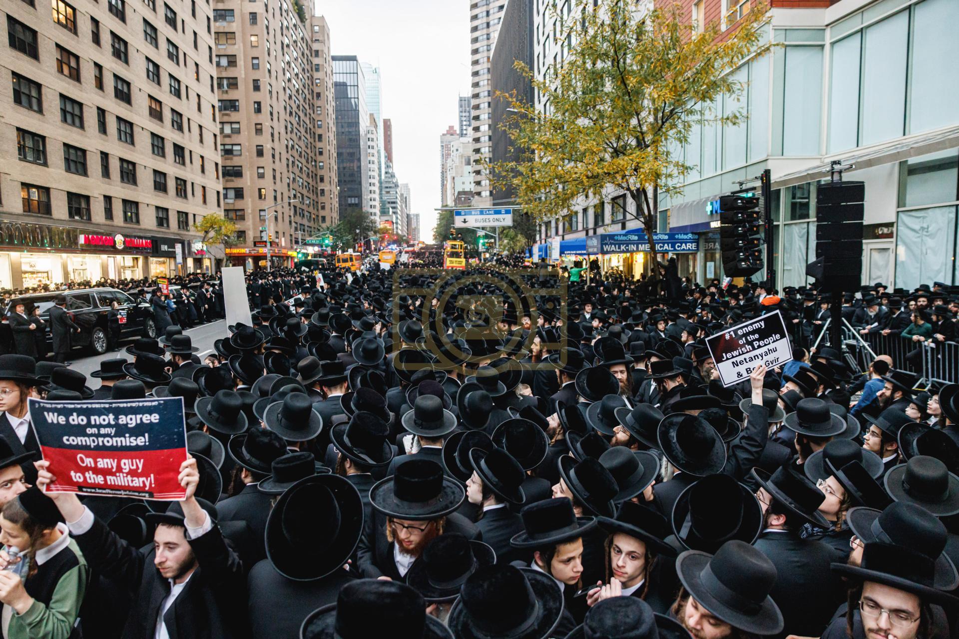 פולע גאלעריע פונעם גרויסארטיגן פראטעסט אין מאנהעטן קעגן די גזירת הגיוס