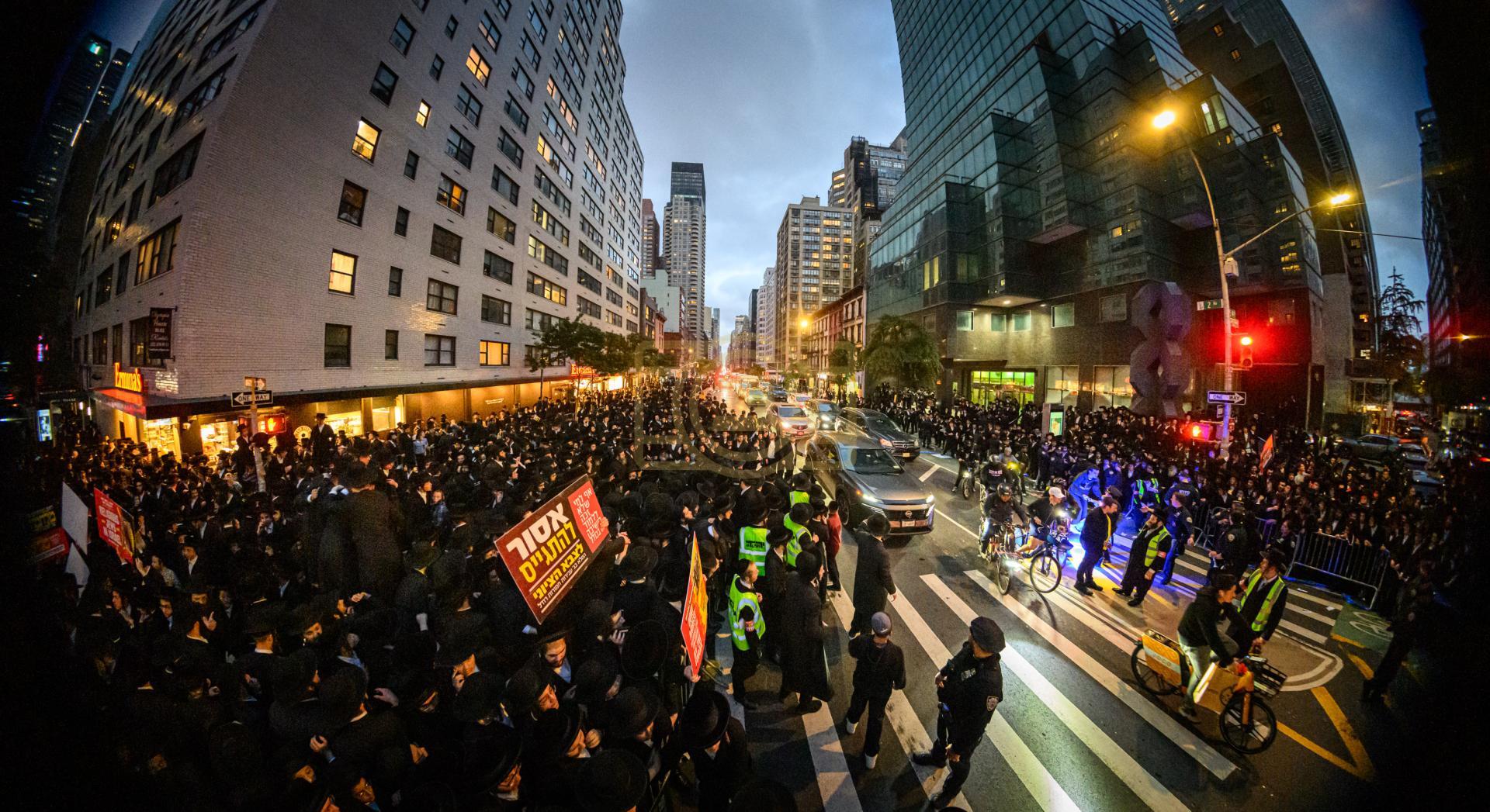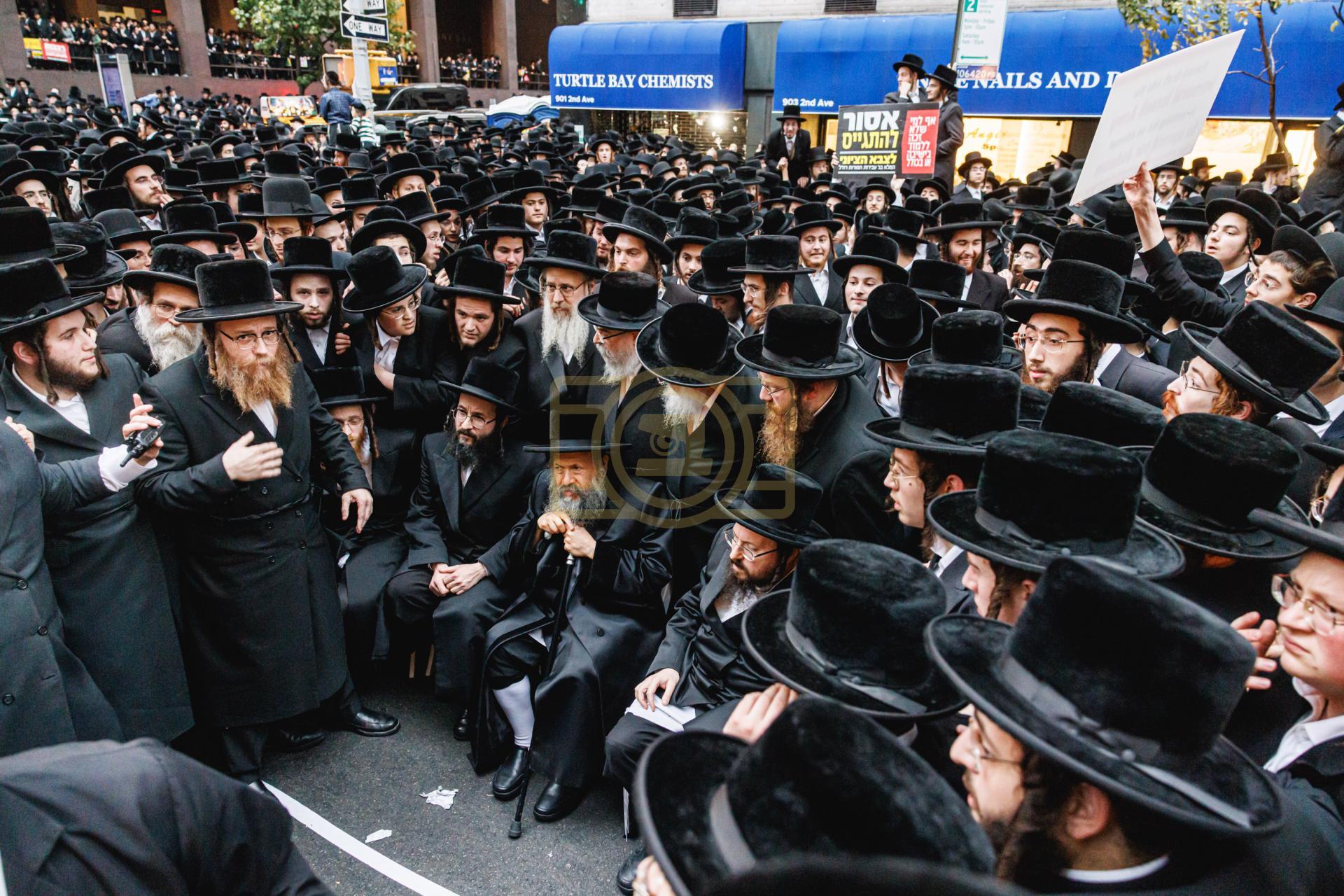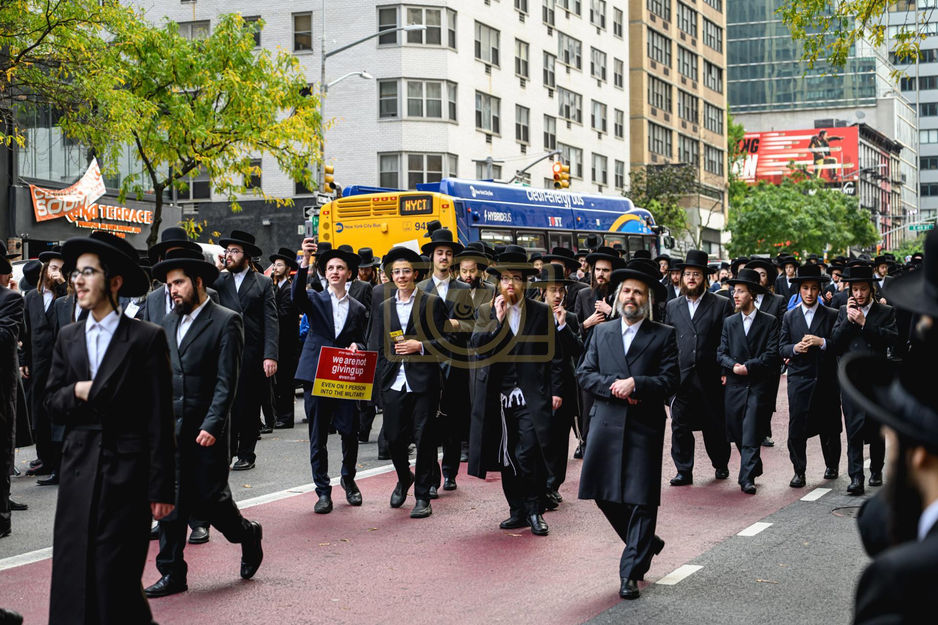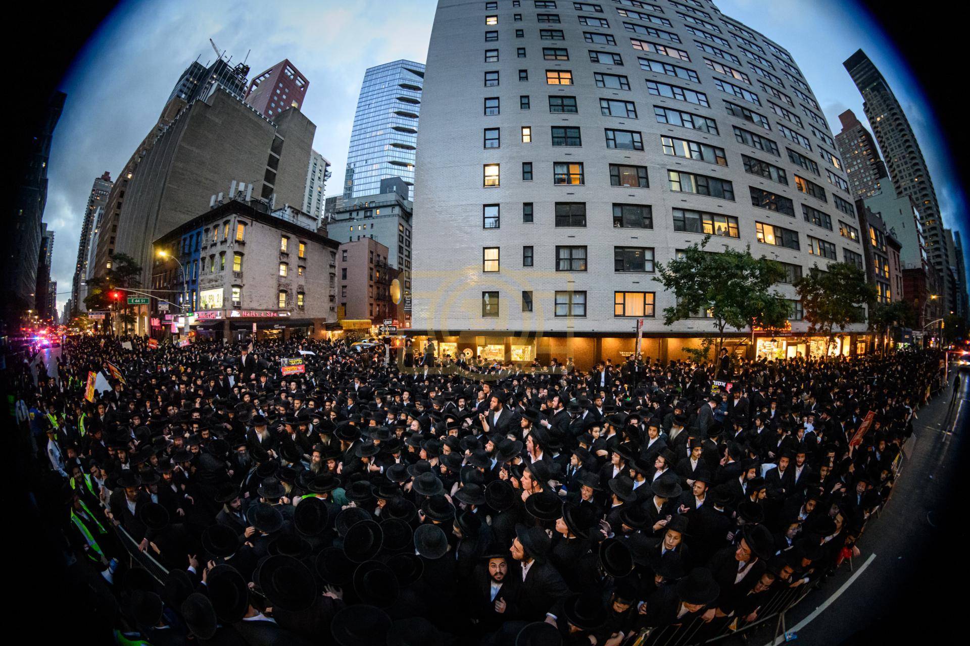 פולע גאלעריע פונעם גרויסארטיגן פראטעסט אין מאנהעטן קעגן די גזירת הגיוס