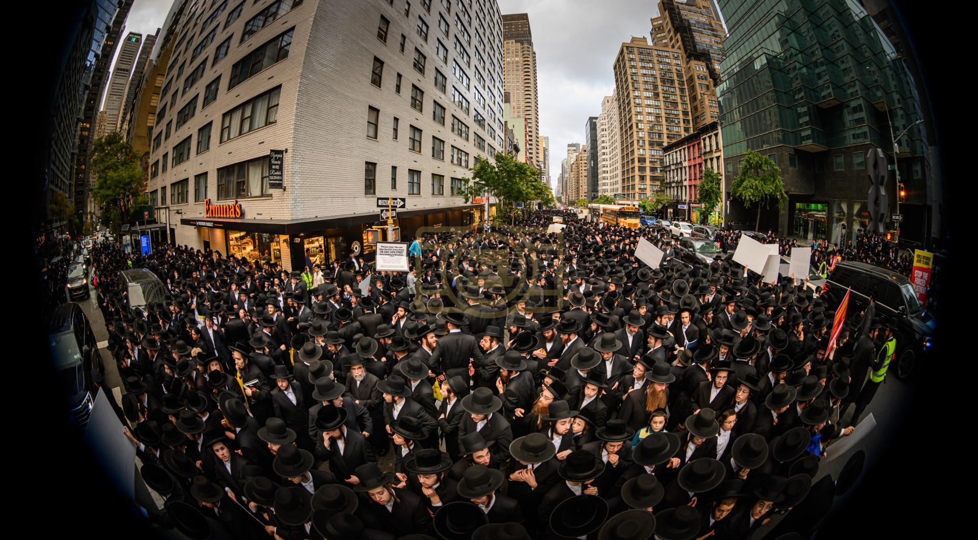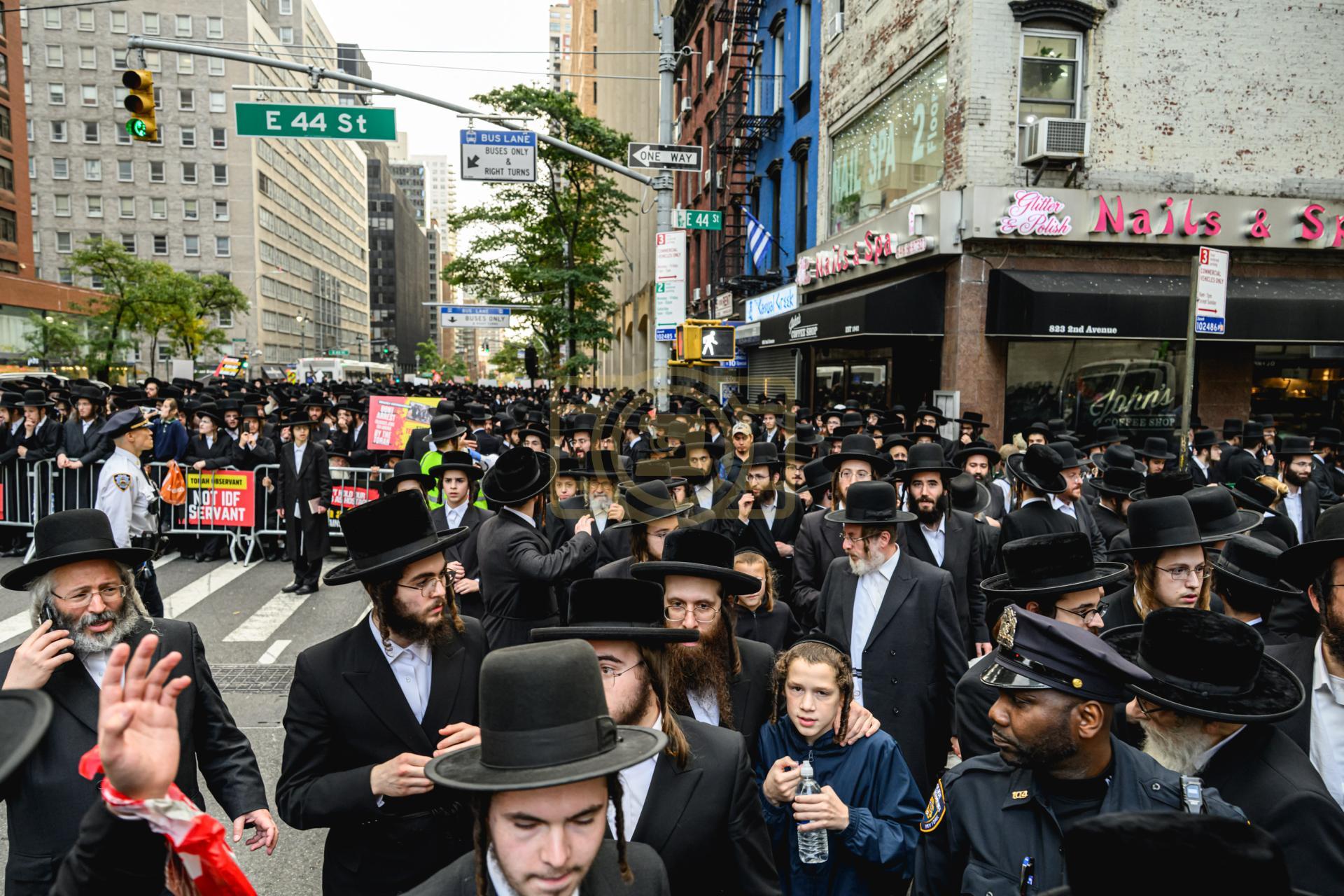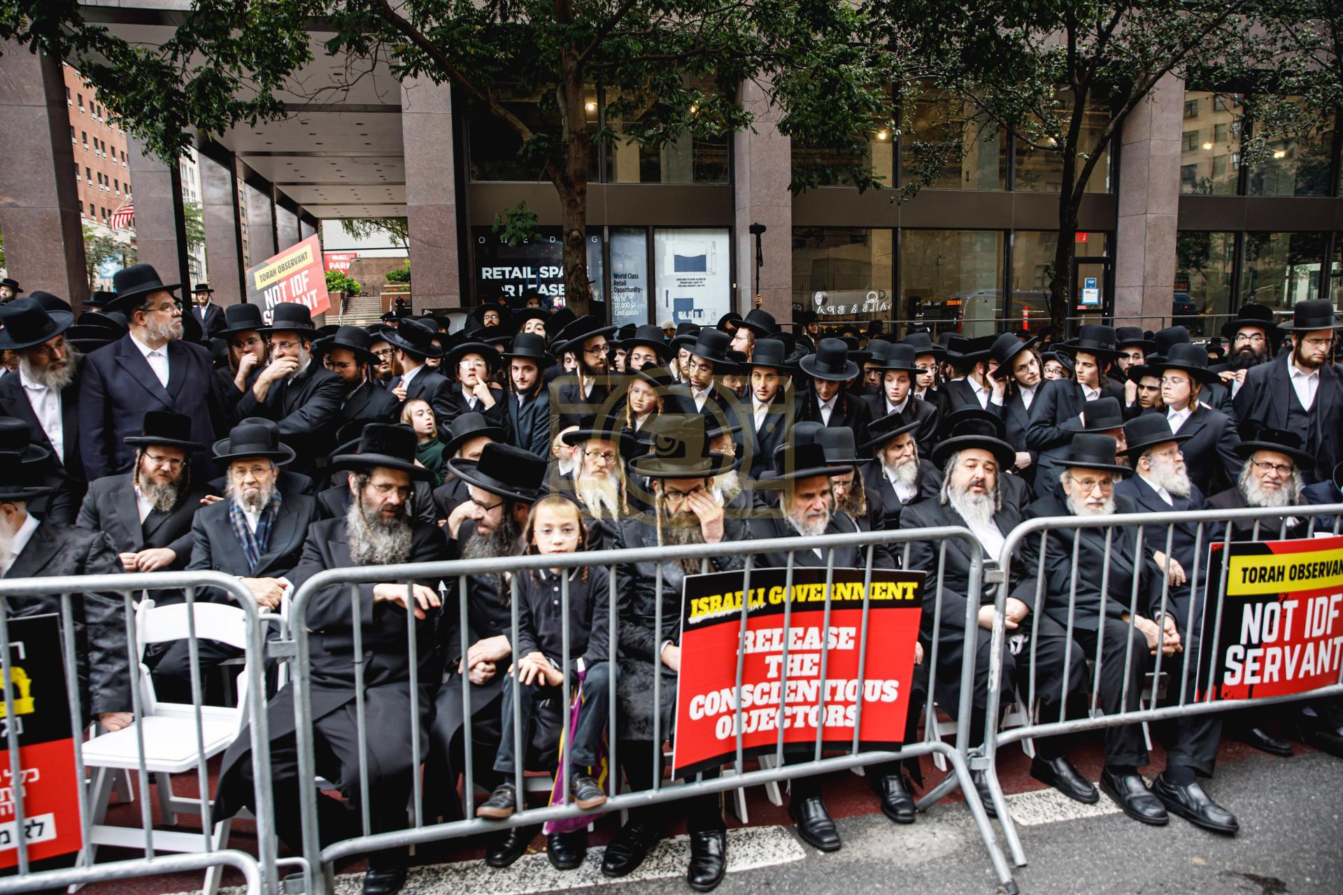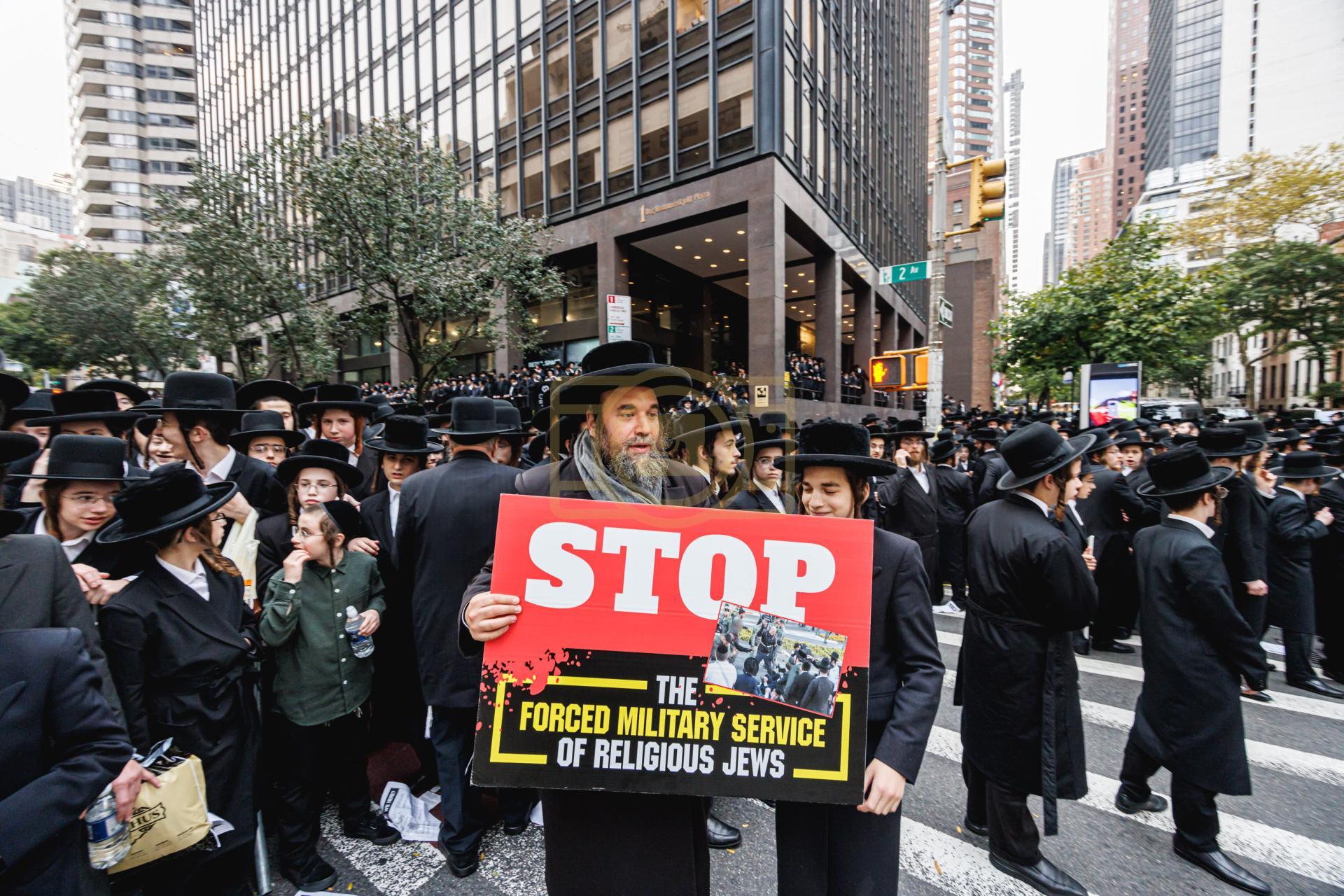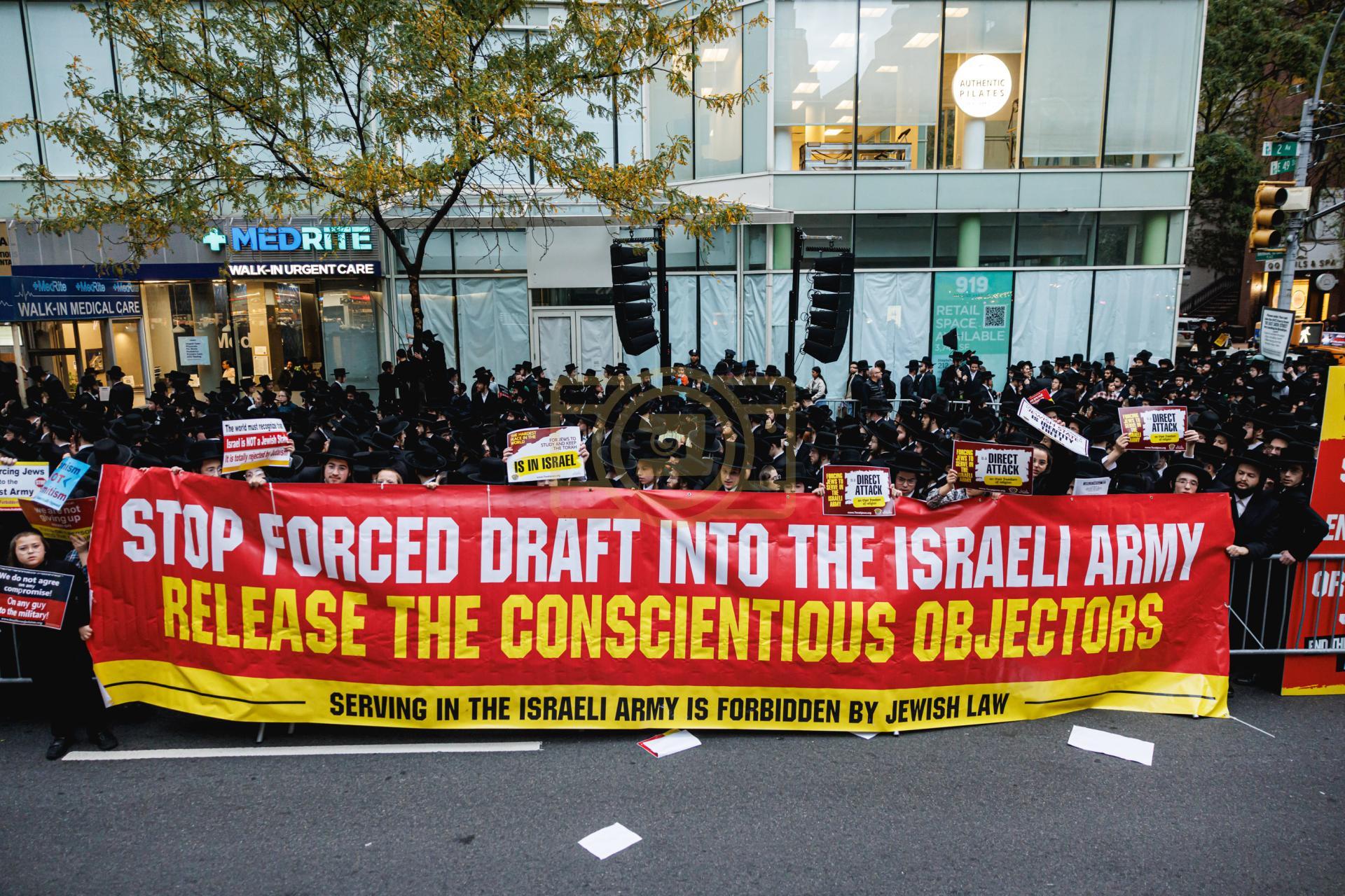 פולע גאלעריע פונעם גרויסארטיגן פראטעסט אין מאנהעטן קעגן די גזירת הגיוס