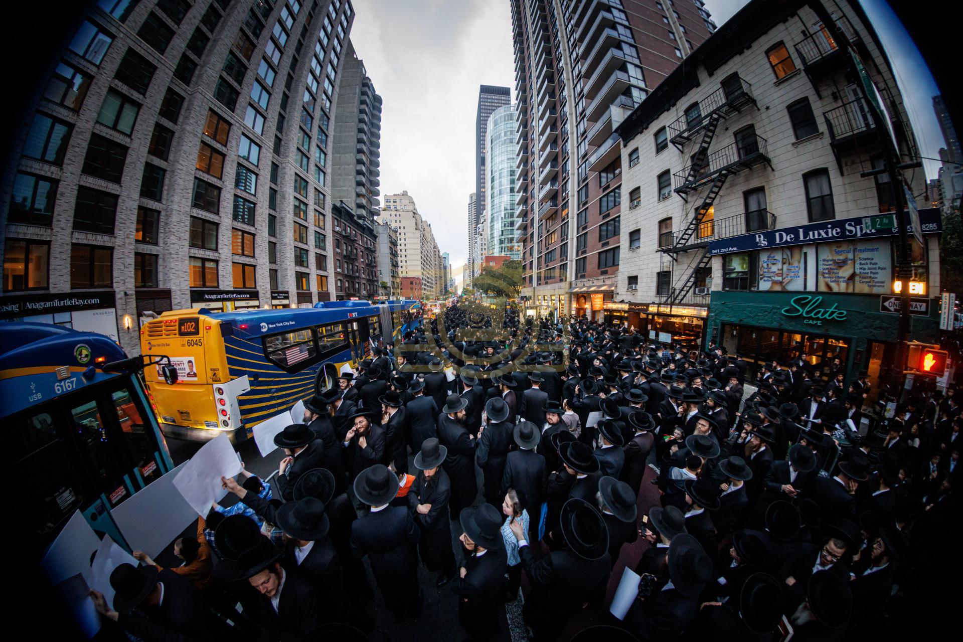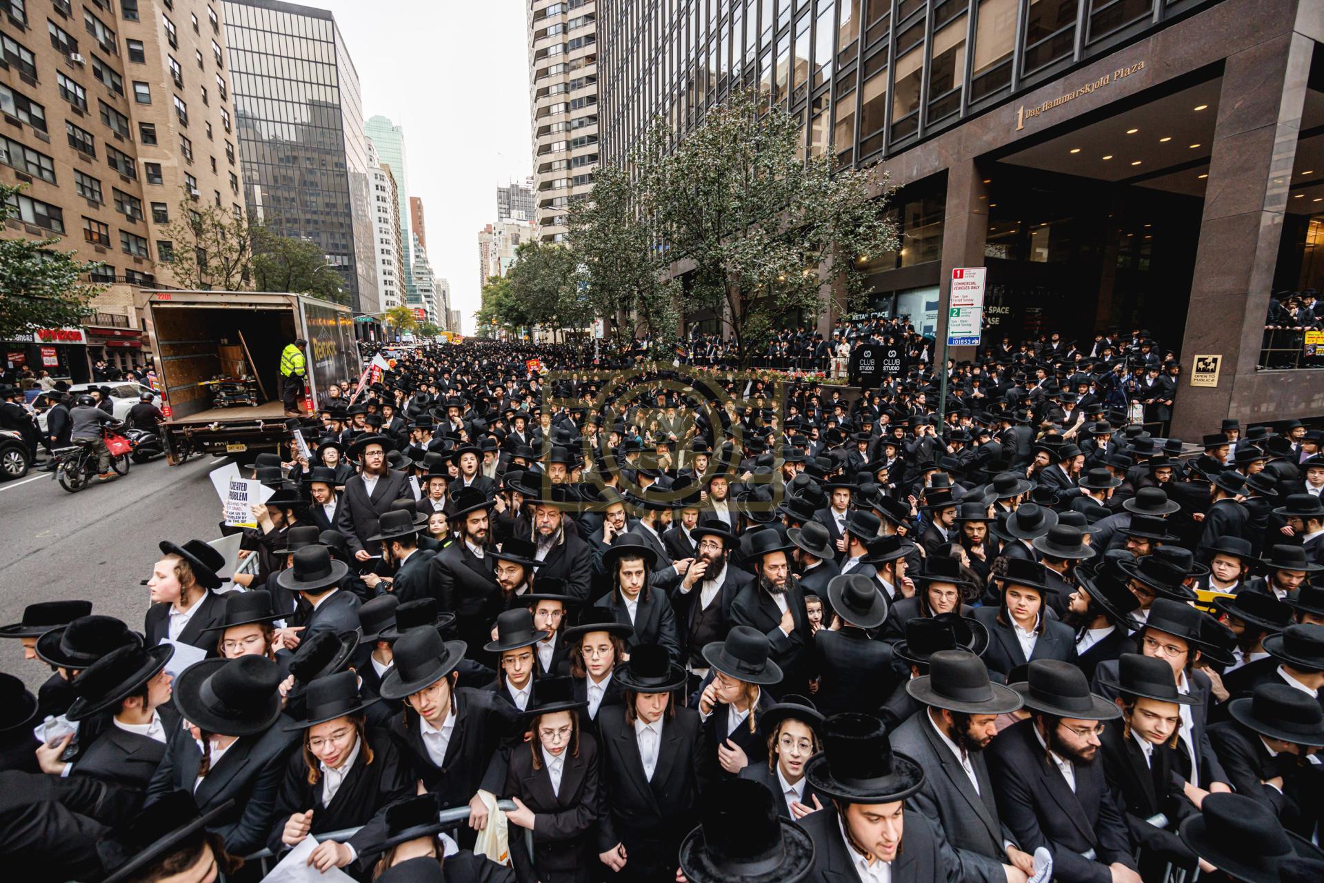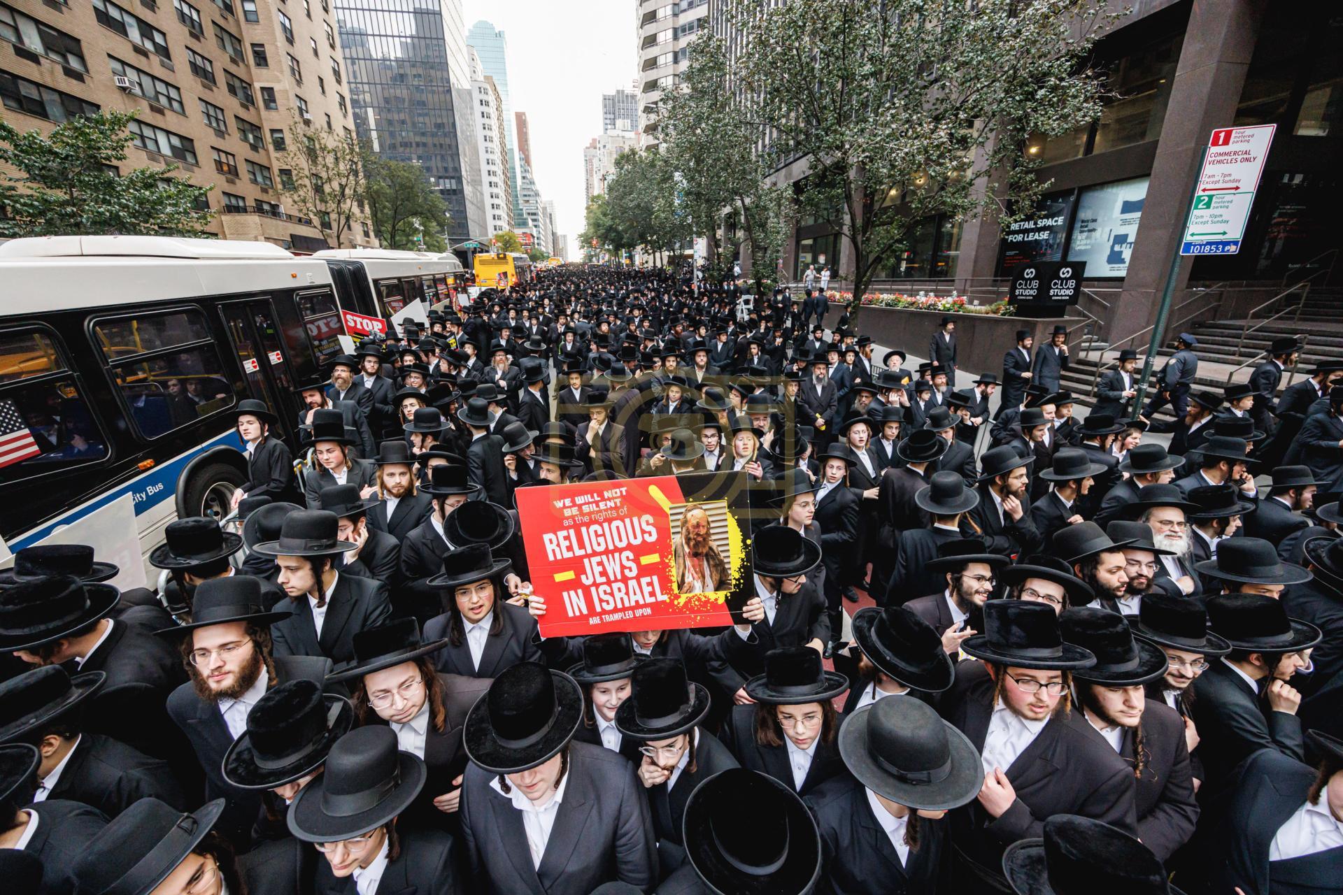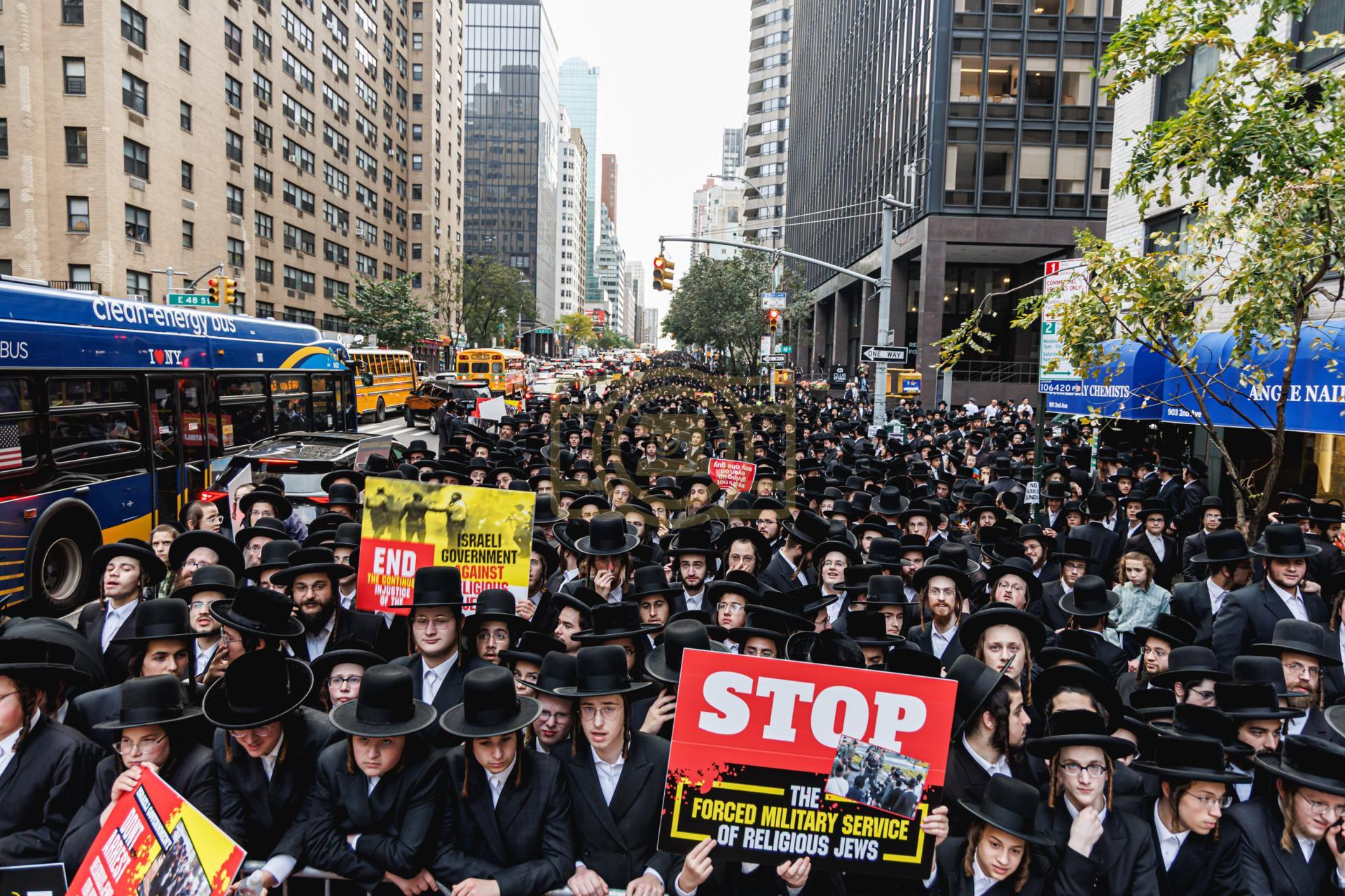 פולע גאלעריע פונעם גרויסארטיגן פראטעסט אין מאנהעטן קעגן די גזירת הגיוס