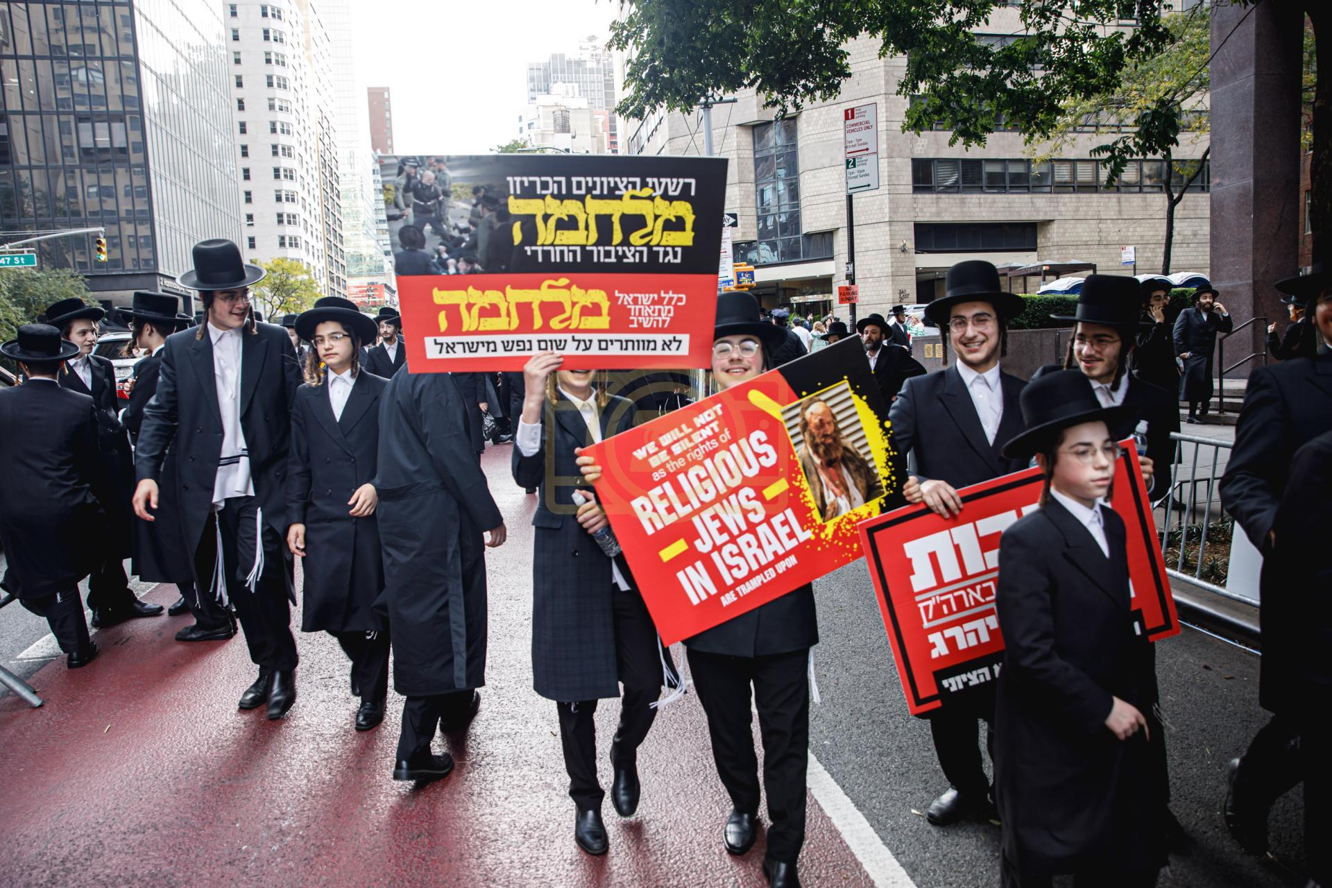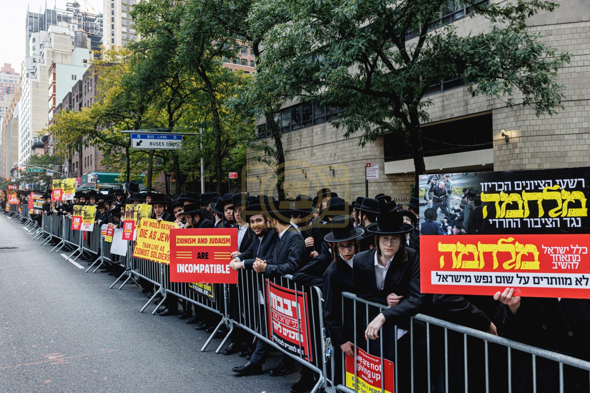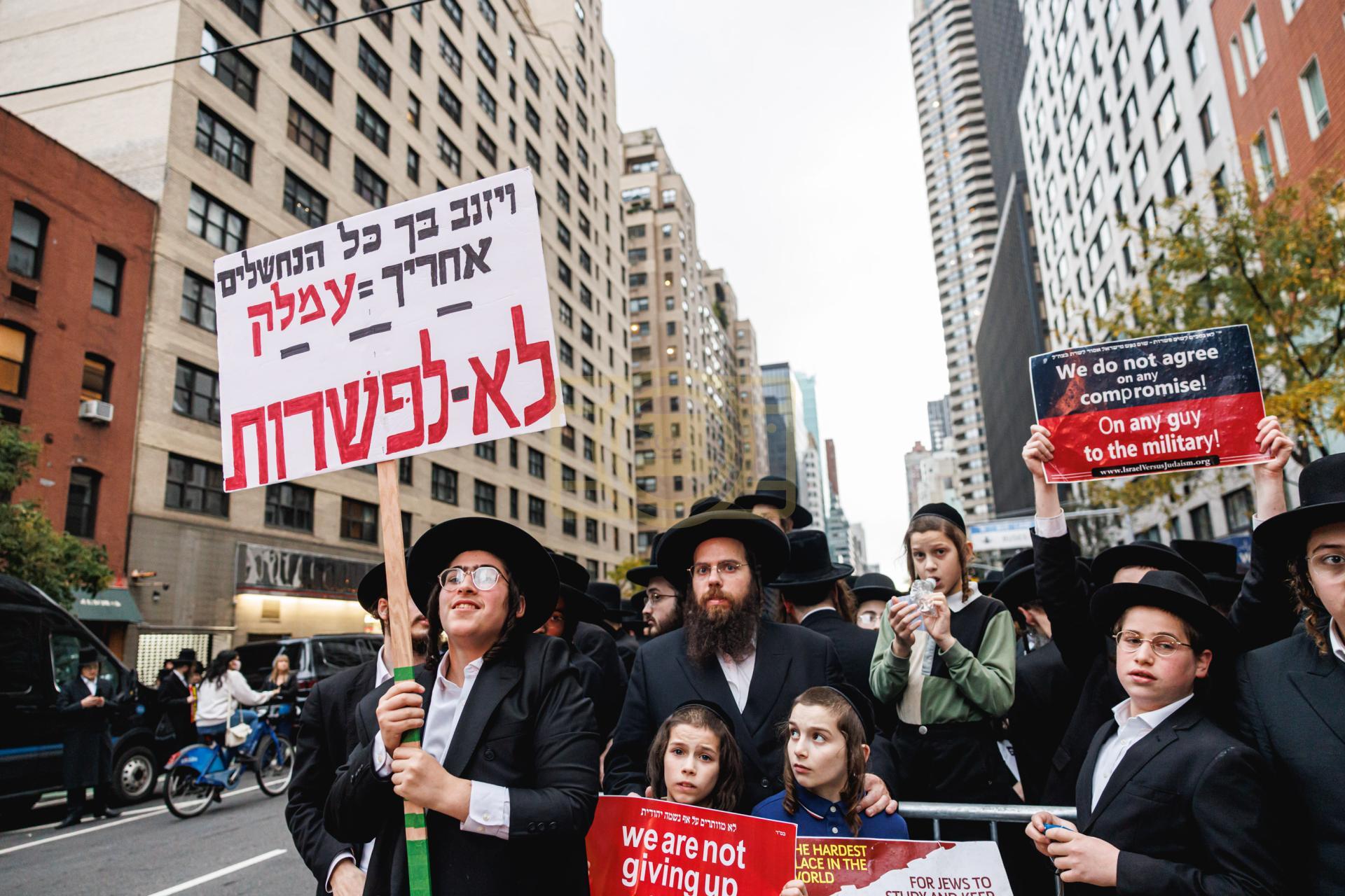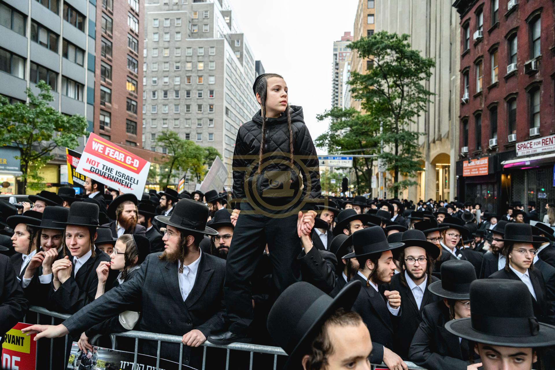 פולע גאלעריע פונעם גרויסארטיגן פראטעסט אין מאנהעטן קעגן די גזירת הגיוס