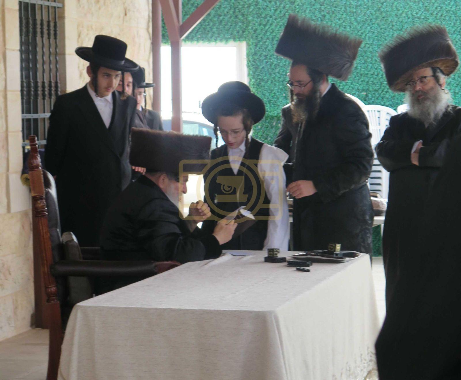 מעמד הנחת תפילין ושמחת החאלאקא ומסיבות לחיים פאר נכדי הגה"צ ראש ישיבת סאטמאר בני ברק שליט"א ביים עלטער זיידן כ"ק אדמו"ר מוויזניץ שליט"א אין מושב אורה