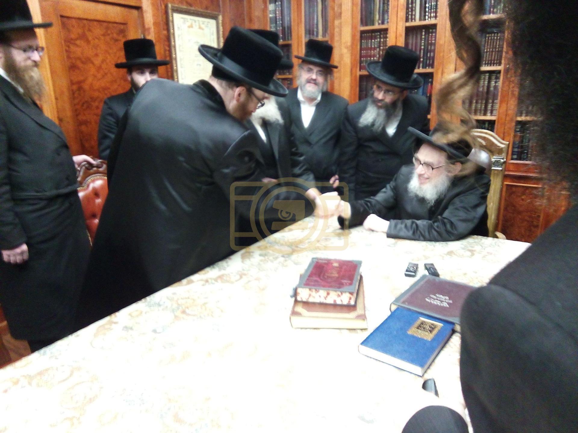הרה"צ יצחק טווערסקי שליט"א בן האדמו"ר מסקווירא באזוכט ביי האדמו"ר מפאפא לקראת נישואי בתו