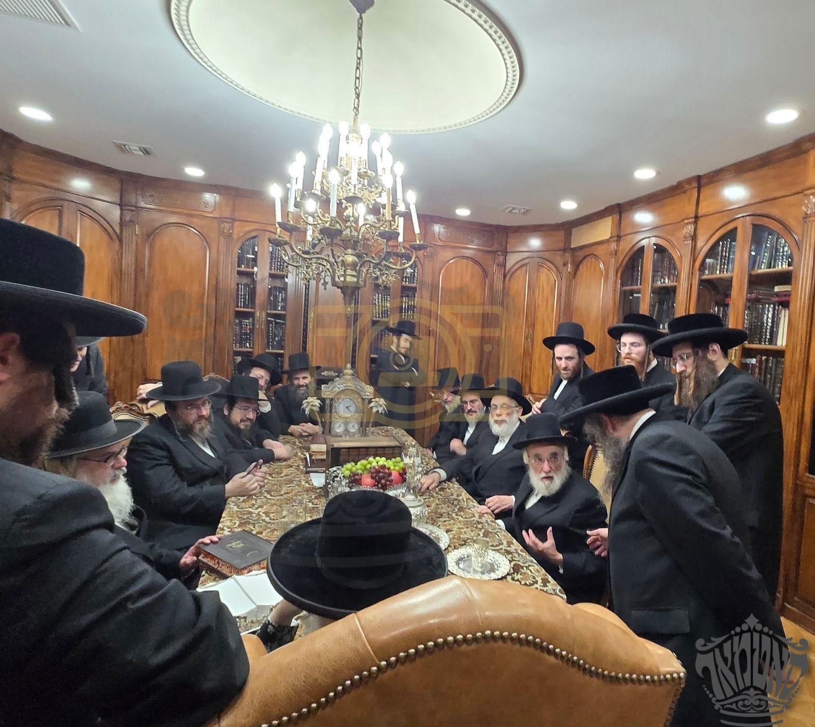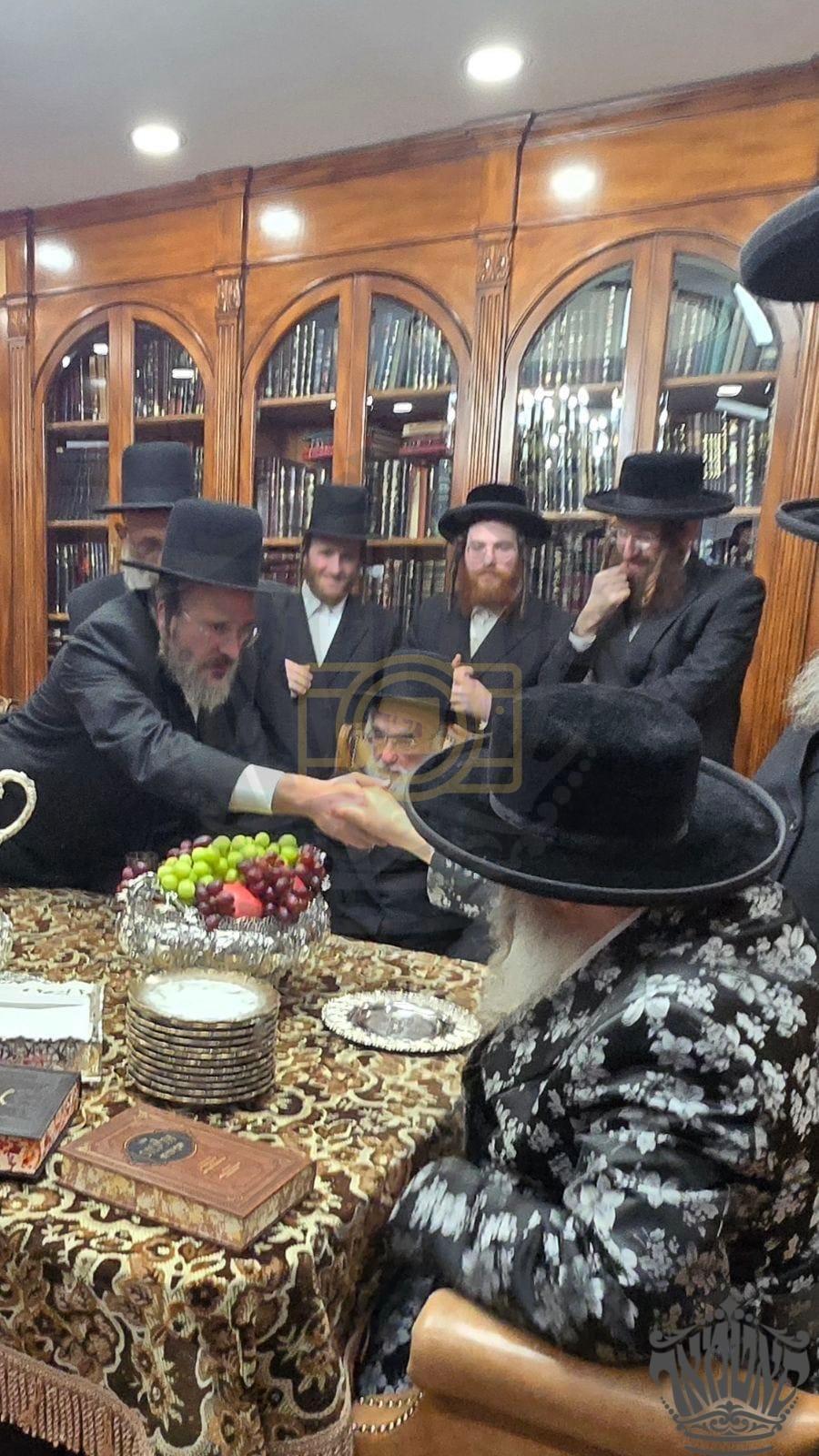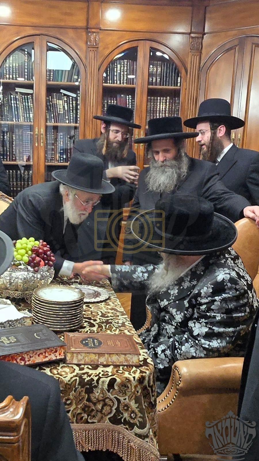 מסיבת לחיים בביתו נאוה קודש כ"ק אדמו"ר מסאטמאר שליט"א, אינאיינעם מיט הטפסר הנגיד רבי אליעזר קעסטנבוים שליט"א פטרון חבורת זכרו הלכה - הליכות יוסף עזרא, לכבוד דאס ארויסגעבן דעם אכטן באנד פונעם ספר הליכות יוסף עזרא, מיט העכער טויזנט עמודים מיט ביאורים אוי