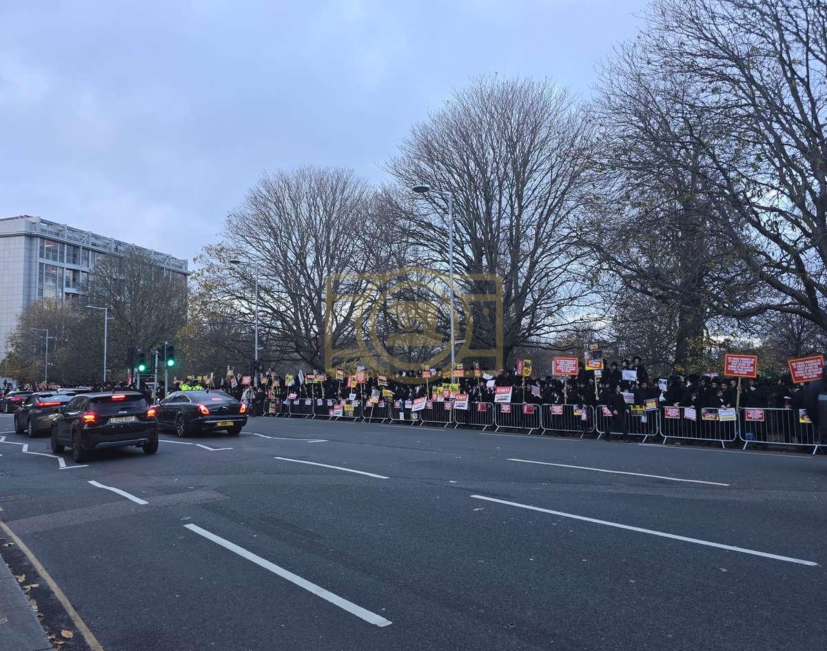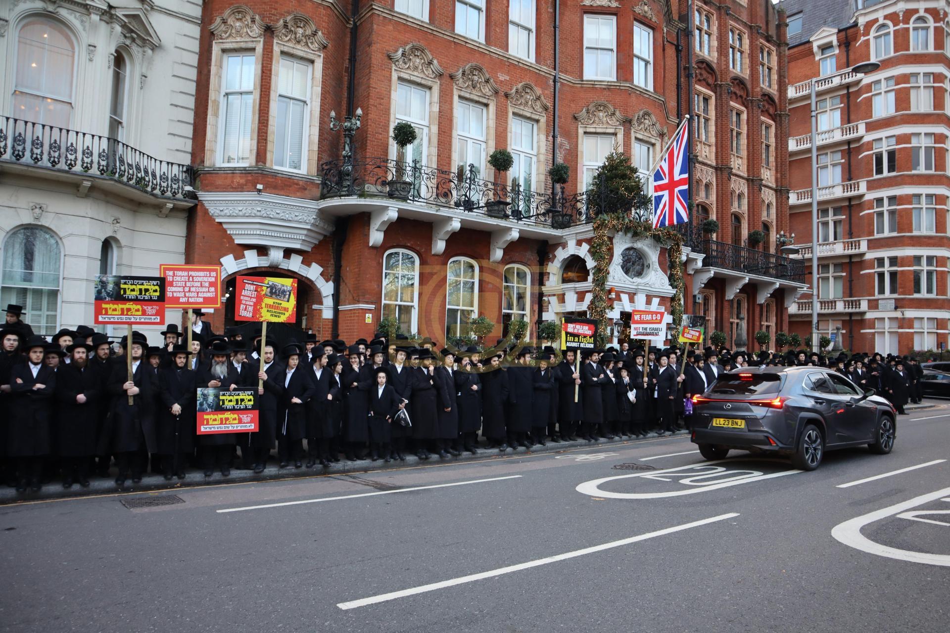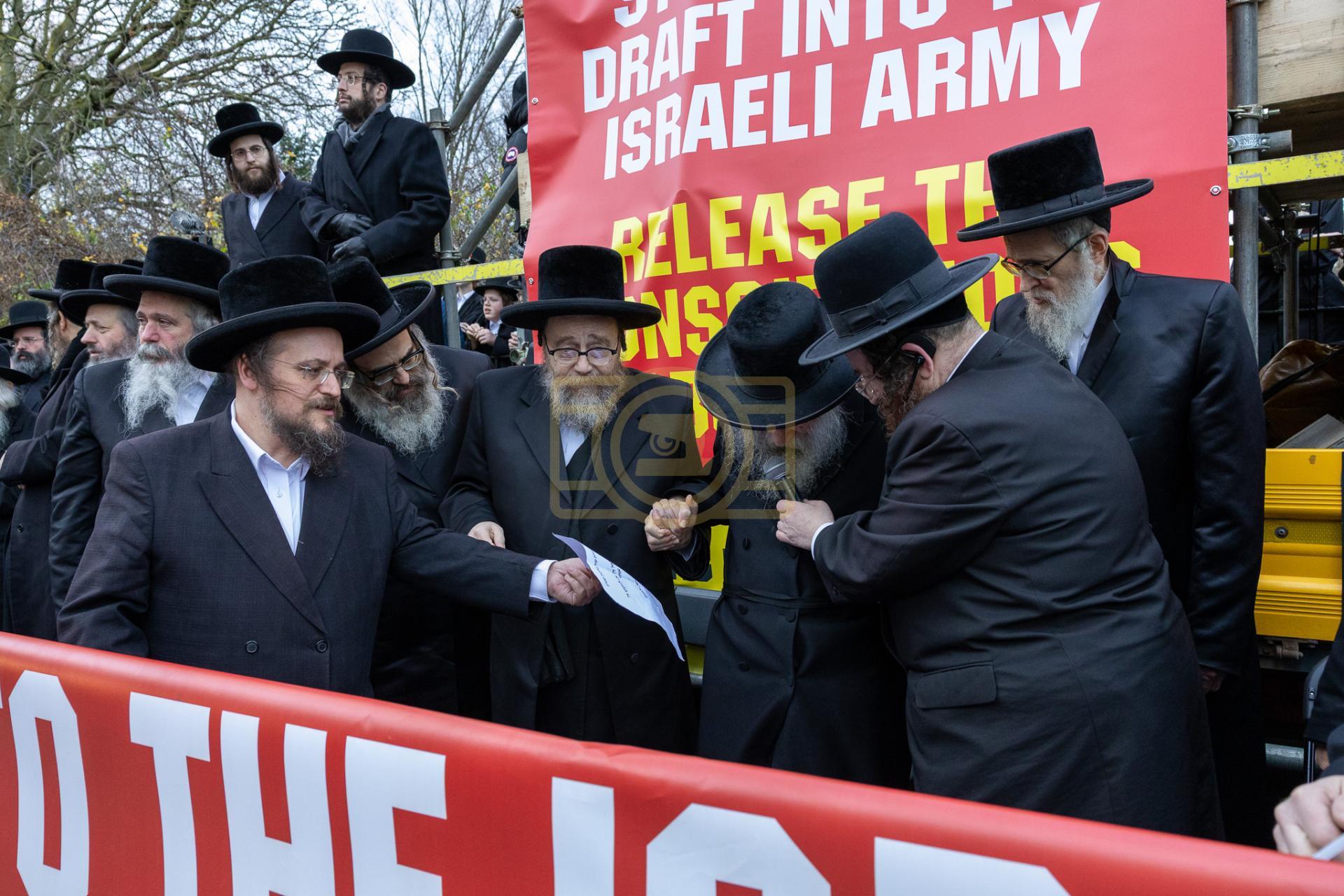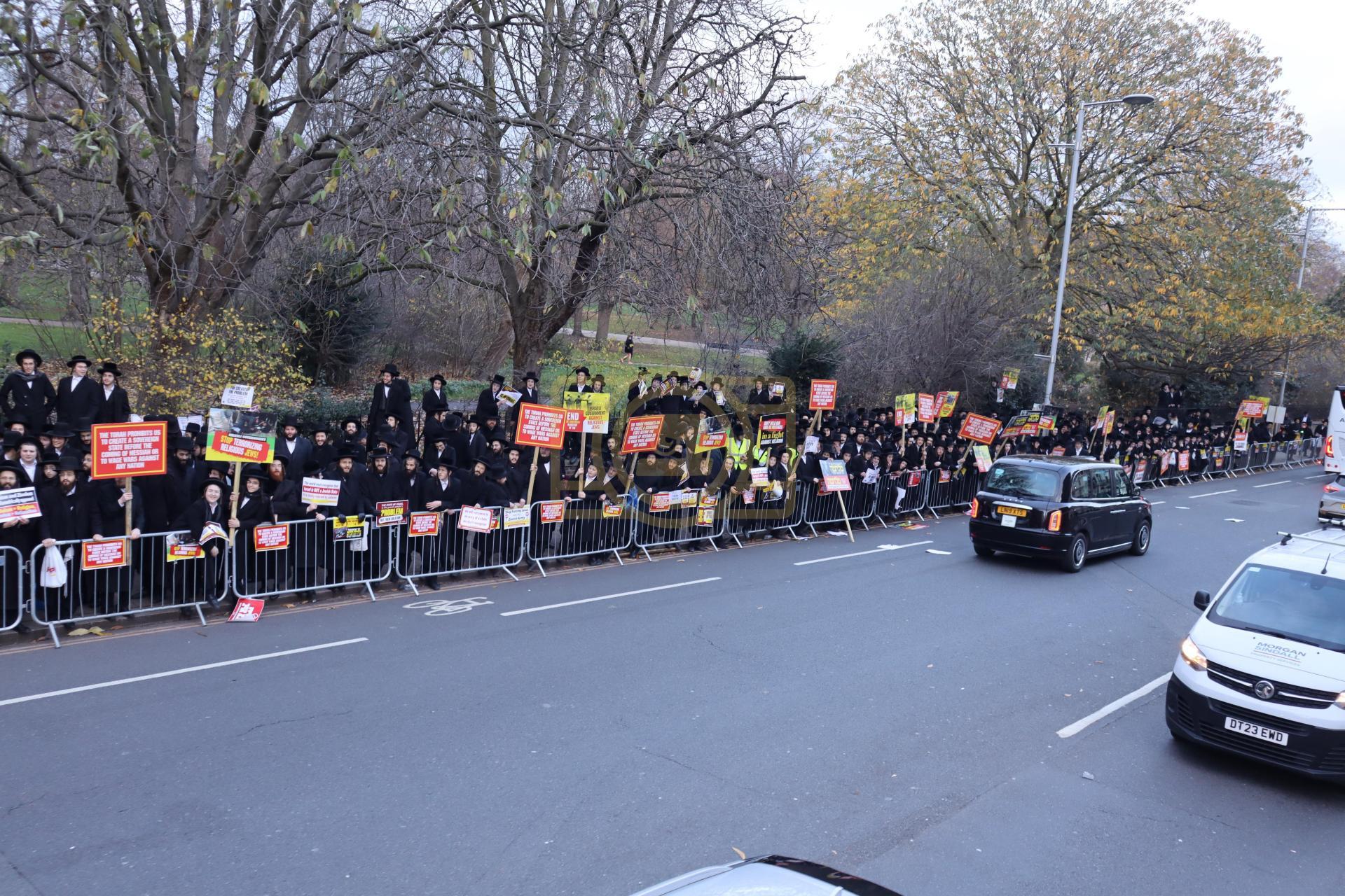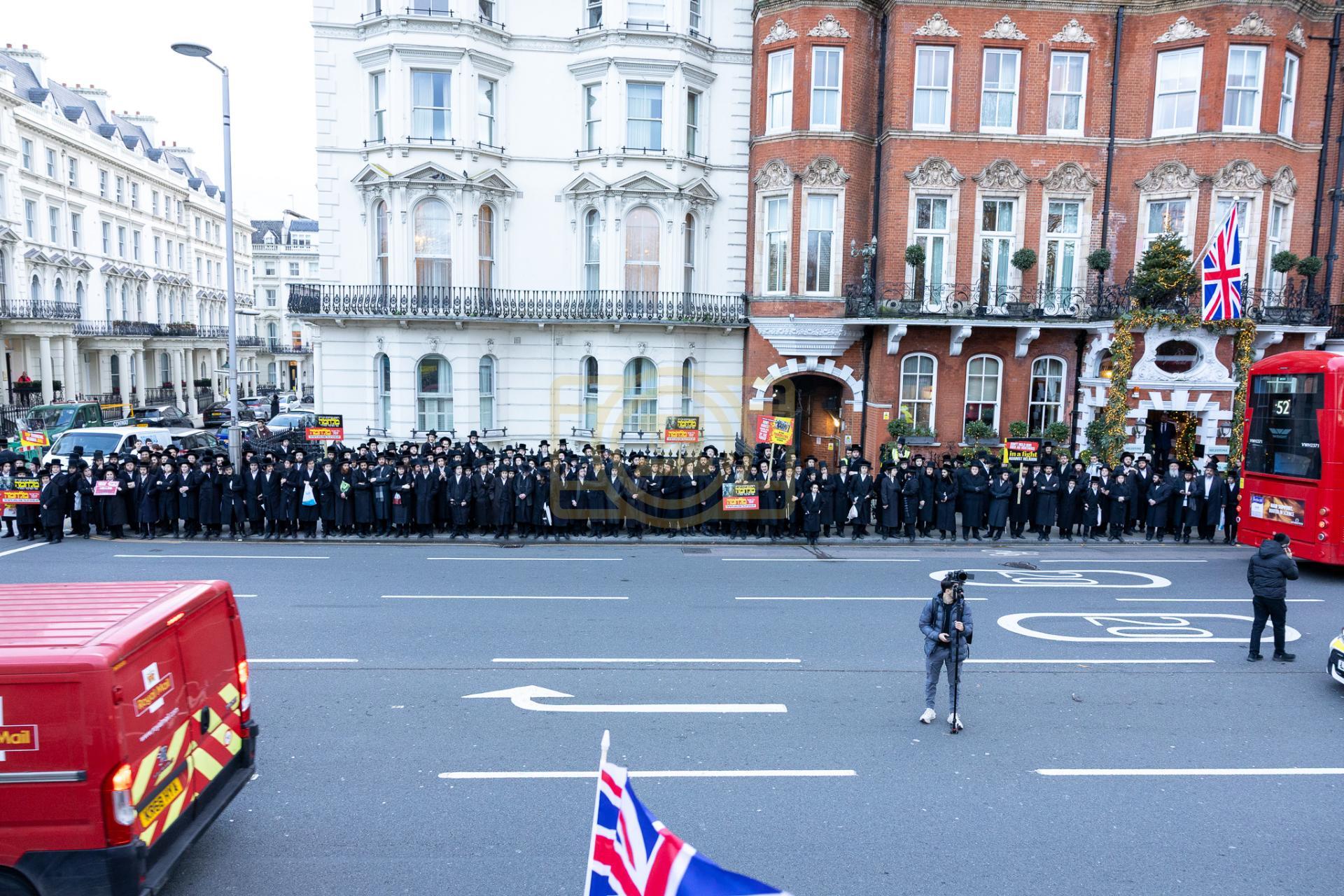 די גרויסע עצרת מחאה וזעקה איז אראנדזשירט געווארן על פי קריאת הקודש פון די שרי התורה חברי הביד"ץ העדה החרדית שבירושלים עיה"ק, אין צוזאמענארבעט מיט די הנהלת התאחדות קהילות החרדים אין לאנדאן, וואס נעמט אריין אלע קהילות הקודש פון די חסידישע קרייזן אין לאנדאן ענגלאנד אין א געמיינזאמע רוף פון די גדולי רבני העיר, די רבנים פון כדתיא, רבני קהילות סאטמאר, וויזניץ, סקווירא, באבוב, באבוב 45, פשעווארסק, מאחנובקא בעלזא, טשערנאביל, סלאנים, ביאלא, תולדות אהרן, און נאך פיל.