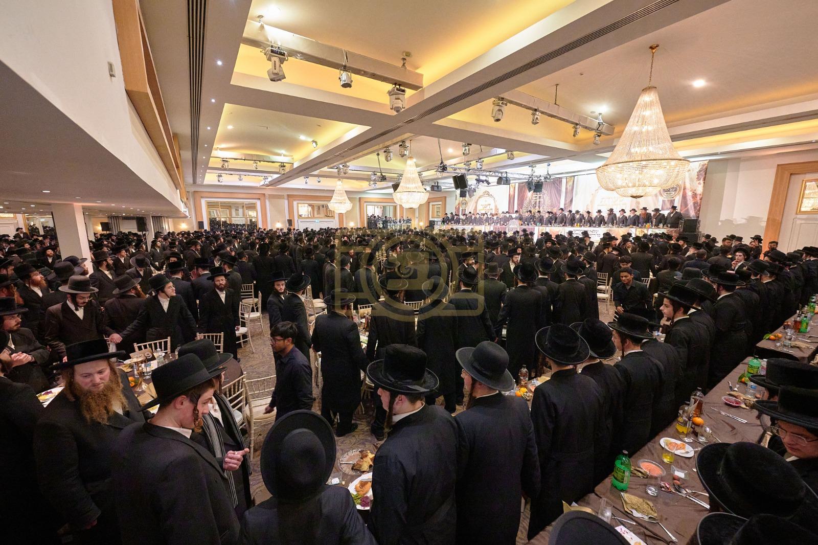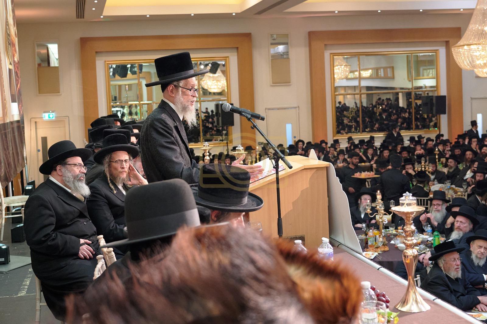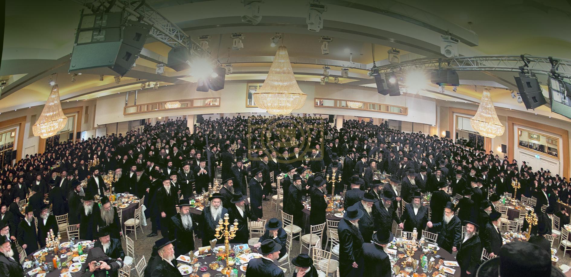 אין די פראכטפולע מערידיען גרענד זאל - בראשות גדולי הרבנים שליט"א ובראשם הגה"צ רבי ברוך נתן הלברשטאם שליט"א אבד"ק סאטמאר לאנדאן און די בארימטע מגיד מישרים, די נואם הכבוד הרה"ג ר' יחזקאל שרגא ווייס שליט"א ר"י דרכי תורה מאנסי