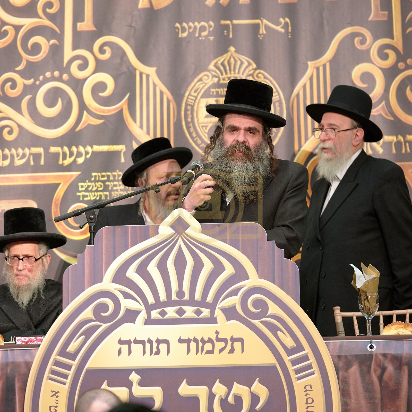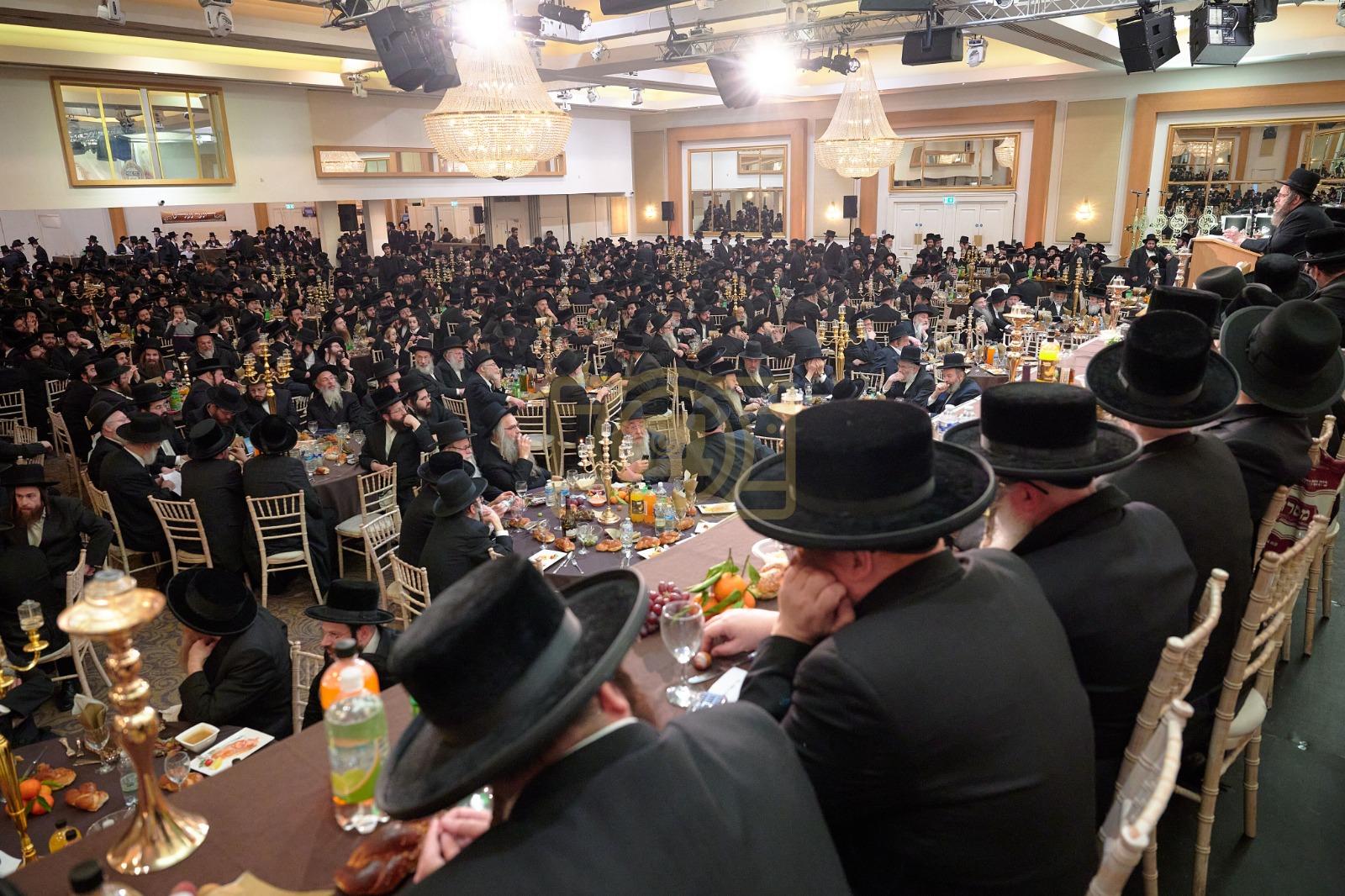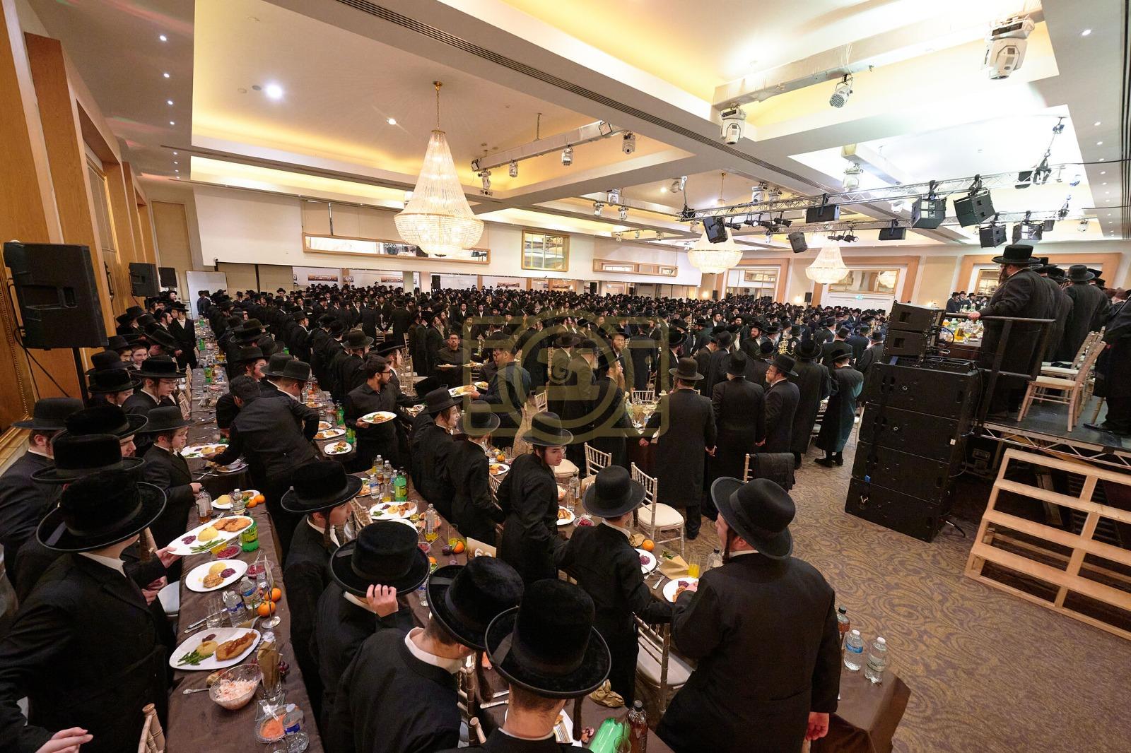 אין די פראכטפולע מערידיען גרענד זאל - בראשות גדולי הרבנים שליט"א ובראשם הגה"צ רבי ברוך נתן הלברשטאם שליט"א אבד"ק סאטמאר לאנדאן און די בארימטע מגיד מישרים, די נואם הכבוד הרה"ג ר' יחזקאל שרגא ווייס שליט"א ר"י דרכי תורה מאנסי