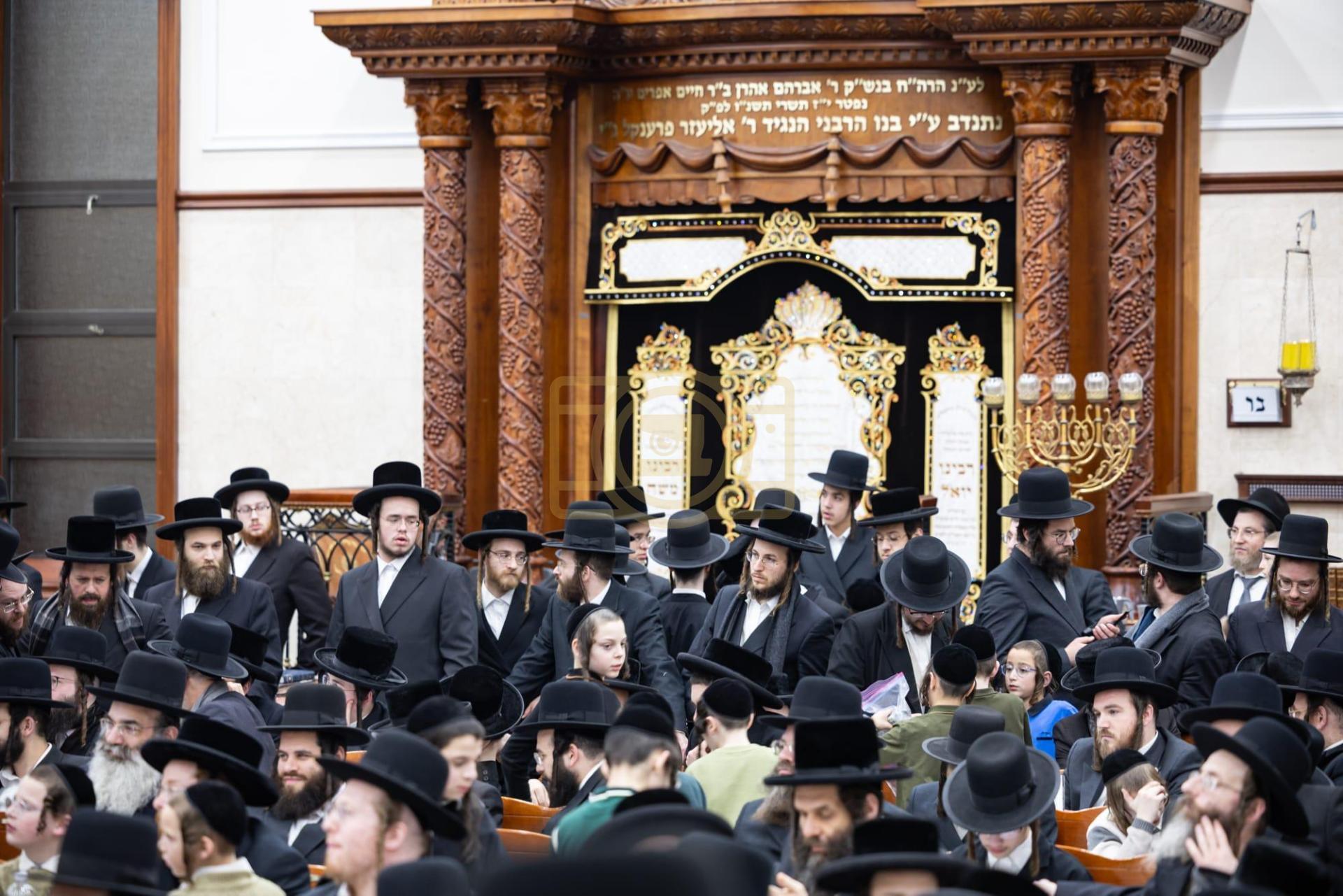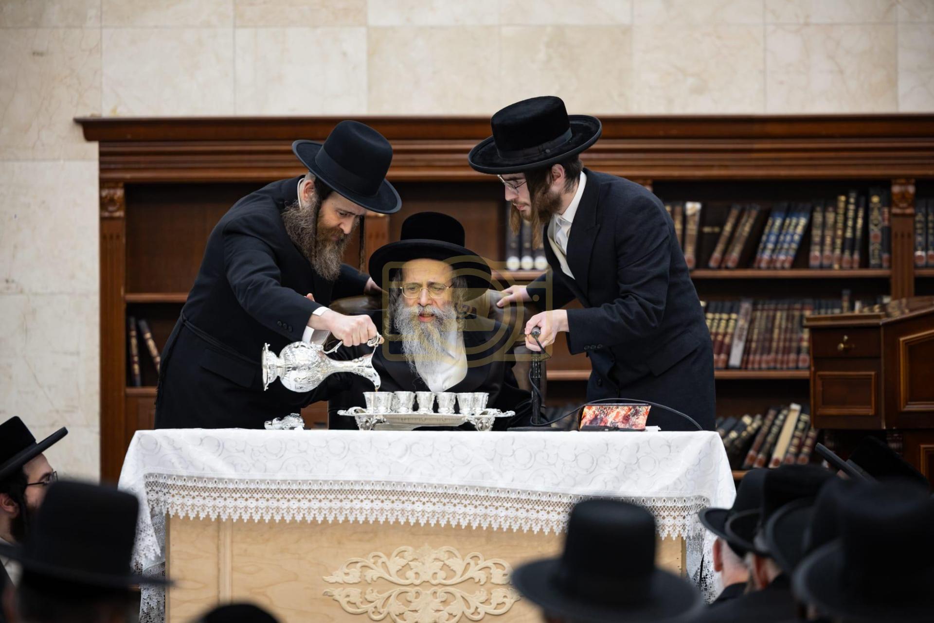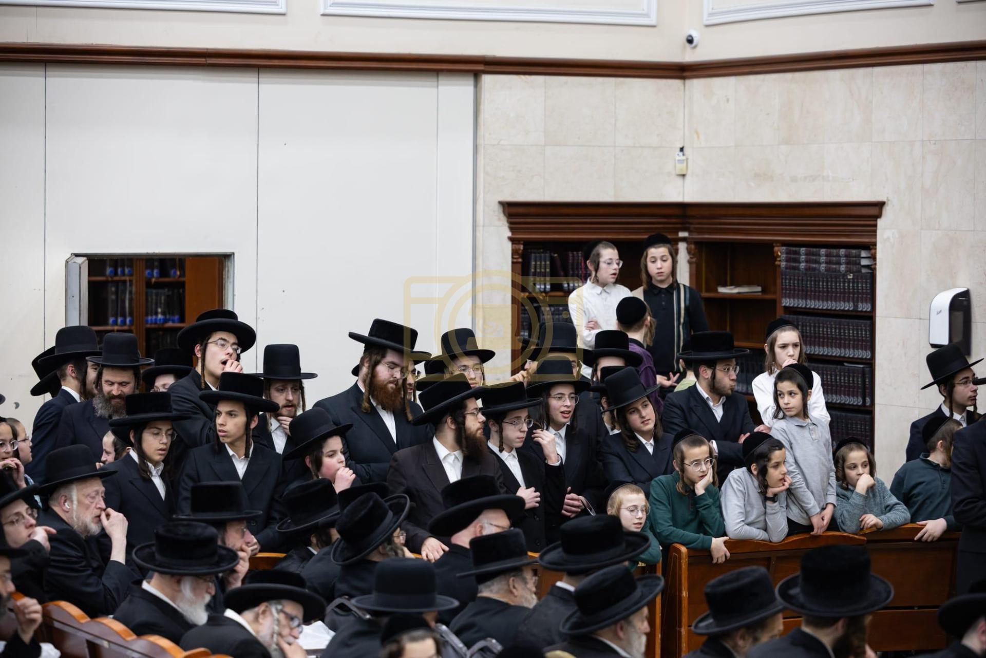 כ"ק מרן גאב"ד סאטמאר שליט"א ביי הדלקת נר חנוכה ליל זאת חנוכה בביהמ"ד הגדול, אינאיינעם מיטן מגבית להחזקת קופת חינוך הטהור אפצייכענען'דיג א יאר זינט דער התייסדות הקופה ע"י כ"ק מרן הגאב"ד שליט"א מייסד ונשיא הקופה.