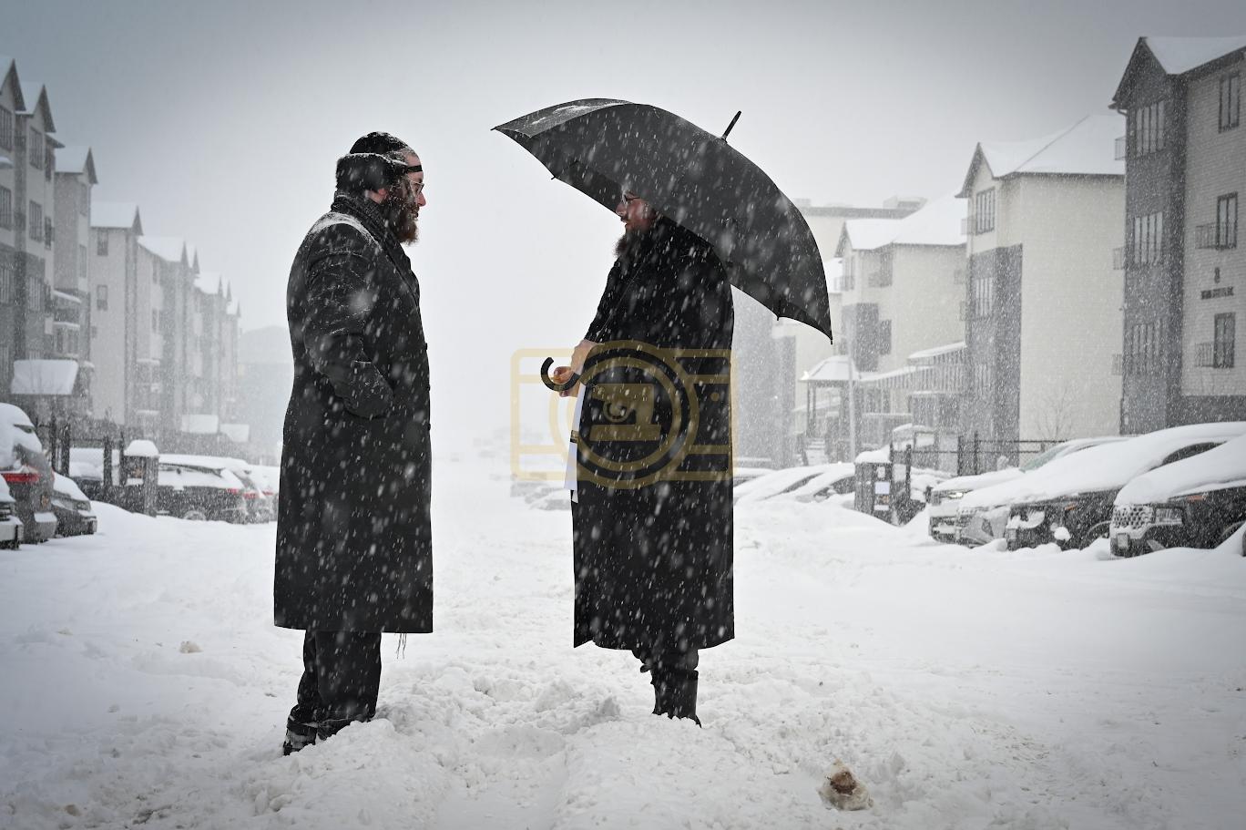 בילדער און ווידיאו: קרית יואל איז איינגעהילט אין שניי