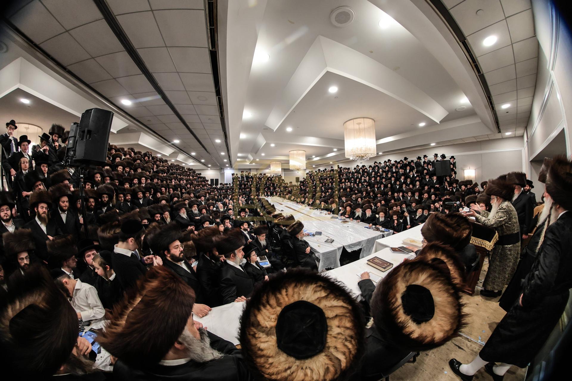 שבת "ותבנהו" קהל חסידי צאנז בראשות כ"ק אדמו"ר מצאנז שליט"א אין אמעריקע