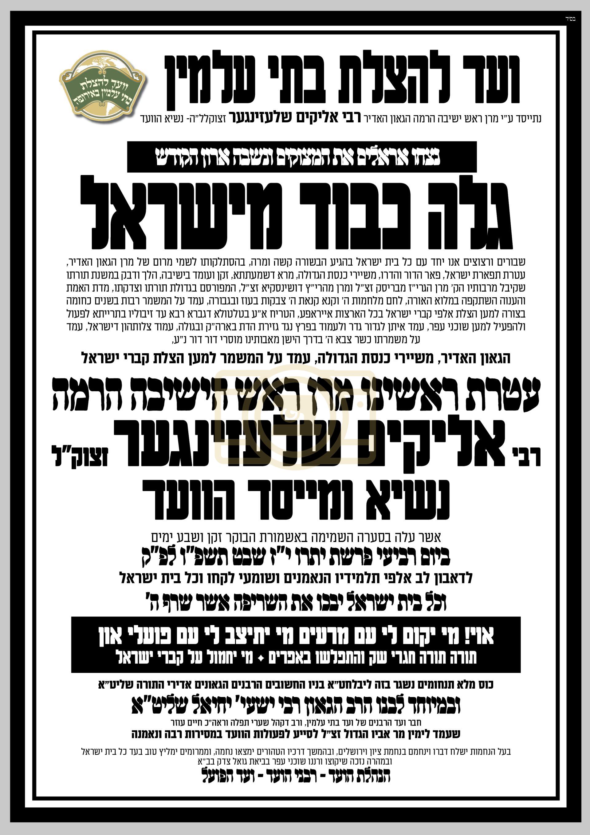 על ידי זקן ראש הישיבות משרדי דור הישן